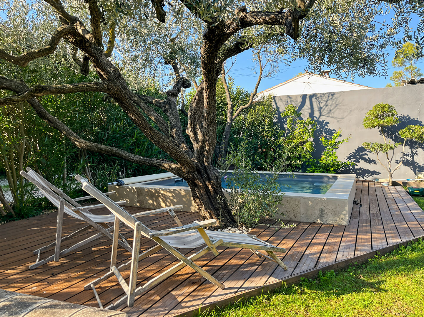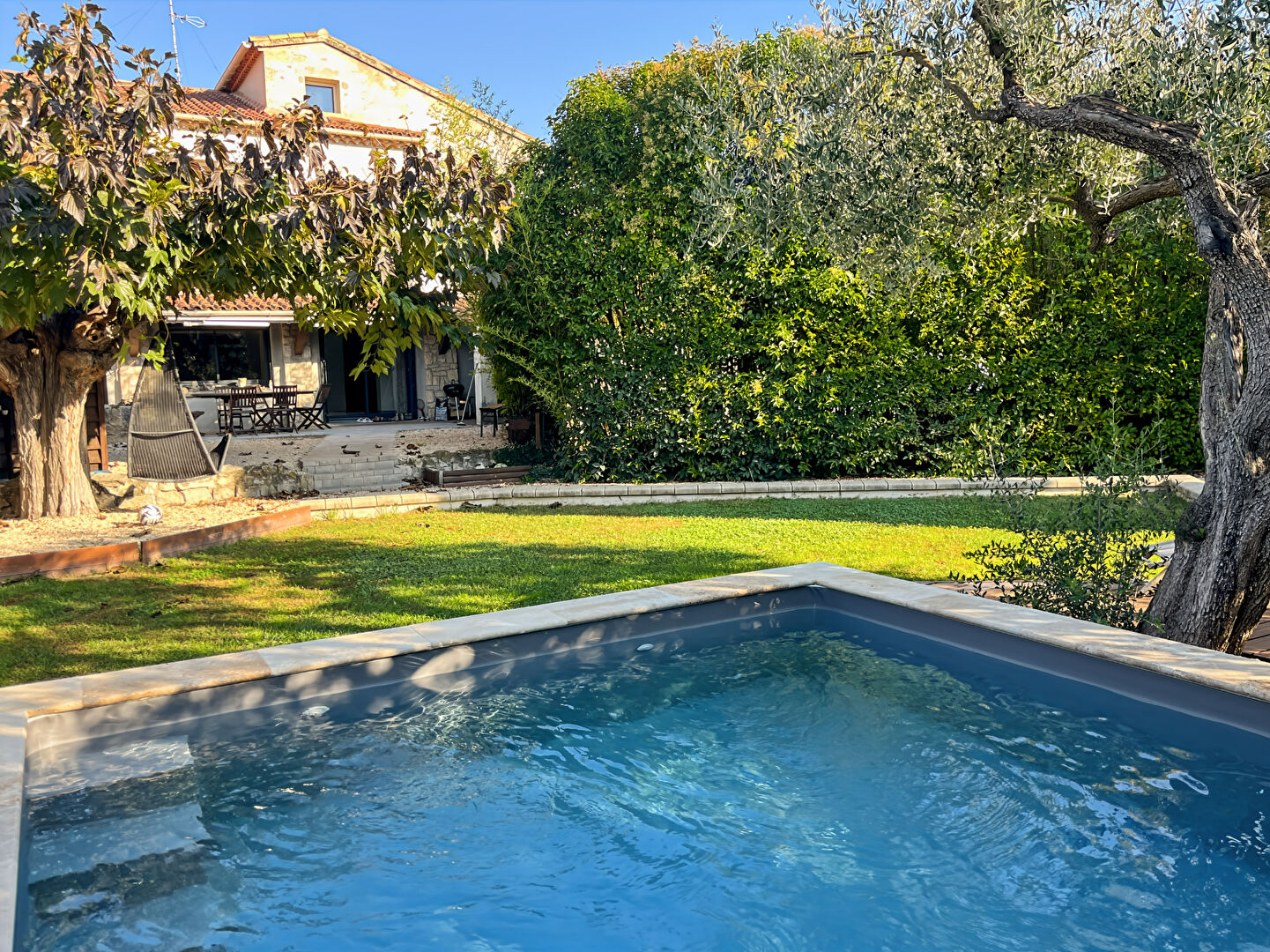 EXCLUSIVITE - Au calme, spacieuse habitation de plain pied avec jardin, piscine et parking privatif. Le logement comprend une vaste pièce à vivre lumineuse avec une cuisine semi ouverte, 3 chambres et deux salle d'eau. Produit soigné et coup de coeur.
