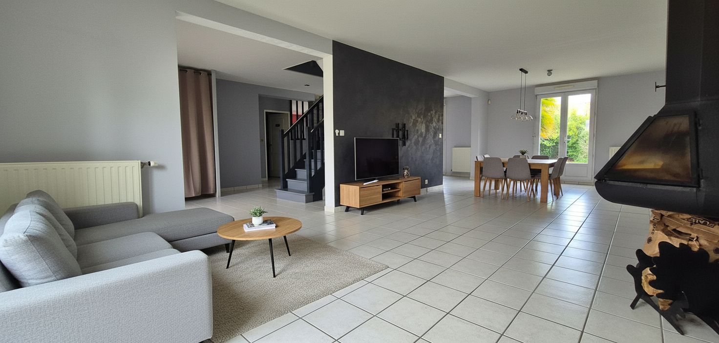 Exclusivité ABL IMMOBILIER - Dans un environnement calme et verdoyant, à seulement quelques minutes des écoles, commerces, et transports, découvrez cette maison non mitoyenne à la vie de plain-pied, idéale pour une vie confortable en famille. Les atouts principaux : Pièce de vie traversante lumineuse de 33 m² exposée Ouest, ouvrant sur une grande terrasse carrelée, ainsi que la cuisine indépendante aménagée et équipée, 3 chambres, une salle d'eau et un wc. Une chambre d'appoint a