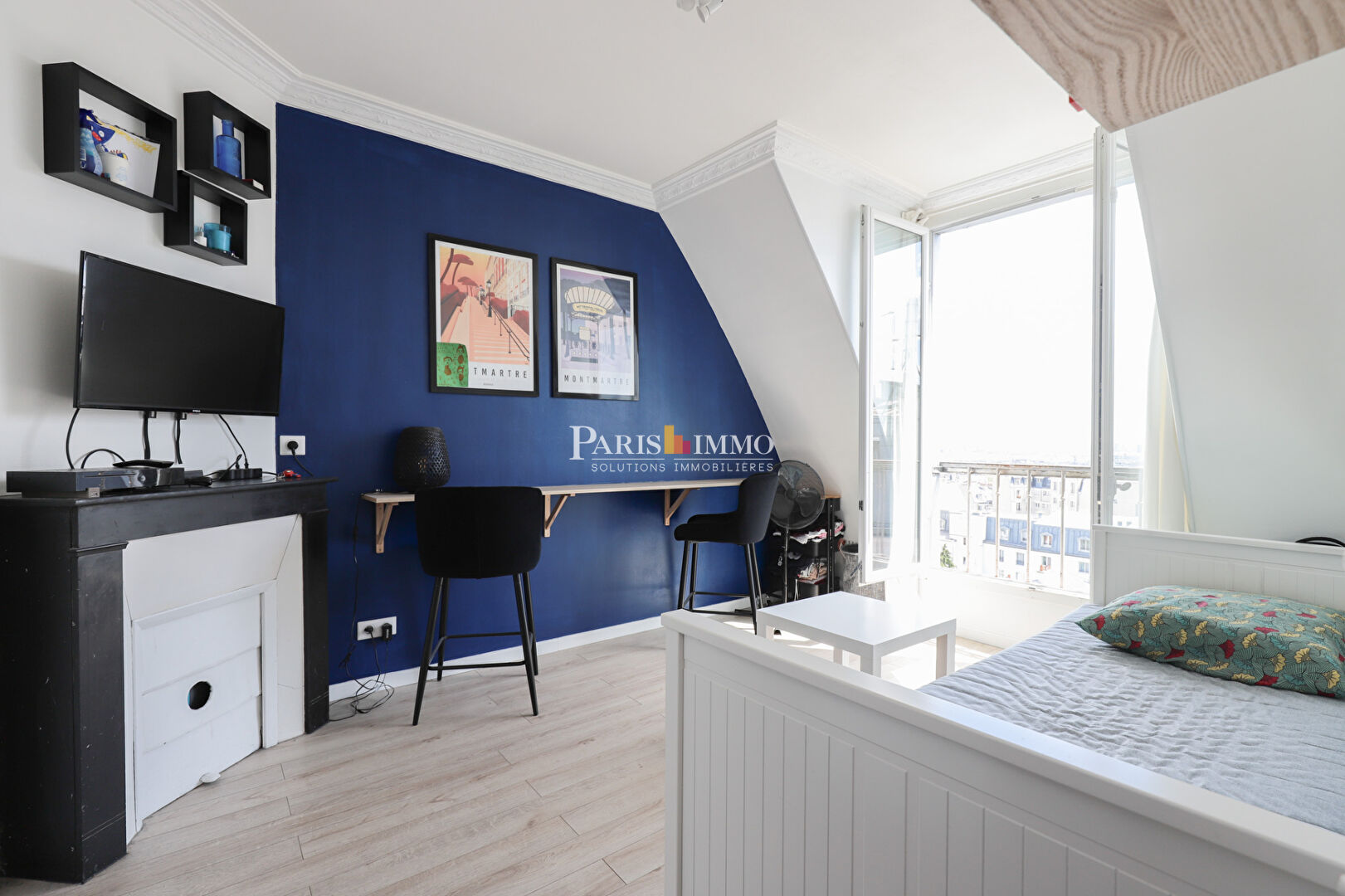 PARIS IMMO vous propose en exclusivité Rue Charles Nodier, au pied du Sacré Coeur. Dans un bel immeuble pierre de taille parfaitement entretenu avec gardienne, situé au 8è et dernier étage avec ascenseur, un beau studio de 14,40 m2 au sol 13,20 m2 Loi Carrez offrant une vue incroyable sur les toits parisiens , lumineux et calme. Il se compose d'une entrée, pièce de vie, cuisine US, salle d'eau avec wc, faibles charges. A visiter !!! Paris Immo, immatriculée au RCS de Paris sous le numéro 798 380 051. Les informations sur les risques auxquels ce bien est exposé sont disponible sur le site georisques.gouv.fr Copropriété de 45 lots - dont 42 lots habitation. (Pas de procédure en cours). Charges annuelles : 463 euros.