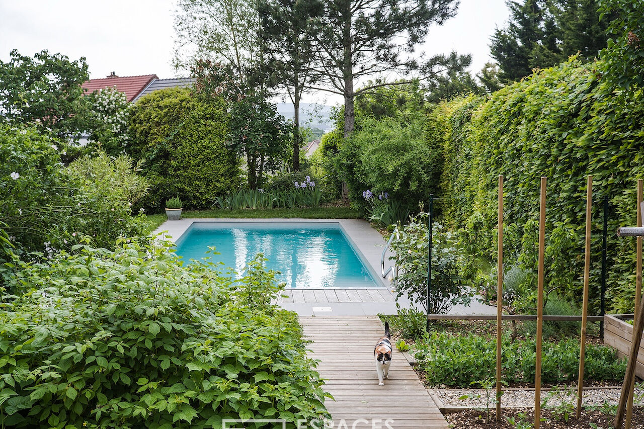 La maison d'architecte dans toute son expression, conjuguant lignes épurées et créativité artistique. Ses 182 m² s'ouvrent sur une atmosphère chaleureuse, où chaque détail reflète une véritable âme d'artiste. L'entrée en double hauteur donne le ton, dévoilant un vaste salon-salle à manger baigné de lumière, prolongé par un insert au bois. De larges ouvertures cadrent le paysage comme des tableaux vivants et offrent un accès direct à l'extérieur, où terrasse en bois et jardin paysagé composent une continuité naturelle avec l'intérieur. La cuisine, aménagée avec soin, s'ouvre elle aussi sur cet écrin de verdure. Au rez-de-chaussée, chambre parentale et salle d'eau, apportent intimité et confort. A l'étage, une généreuse mezzanine distribue quatre chambres baignées de clarté, complétées par une salle d'eau et une salle de bain. Une terrasse végétalisée prolonge l'espace et renforce le dialogue constant entre architecture et nature. Le terrain de 923 m², superbement paysagé et sans aucun vis-à-vis, est une véritable respiration. Piscine chauffée, carport, atelier, cave et dépendance de jardin enrichissent encore cet environnement unique, pensé pour conjuguer bien-être et fonctionnalité. Ici, les commerces et les écoles jusqu'au lycée se rejoignent à pied, offrant un quotidien pratique au coeur d'un cadre privilégié. DPE : Consommation énergie primaire : D (174) émissions de gaz à effet de serre D (32). Les informations sur les risques auxquels ce bien est exposé sont disponibles sur le site : https://errial.georisques.gouv.fr/ pour les zones concernées. Camille Mêlé Agent commercial EI RSAC 891592990 DIJON - 06.83.92.01.22 Camille MELE (EI) Agent Commercial - Numéro RSAC : 891592990 - DIJON.