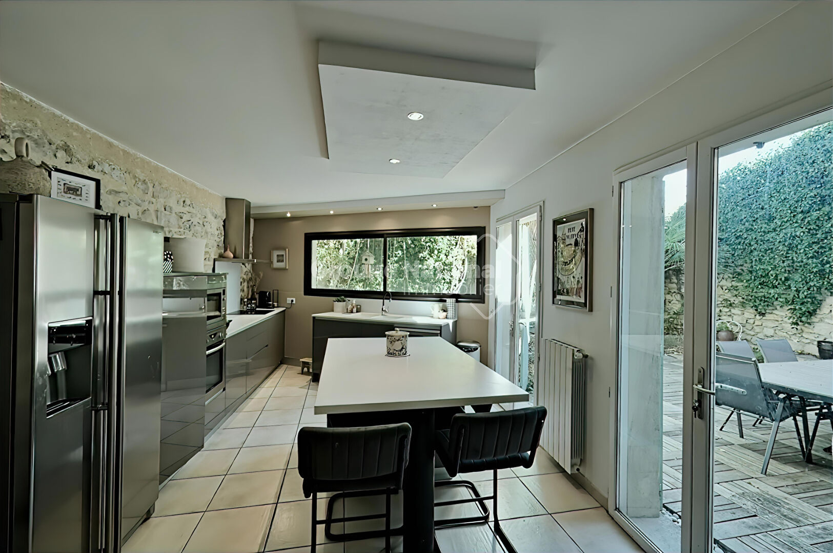 SAINT LAURENT D' AIGOUZE Venez découvrir cette maison de village entièrement rénovée alliant charme et modernité de 160 m² avec extérieur et sans vis-à-vis. Au rez-de-chaussée, une spacieuse pièce de vie de plus de 80 m² avec sa cuisine ouverte équipée, un toilette et une buanderie. Le tout s'ouvre sur un joli extérieur d'environ 80 m², parfait pour profiter des beaux jours en toute intimité. A l'étage, vous trouverez trois chambres lumineuses, un bureau (pouvant faire office de chambre enfant) deux salles d'eau et un toilette supplémentaire. .Maison entièrement rénovée avec goût. .Beaux volumes et belle luminosité. .Quartier calme et recherché. .A seulement 2 minutes à pied du centre du village. Un bien rare sur le secteur, idéal pour une famille ou une résidence secondaire.