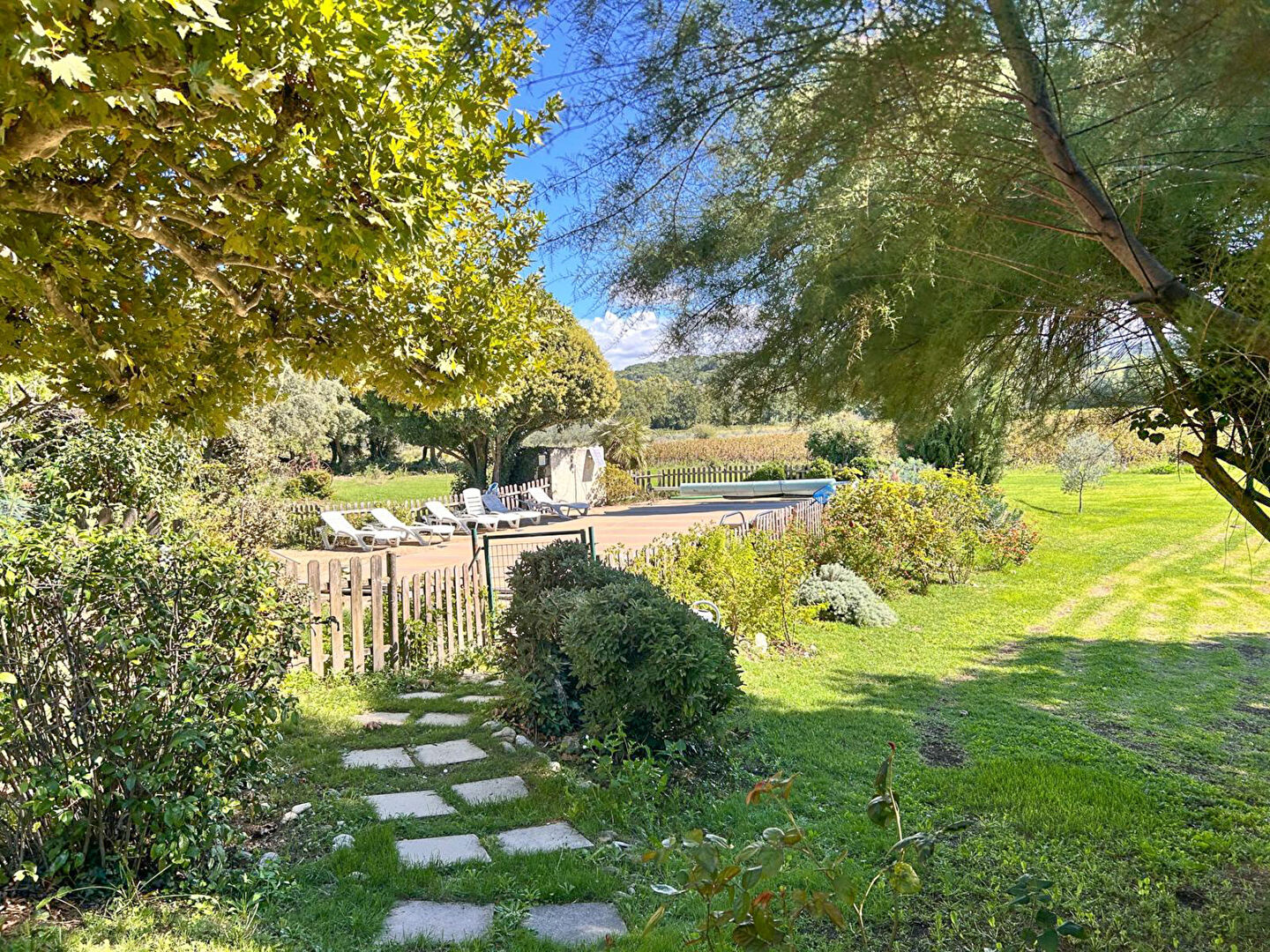 En campagne, sans être isolée, belle ancienne ferme rénovée d'environ 190 m² habitables implantée sur 7 hectares de terrain, avec piscine. La maison offre en rez-de-chaussée une cuisine aménagée ouvrant sur terrasse, un cellier avec buanderie, un salon avec cheminée et une salle à manger, le tout donnant sur une grande terrasse plein sud et le jardin. Une vaste suite parentale complète ce niveau avec salle de bains, dressing et WC indépendant. A l'étage, 3 chambres et une salle de bains ainsi qu'un grenier de belle surface offrant un potentiel d'agrandissement. Au dernier niveau, 2 chambres supplémentaires. Côté extérieurs, 2 grandes dépendances se trouvent au nord de la bâtisse. Les 7 hectares de terrain, dont une partie est louée sous bail agricole (vignes, grenadiers, aspergeraie, épeautre), descendent jusqu'à la rivière. Piscine 11 x 5 m. Deux puits dont l'un alimente la piscine et l'autre la maison. Pompe à chaleur et radiateurs électriques. (5.26 % honoraires TTC à la charge de l'acquéreur.)