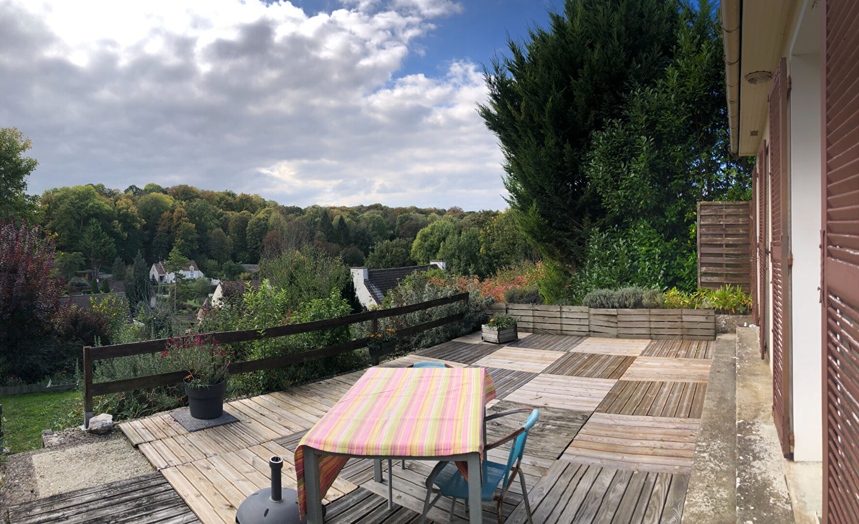 Bien au calme, au coeur d'un village du Vexin avec école, venez découvrir cette maison de plain-pied et sa terrasse offrant une belle vue dégagée sur la forêt. Entrée avec rangement, 3 chambres, une salle de bain, WC indépendant, une cuisine aménagée, équipée et un lumineux séjour double de 32 m² avec poêle à granulés récent et 2 portes fenêtres en accès terrasse. Sous-sol total (buanderie/stockage/salle de jeux) en accès depuis l'intérieur de la maison et depuis le jardin en contrebas, uniquement en accès piéton. 2 places de stationnement extérieur. Un joli jardin clos et arboré sur plusieurs niveaux vient agrémenter l'ensemble. Assainissement individuel aux normes. Situation idéale à 15 minutes de l'A13 ou de l'A15 via la D14 et chemins de randonnée aux alentours pour rejoindre Vétheuil. Une visite s'impose !