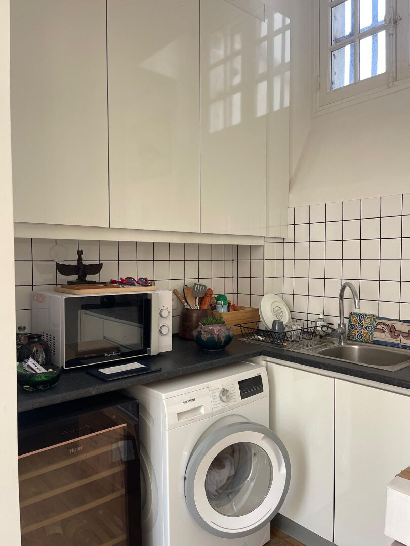 Au 1er étage d'un magnifique immeuble du 18ème, appartement traversant de 56m² avec entrée, séjour, cuisine ouverte équipée et aménagée, chambre avec dressing, bureau, salle de bains, wc séparé et cave. Très calme, lumineux, belle hauteur sous plafond, proche des commerces, écoles et transports. (2.89 % honoraires TTC à la charge de l'acquéreur.) Copropriété de 25 lots - dont 20 lots habitation. (Pas de procédure en cours). Charges annuelles : 740 euros. Théophane Delamotte (EI) Agent Commercial - Numéro RSAC : - .