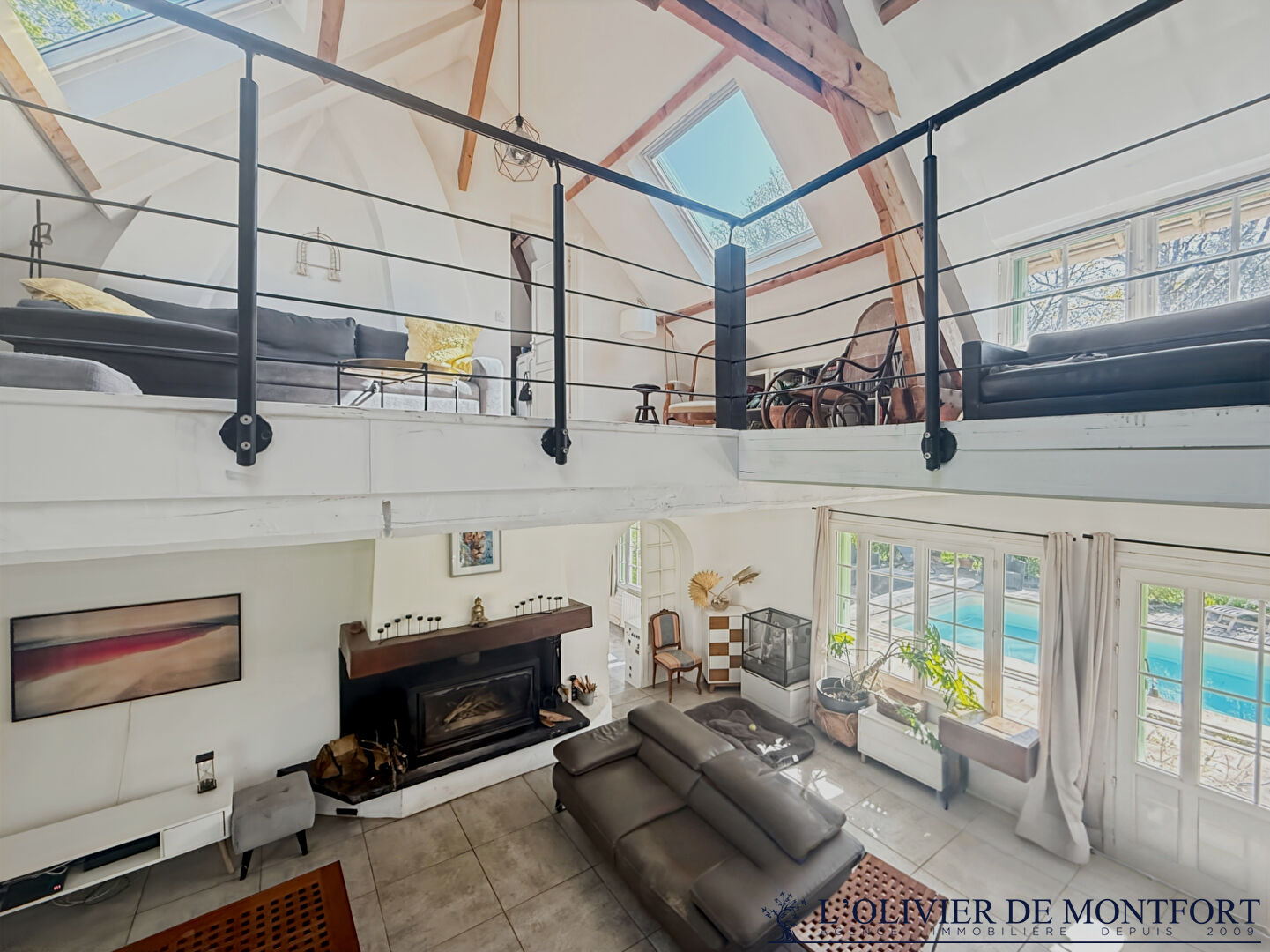 Réf : 812 Venez visiter cette maison pleine de charme lumineuse aux volumes généreux avec une piscine chauffée le tout sur un terrain arboré et entièrement clos de 6000 m². Au RDC un double séjour de 40m², une cuisine ouverte sur une salle à manger de 26m², 1chambre avec SDE et une 2ème chambre avec une SDE ou SDB à créer et un bureau de 9m² ouvert sur le jardin. A l'étage vous serez séduit par une grande pièce palière de 26m² desservant deux chambres. 1chambre de 15m² et 1 de 23m² avec sa SDB privative. LES PLUS : - La piscine chauffée - Maison d'hôtes de 45m² environ avec RDC séjour, cuisine ouverte sur un coin repas et une SDB WC. A l'étage une chambre en mezzanine. - Un quart port - Un abri de jardin - Un enclos pour cheval avec son box Prix: 650 000 EUR dont 4.84% de commission d'agence TTC charge acquéreurs. Prix hors honoraires: 620 000 EUR. Valérie Brunois - Agent commerciale immatriculée au RSAC de CHARTRES sous le numéro 411 199 581 (4.84 % honoraires TTC à la charge de l'acquéreur.)