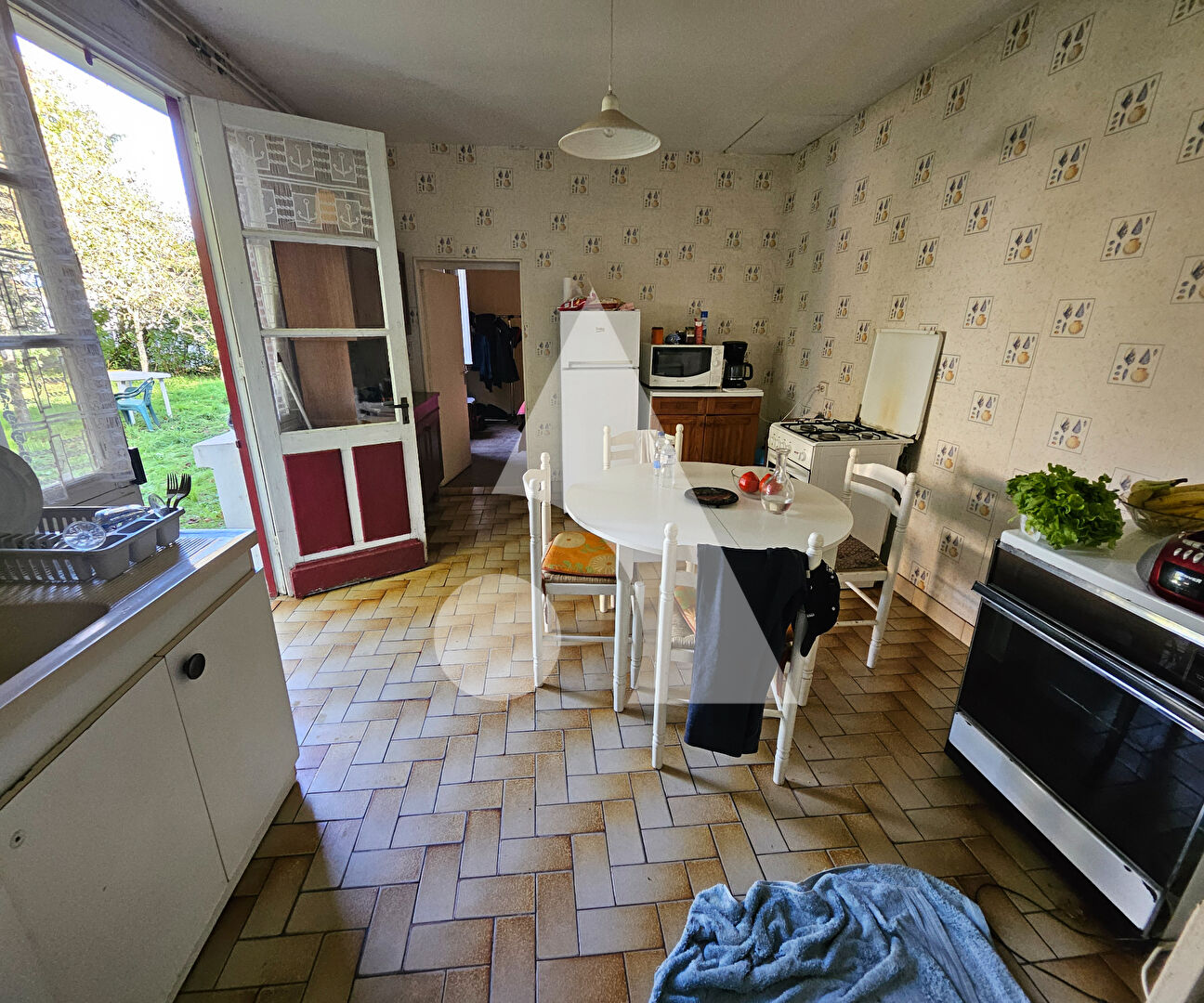 Maison à rénover comprenant un séjour, une cuisine 2 chambres, salle d'eau / WC. Attenant une buanderie. Raccordée au tout à l'égout, pas de chauffage, simple vitrage bois. Sur terrain 412m² (5.00 % honoraires TTC à la charge de l'acquéreur.)
