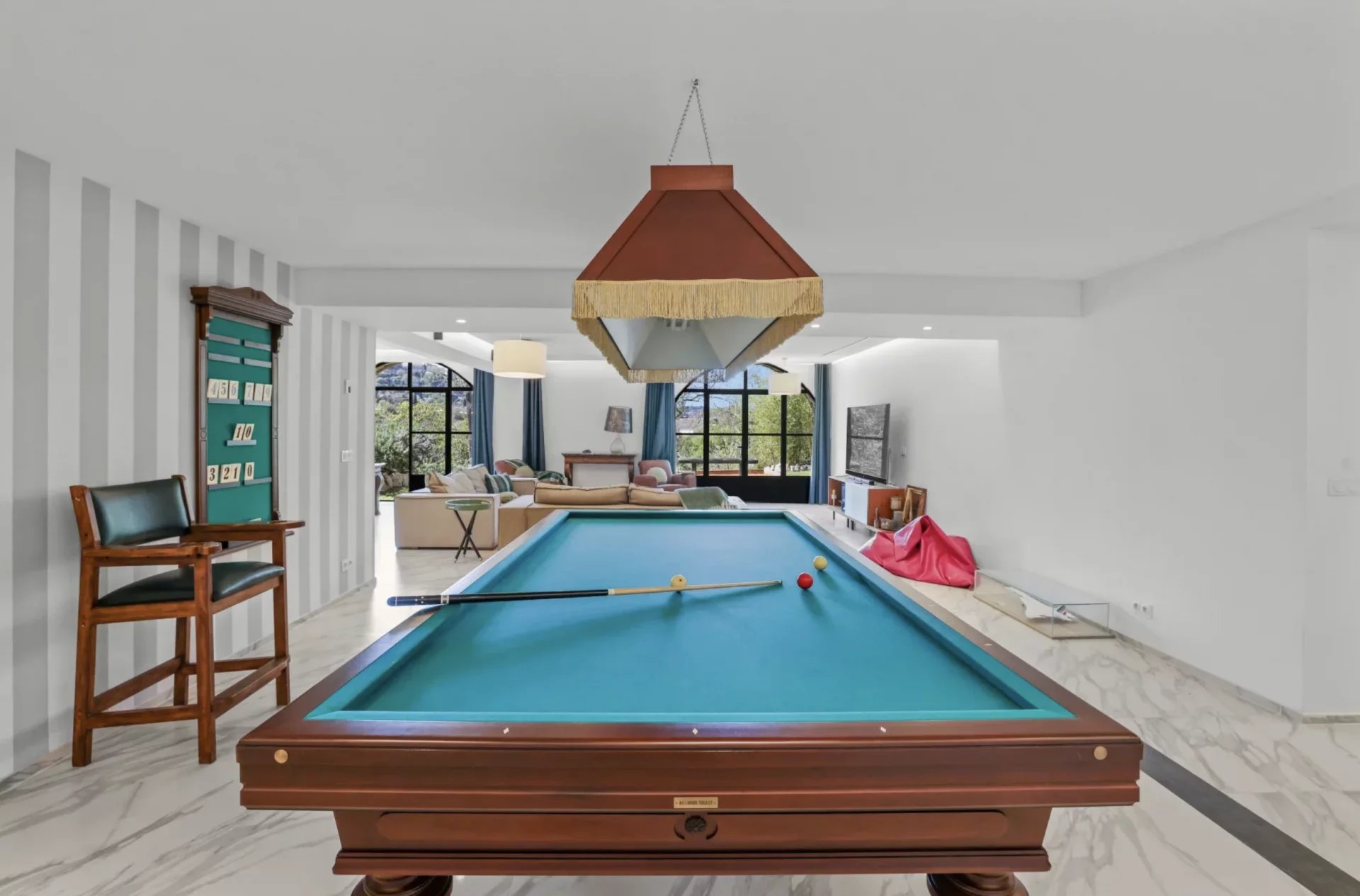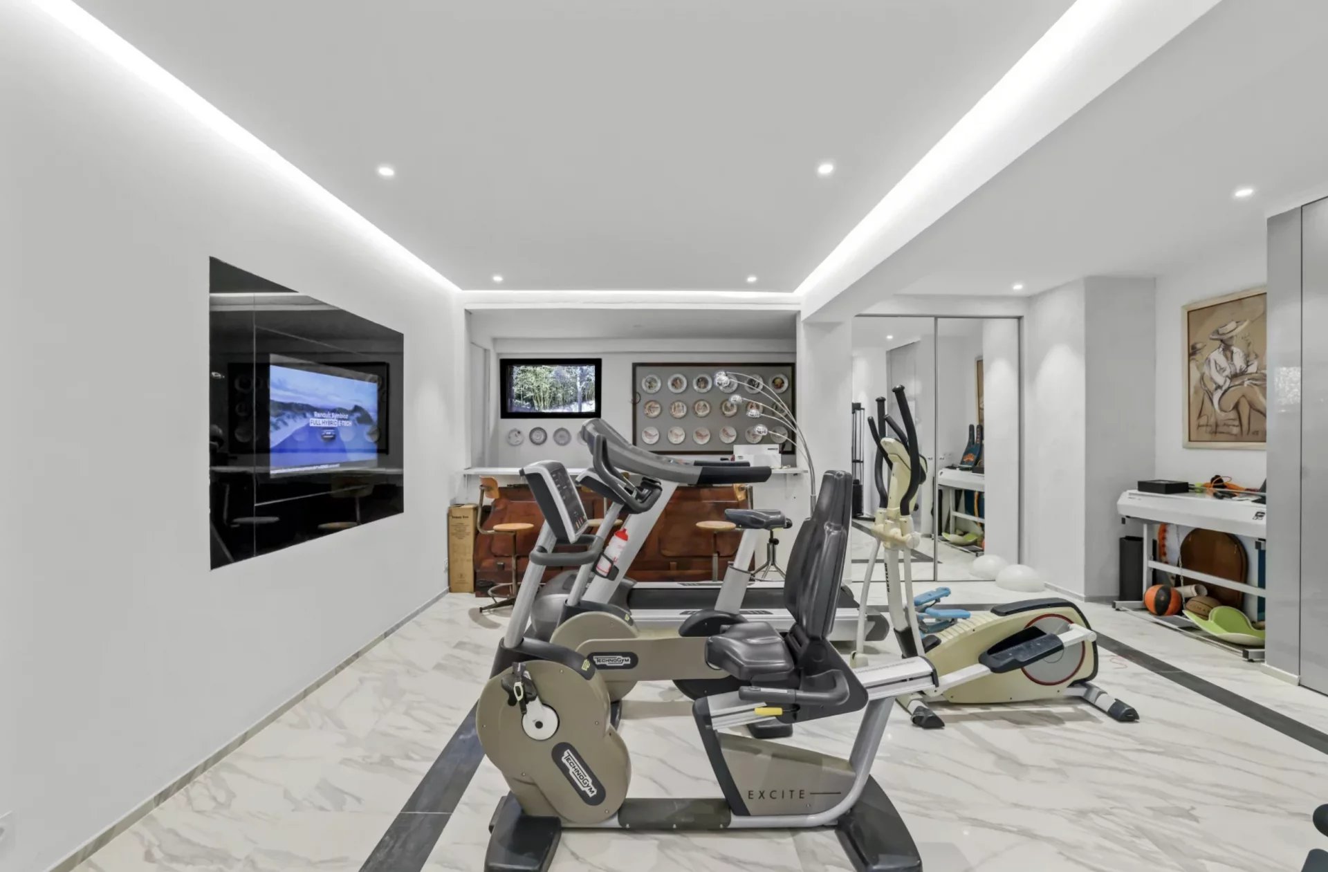 En rez-de-jardin, la villa déploie un espace bien-être et réception exceptionnel : salle de jeux avec billard, salle de sport, sauna, salle de cinéma, bar, cave à vins, buanderie et multiples rangements.