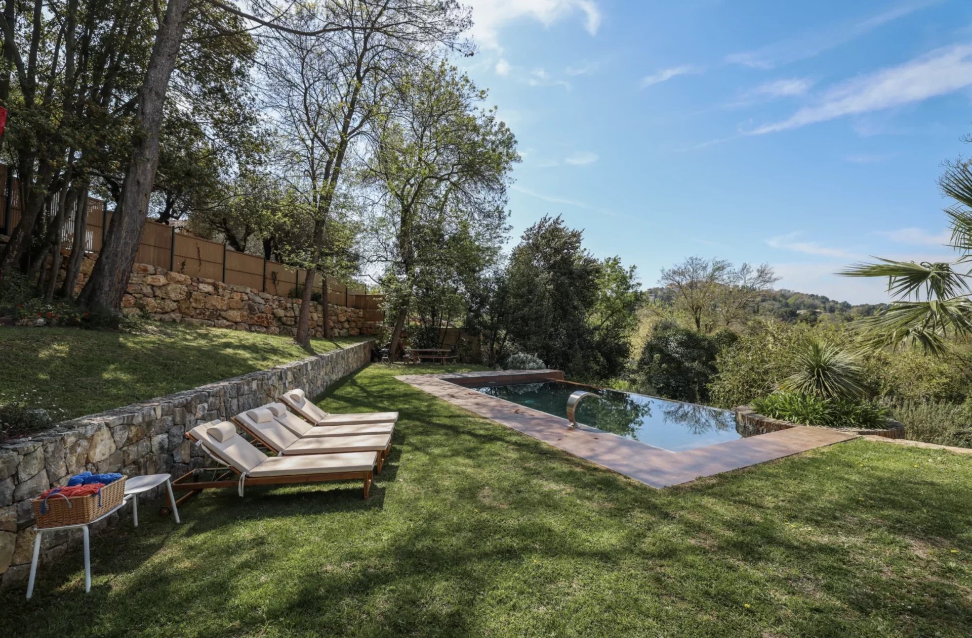 Le jardin, soigneusement aménagé dans un esprit méditerranéen, offre une piscine, un jacuzzi, un terrain de pétanque et de vastes terrasses pour profiter du climat azuréen tout au long de l’année.