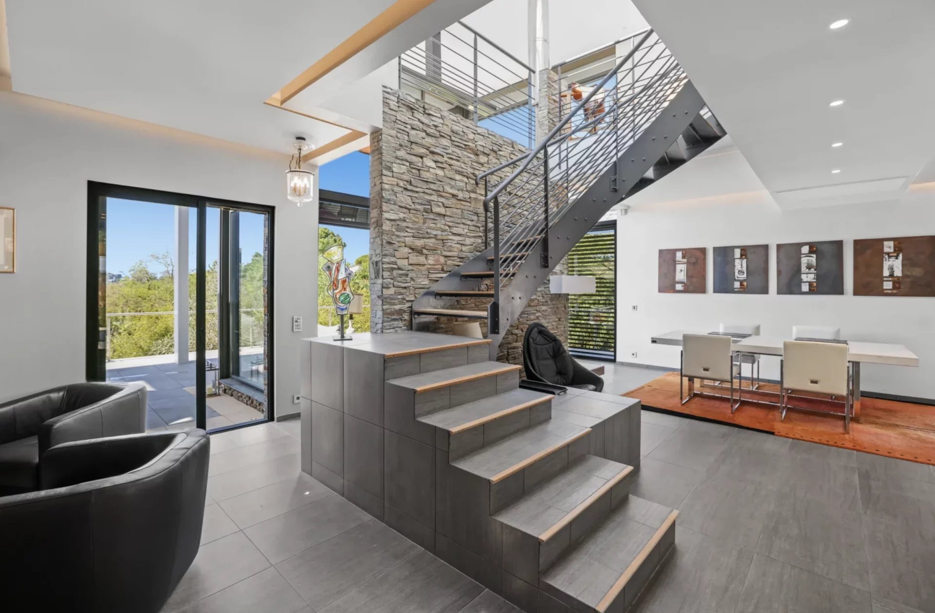 À l’étage, trois chambres en suite disposent chacune de leur salle d’eau et dressing. Une mezzanine lumineuse accueille un agréable espace bureau, bénéficiant d’un plafond vitré motorisé.