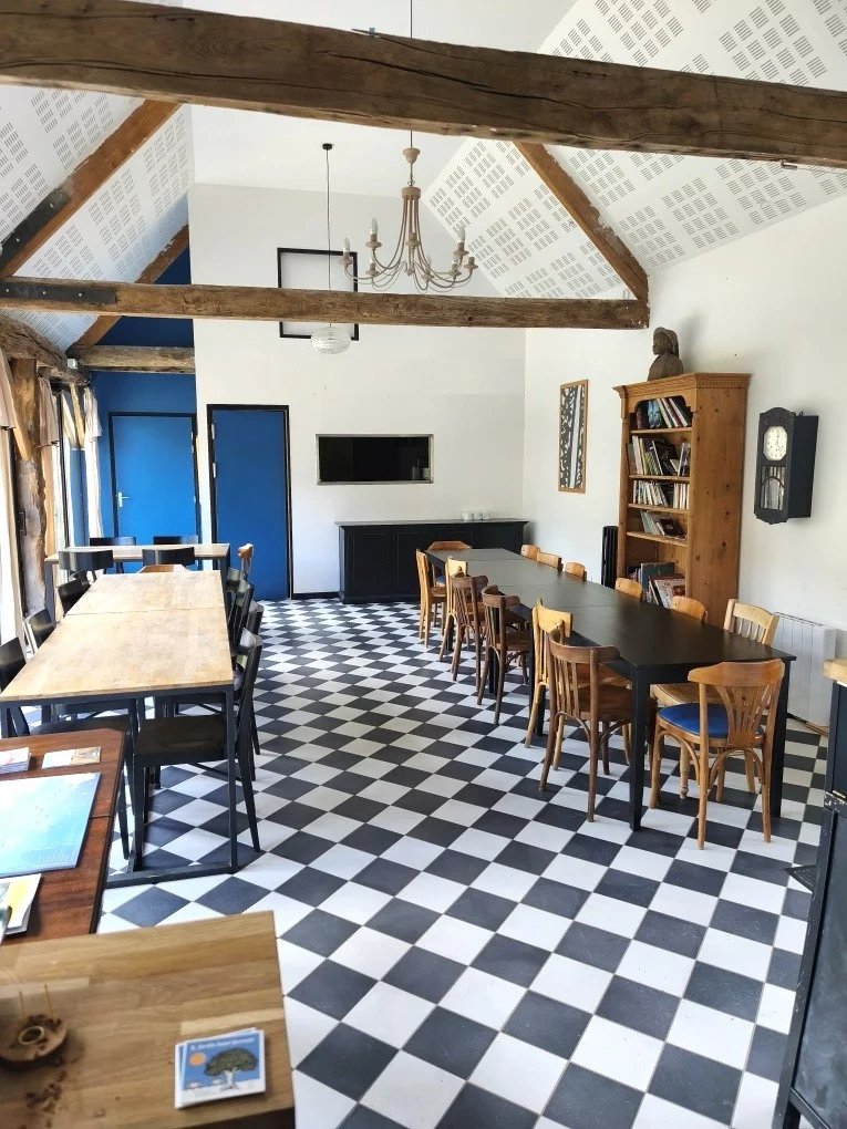 -Salle de Réception: Magnifique Longère de 100m2 joliment restaurée et sublimée par ses poutres et parquets,une salle traiteur de 20m2, ainsi que des toilettes aux normes handicapés
