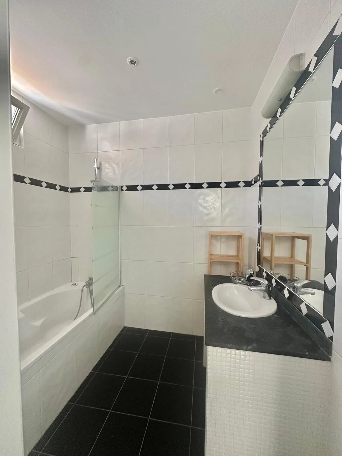 Idéalement situé proches de toutes les commodités et du tram A, maison en seconde ligne composée d'une belle pièce de vie avec plafond cathédrale, deux chambres dont une de plain pied, salle de bains, wc séparé. Terrasse sans vis à vis. Stationnement possible sur la parcelle.