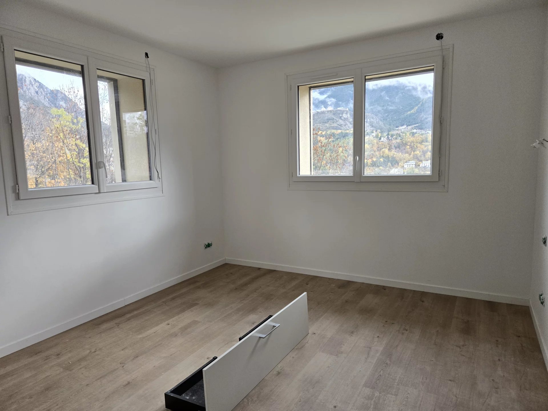 EN EXCLUSIVITE! LIBRE DE SUITE Sur la commune de PUY ST PIERRE, au lieu dit des "basses Queyrelles" , à 1 km du centre ville de Briançon, dans une petite copropriété séparée en 3 logements entièrement rénovés, cet appartement situé au 1er étage est un T4 avec une terrasse exposée Sud. Entrée indépendante avec emplacement pour un placard, cuisine lumineuse donnant sur la terrasse, séjour avec tubage pour installer un poêle à granules avec accès terrasse également, buanderie/cellier avec chauffe eau et branchement machines, couloir menant à la partie nuit, 3 chambres dont une avec sa douche et son lavabo, une salle d'eau avec douche et double vasque, des toilettes séparées et lave mains. La cuisine est visible sur plans mais non prévue dans la vente. L'appartement est vendu non aménagé mais entièrement rénové par des artisans. Compteurs indépendants. Chauffage électrique (convecteurs inertie) , sortie ventouse pour poêle à granules (non fourni) , chauffe eau 200L. VMC simple flux hygroréglable. 2 places de stationnement privatives et 1 remise sont vendus avec le logement. Prévision de pause d'une borne de recharge électrique sur la partie commune. Charges de copropriété faibles. Prix de vente : 399 000€ dont 4% de frais d'agence CONTACT : Audrey CARBONNEL 07.49.51.26.01 Photos non contractuelles avec proposition d'aménagement.
