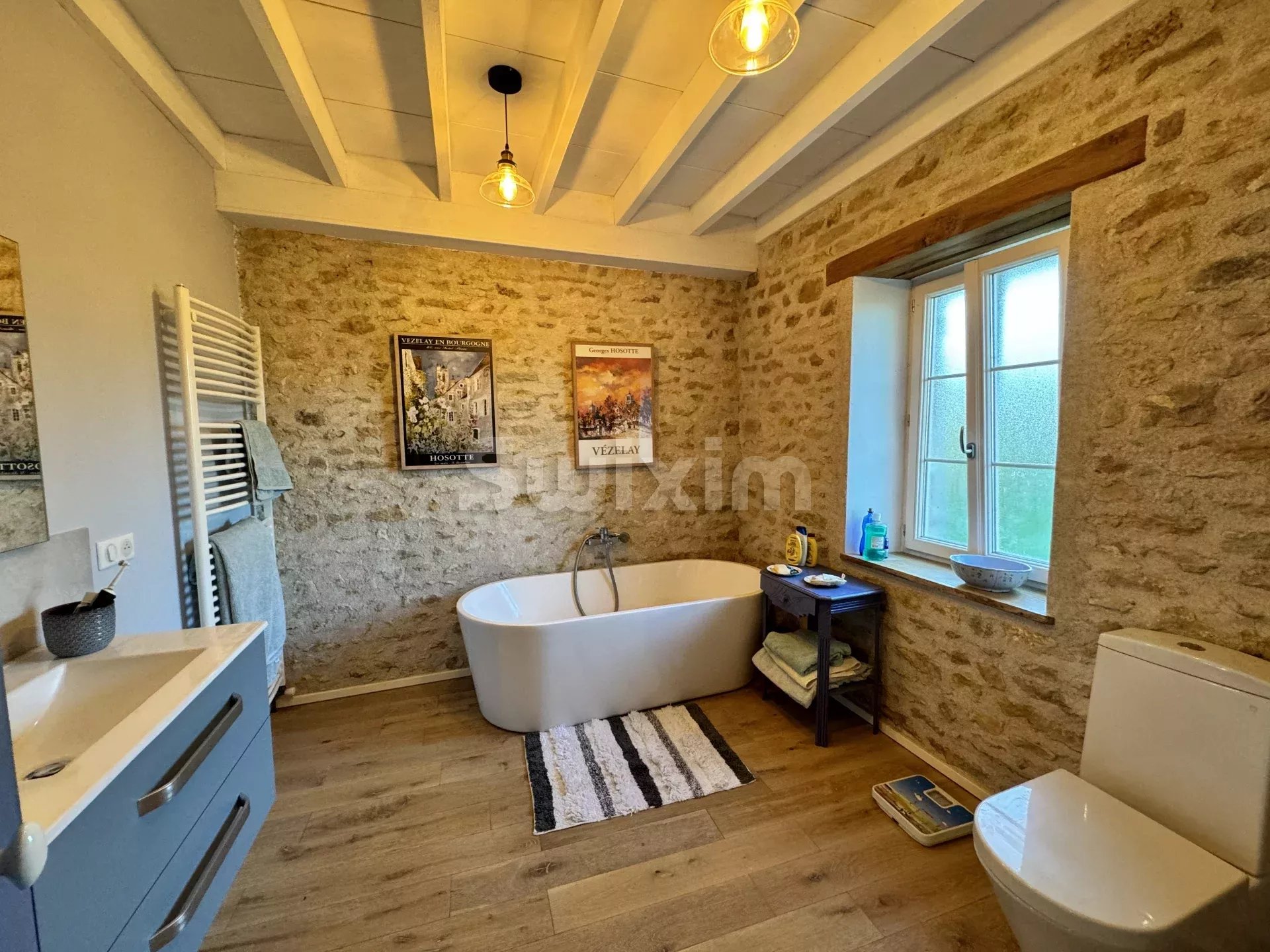 Venez découvrir en exclusivité, dans un petit hameau très calme à proximité de Bazoches, 12 km de Vezelay Cette magnifique propriété complètement rénovée, l'entrée, depuis une rue très calme, donne sur le jardin fleuri, avec dépendances (maisonnette, carport, terrasse couverte) la maison se compose d'une cuisine entièrement équipée, une salle à manger avec poêle à bois et tomettes au sol, un spacieux séjour avec de grandes ouvertures au sud et poêle à bois, chaufferie, wc, accés au grenier aménageable (1chambre possible) à l'étage, suite parentale avec salle de bain privative, 2 chambres, salle d'eau avec WC. le terrain offre beaucoup d'intimité, 3 terrasse dont une couverte, espace potager proche de la rivière avec fruitiers. Double vitrage intégral, chauffage central gaz récent, électricité récente, tout à l'égout, adoucisseur d'eau Aucun travaux à prévoir, Contactez nous rapidement pour plus d'informations et organiser une visite,