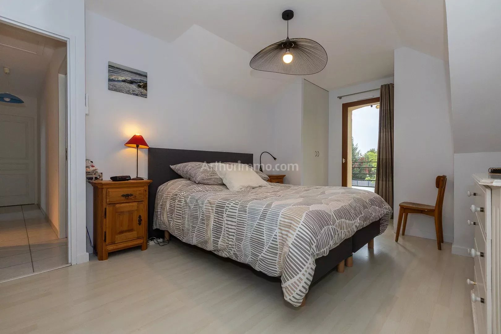A l'étage un couloir dessert une chambre avec salle d'eau privative et un balcon, un wc, une chambre d'enfants, une salle de bain et une quatrième chambre.