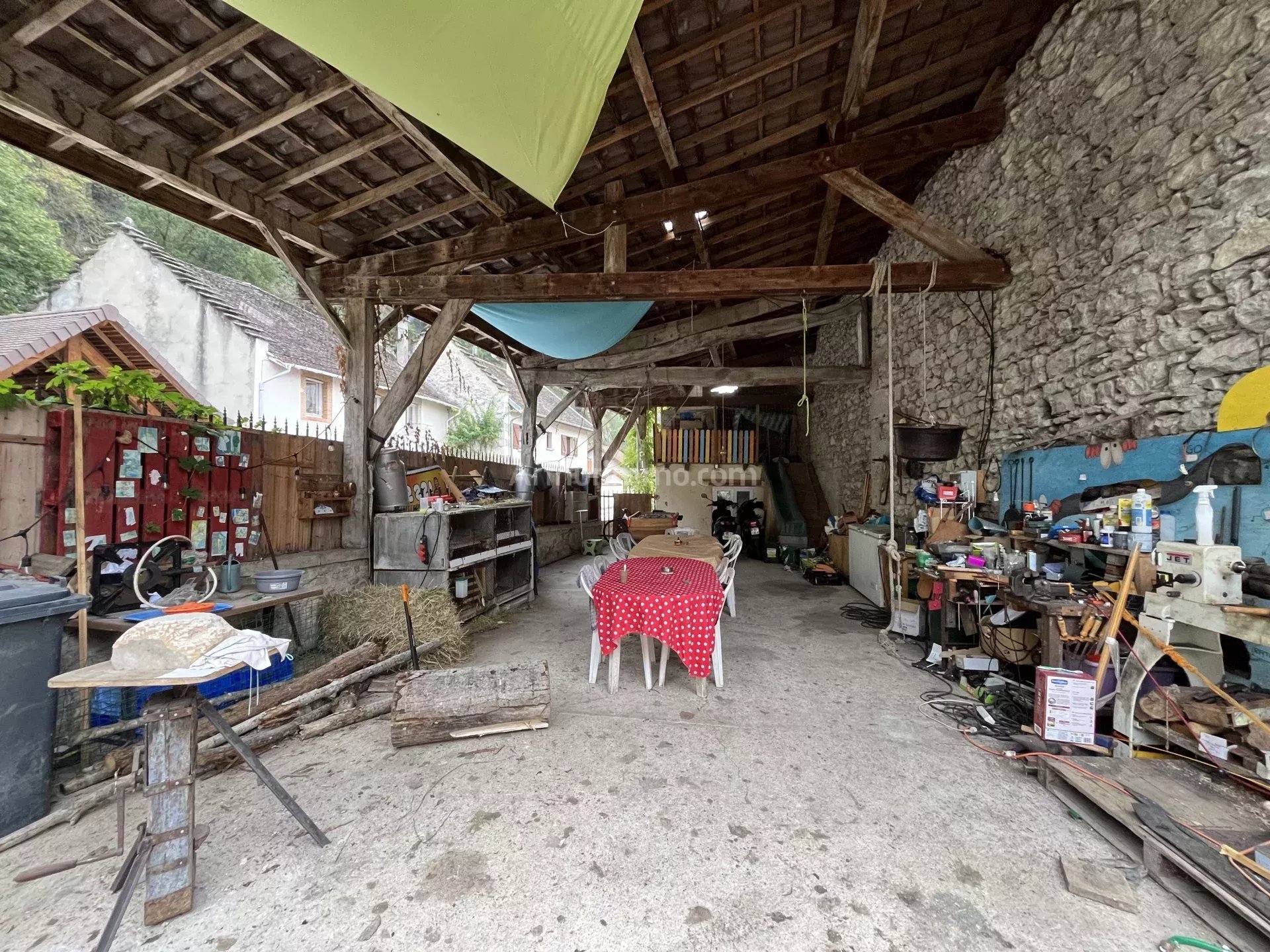 Côté extérieur, la maison offre un préau de 73 m², une terrasse bois donnant sur la piscine 6m x 3m, une chaufferie, un atelier avec une boutique (60m²), une pizzeria avec un four pro, une grange parfait pour un artisan, une activité indépendante ou simplement pour le rangement et les loisirs.