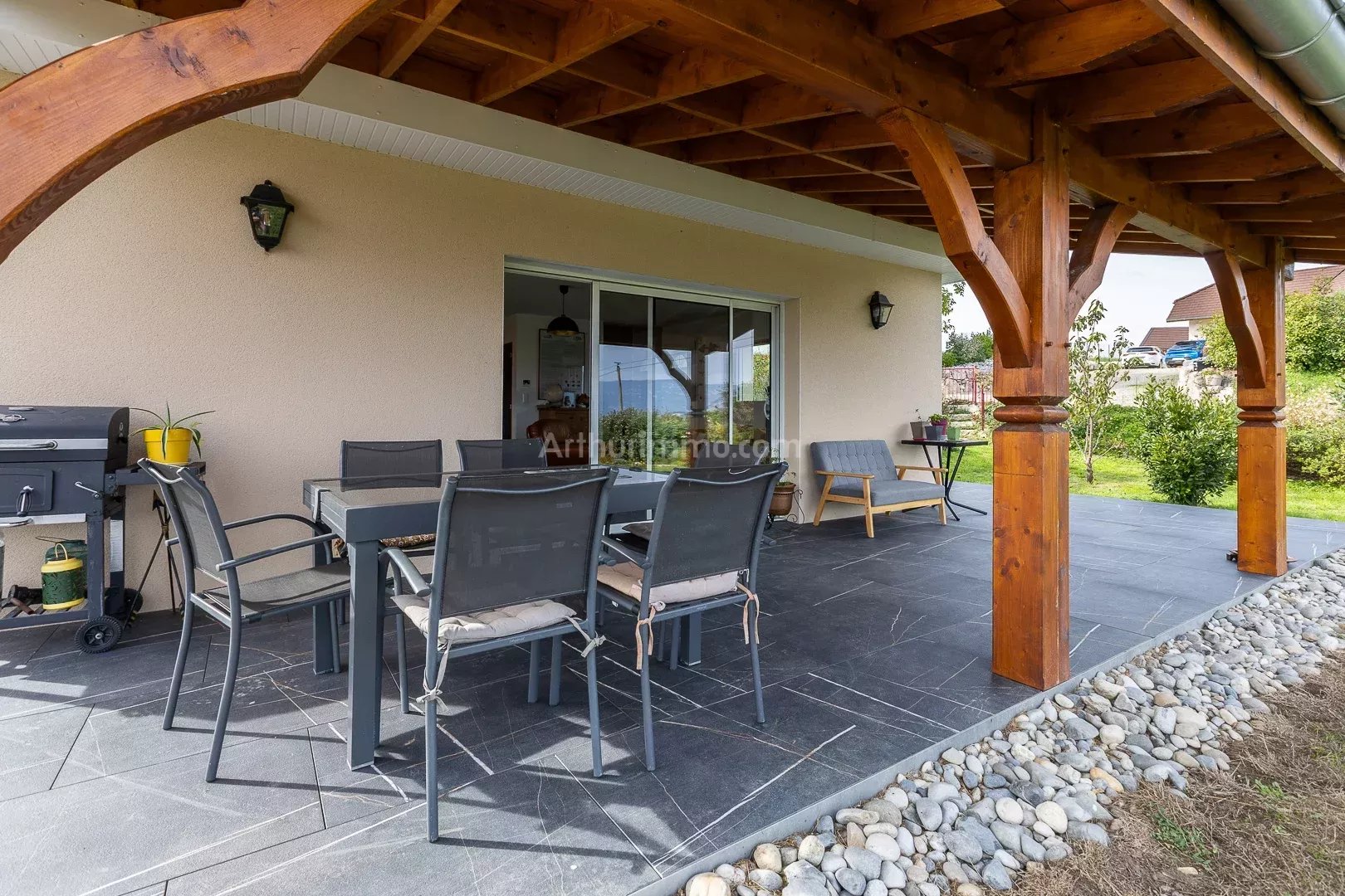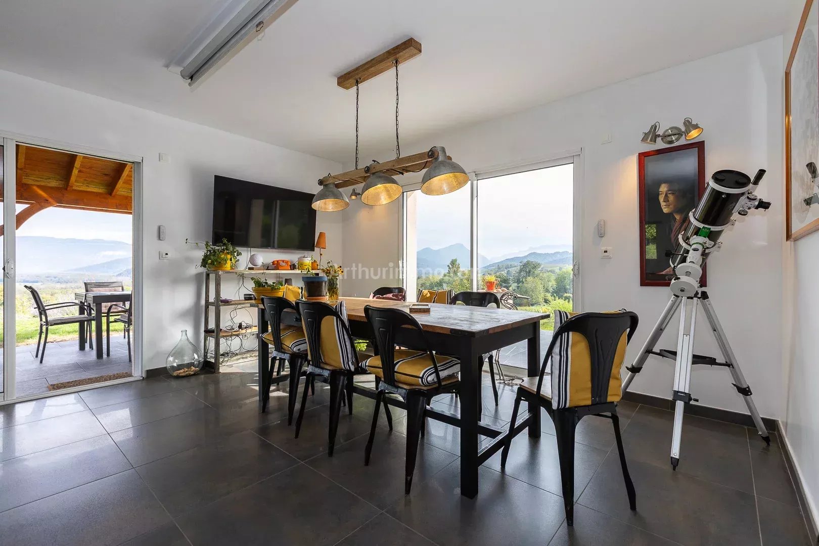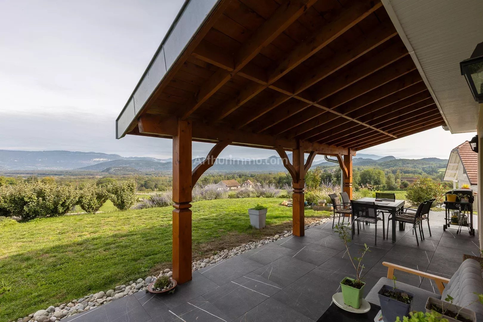 Offrez-vous une vue à couper le souffle depuis cette maison moderne de 125 m² habitables, nichée sur un grand terrain de 3 290 m². Construite en 2021, elle allie confort, lumière et performance énergétique. À l’intérieur : Séjour lumineux avec cuisine ouverte, cellier 4 chambres (dont 1 au rez-de-chaussée), 2 salles d’eau et 2 toilettes Terrasse de 78 m², partiellement couverte, parfaite pour admirer la vue Annexes et équipements : Garage de 35 m² et atelier indépendant de 30 m² Cuve de 4 000 litres pour récupération des eaux pluviales Chauffage pompe à chaleur au sol, poêle à bois, chauffe-eau thermodynamique Adoucisseur d’eau, volets roulants électriques, VMC simple flux, fibre Maison construite sur vide sanitaire Cette maison est un véritable havre de paix, offrant grands espaces, confort moderne et panorama exceptionnel, tout en restant proche des commodités. Ref 6993 DPE : B. Honoraires charge vendeur. Visite virtuelle et vidéos disponibles sur notre site. Les informations sur les risques auxquels ce bien est exposé sont disponibles sur le site Géorisques : georisques.gouv.fr Contact : Arthurimmo Belley/Vezeronce-Morestel/Montalieu