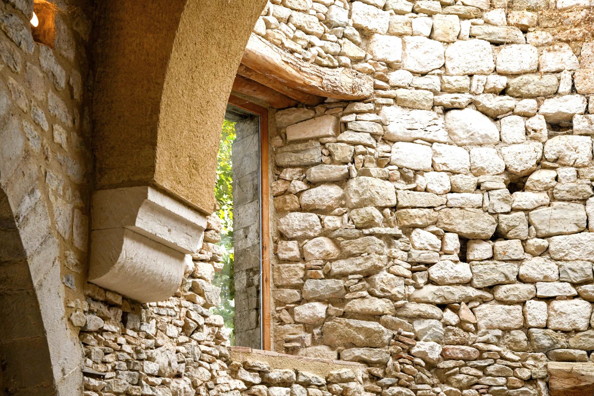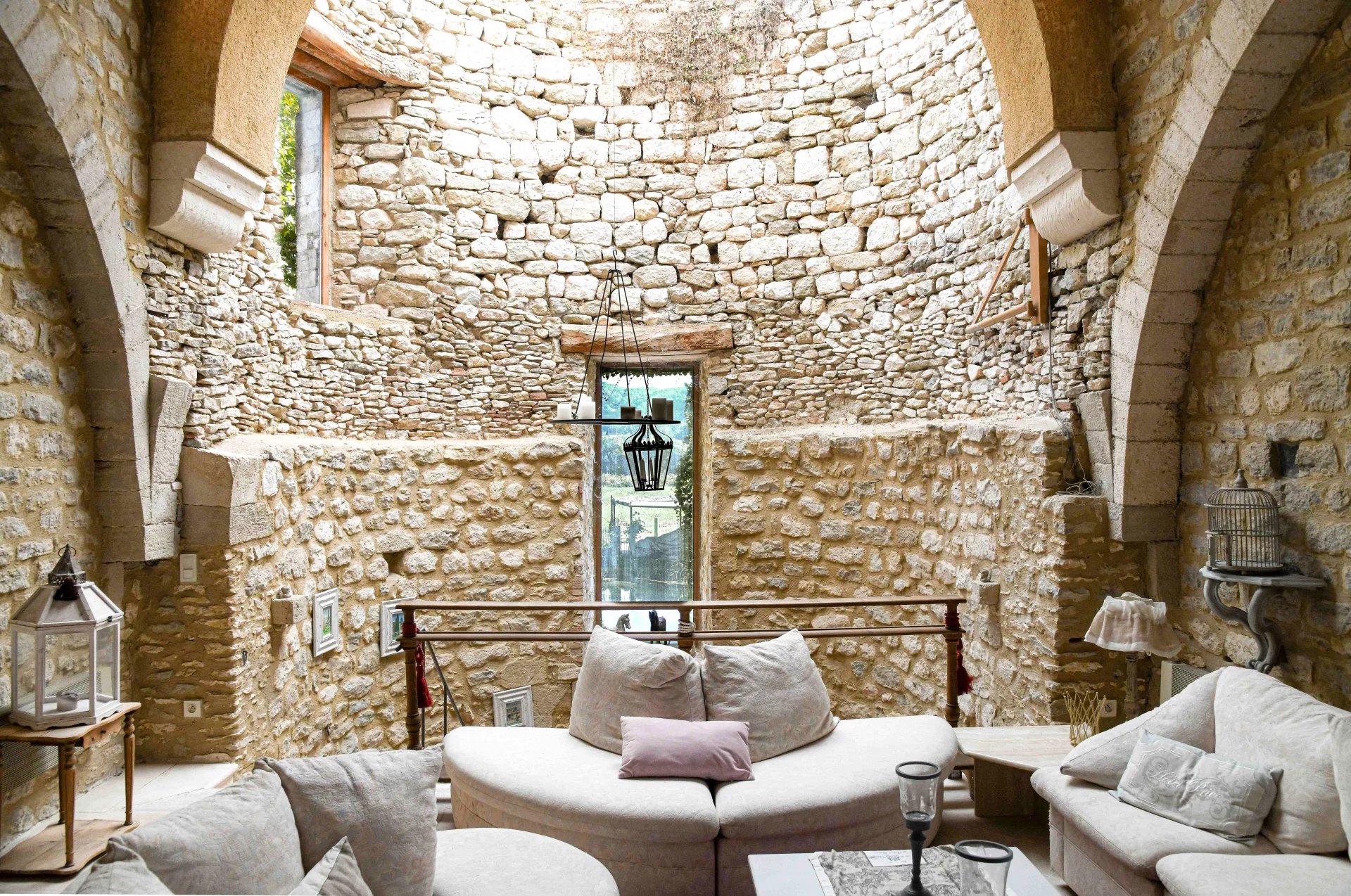Grand salon de style cathédrale, salle à manger/cuisine 2 chambres, 3 salles de bains, salon TV (ou 3e chambre) Cour, petit jardin Située au cœur d’un village avec toutes les commodités