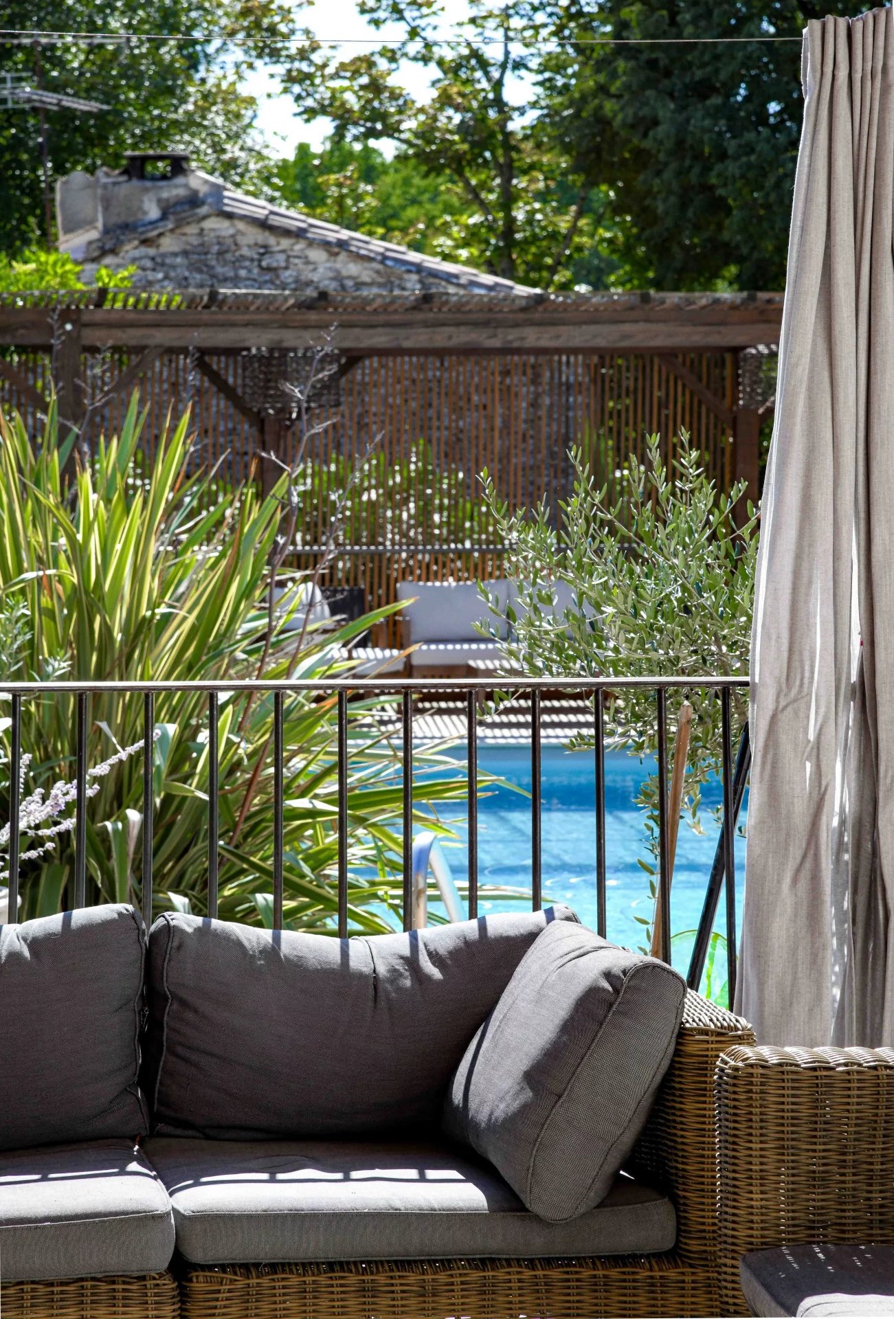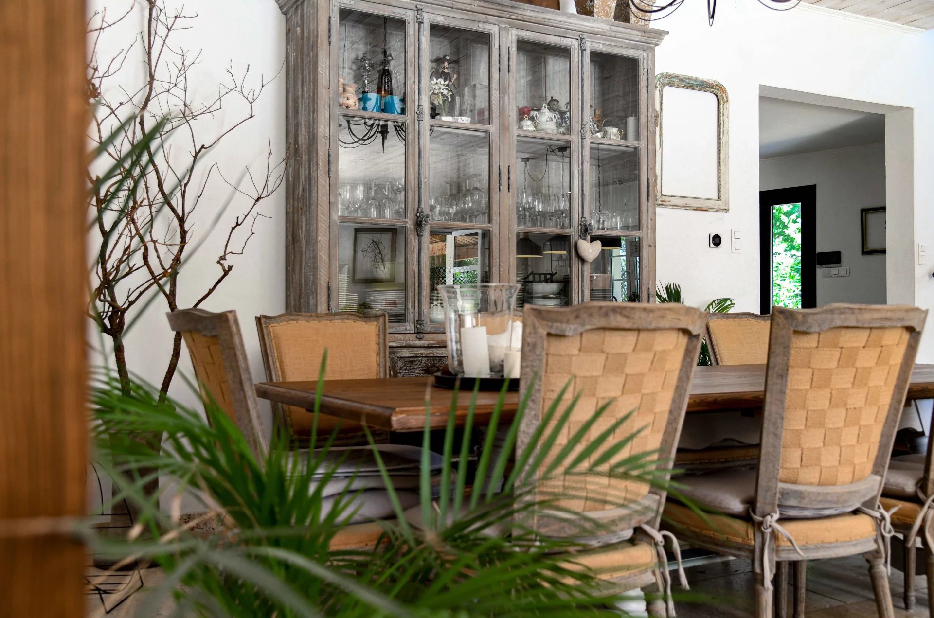 Unique ensemble de réception de 78 m² ouvert sur les extérieurs 5 chambres et 3 salles de bains dont une suite au rez-de-chaussée Jardin arboré et paysagé de plus de 1500 m². Piscine et salon d’été. A proximité du centre d’Uzès, des commerces et commodités