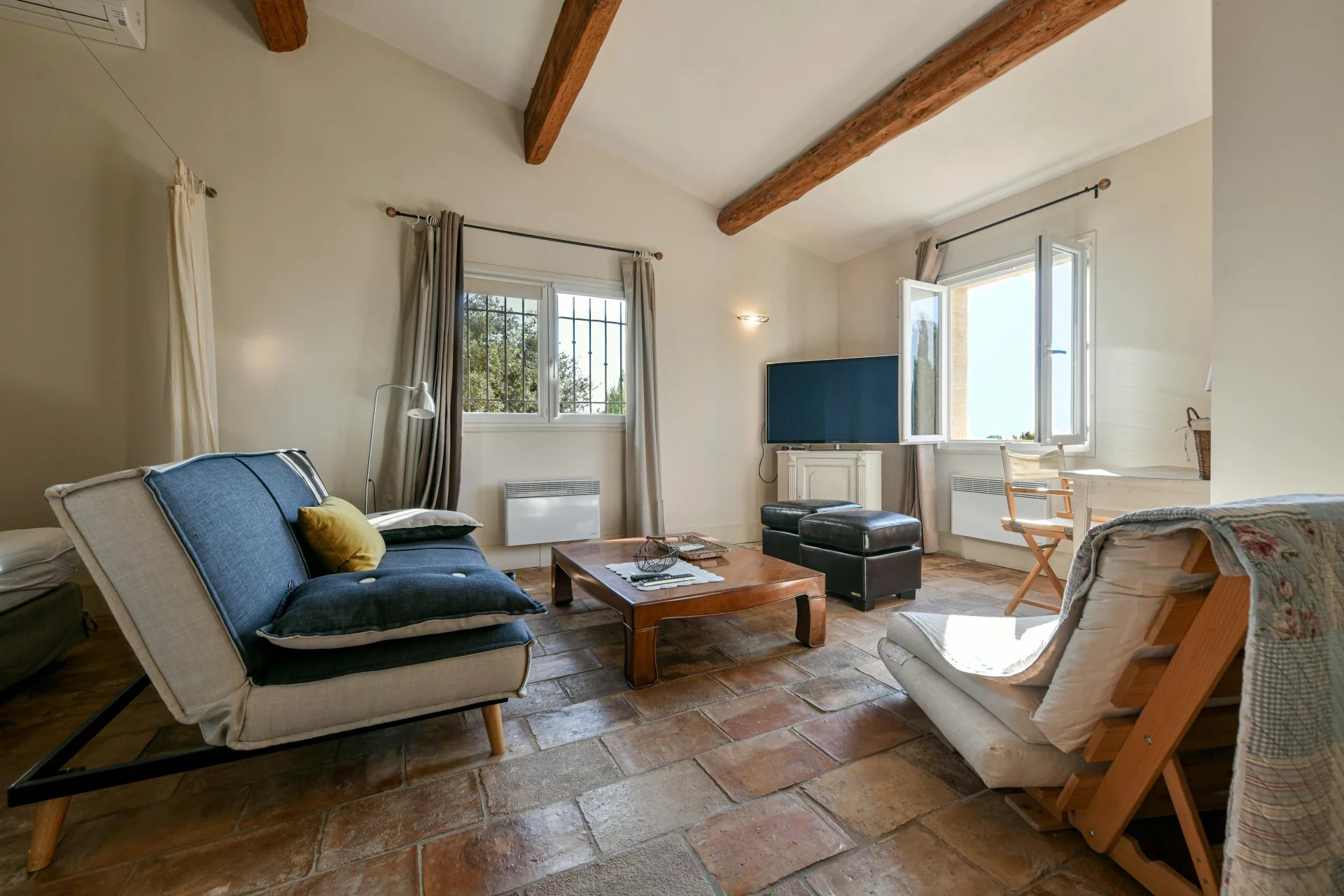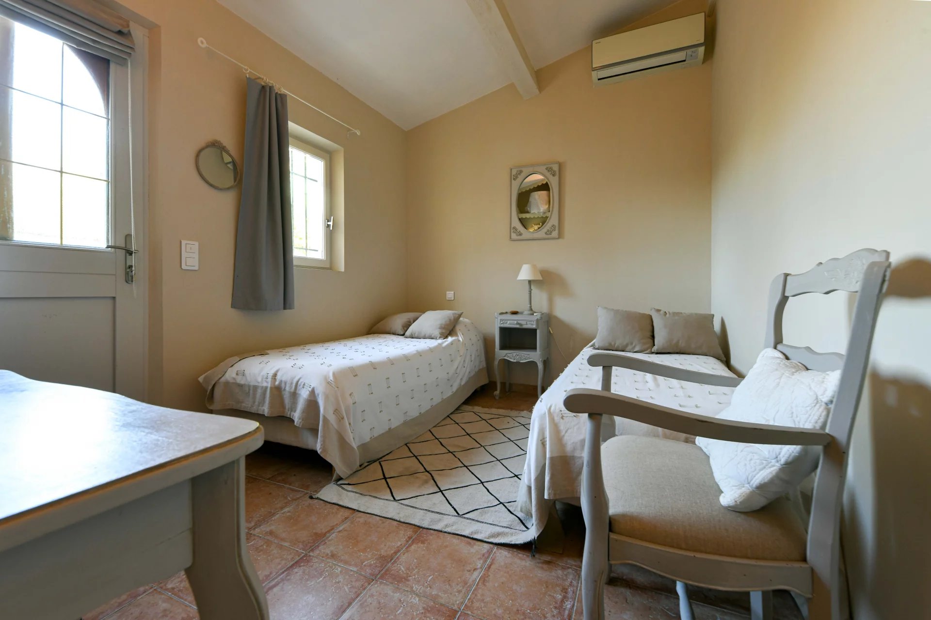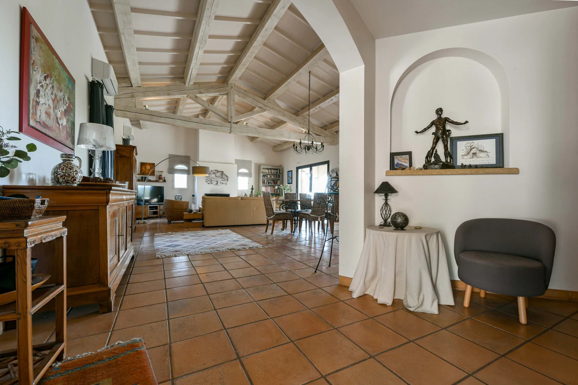 Superbe pièce de réception de 63 m² ouverte sur terrasse et piscine 4 chambres, 2 bureaux, 3 salles de bains Appartement d’invités (salon, kitchenette, chambre et salle de bains) Très beau terrain, vues sur le Pont du Gard, double garage, atelier