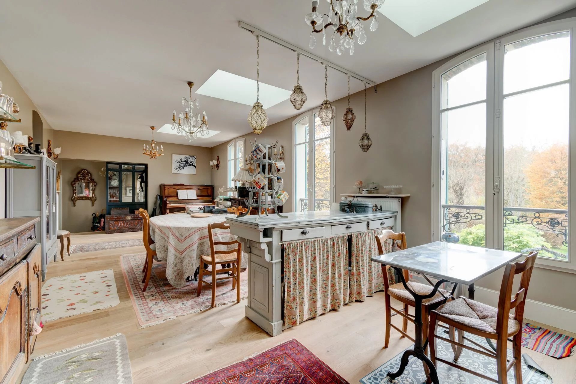 Cette belle meulière de 290 m² (260 m² habitables) se compose: