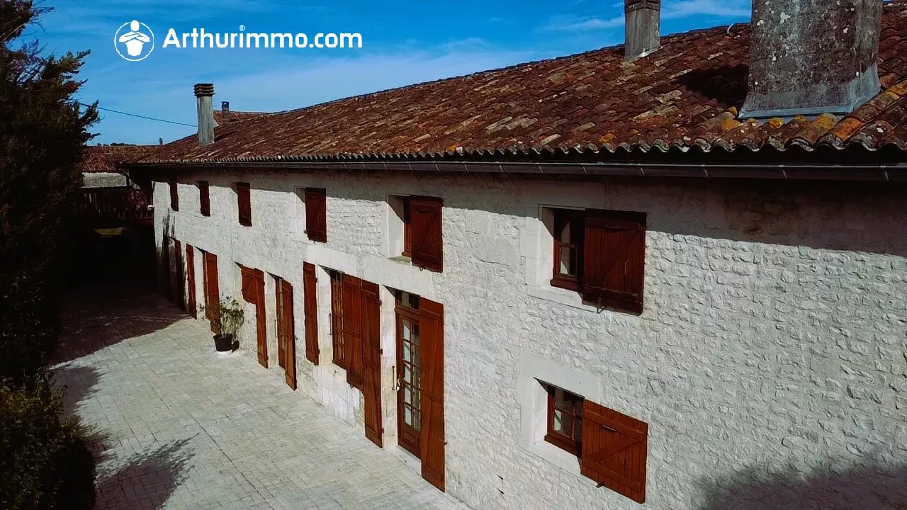 Authentique longère charentaise aux matériaux nobles. Située à 10 minutes d'Aulnay, elle se compose d'une cuisine équipée, arrière-cuisine, salle d'eau, WC, grand bureau ou chambre avec sa cheminée du XIV Siècle et une grande pièce de vie de 72 m2. A l'étage, le palier dessert quatre chambres, dont deux mansardées avec une superficie au sol de 15 m2, une salle de bain avec WC. Côté séjour, un bel escalier dessert une mezzanine, une salle de jeux ou chambre et son balcon. Jardin clos et arboré (piscinable) - Portail électrique - Four à pain - Puits - Barbecue - Terrasse couverte - Garage - Abri jardin - Maison exposée Ouest/Sud-Ouest - Chauffage fioul - Double vitrage bois - Parcelle de 1210 m2. Infos et visites : contactez Yoann au 06 76 51 43 33