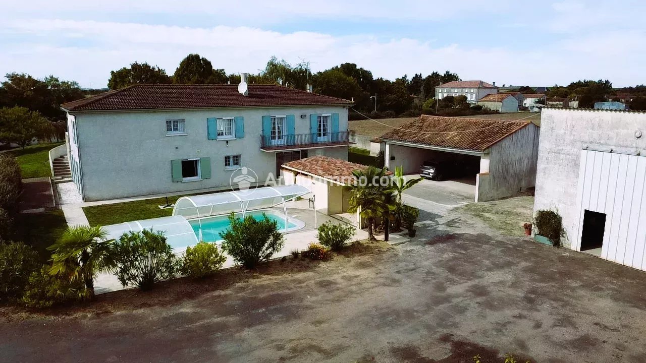 Villa située à 5 km d'Aulnay, d'environ 266 m2 habitables avec piscine, érigée sur une parcelle d'une contenance de 3 106 m2. La maison propose une très grande pièce de vie répartie en 3 espaces - salon, salle à manger et cuisine - pour une surface de plus de 100 m2. Un bureau ou chambre de 11 m2, une salle de bain (baignoire + douche) de 8 m2, deux chambres avec placards (14 et 15 m2), 2 WC séparés, buanderie de 7 m2. Au rez-de-jardin on retrouve : 3 chambres (2 x 18 et 21 m2) dont une avec sa salle d'eau et WC, une autre salle d'eau, WC séparé. Une pièce de vie de près de 30 m2. De plus, le rez-de-jardin propose un sauna (12 m2), une salle de sport et jeux (63 m2), une cave. Il est possible d'imaginer un appartement indépendant au rez-de-jardin (pièce de vie, salle d'eau/WC et 2 chambres). Terrasse avec pergola (75 m2) - Double vitrage PVC avec volets roulants électriques Bubendorff - Terrain entièrement clos - Piscine 10*4 couverte - Grand abri voiture (78 m2) - Portail électrique - Arbres fruitiers - Grand garage et atelier (160 m2) - Cumulus neuf (2024) - Pompe à chaleur air/eau - Assainissement individuel conforme. Infos et visites : contactez Yoann au 06 76 51 43 33