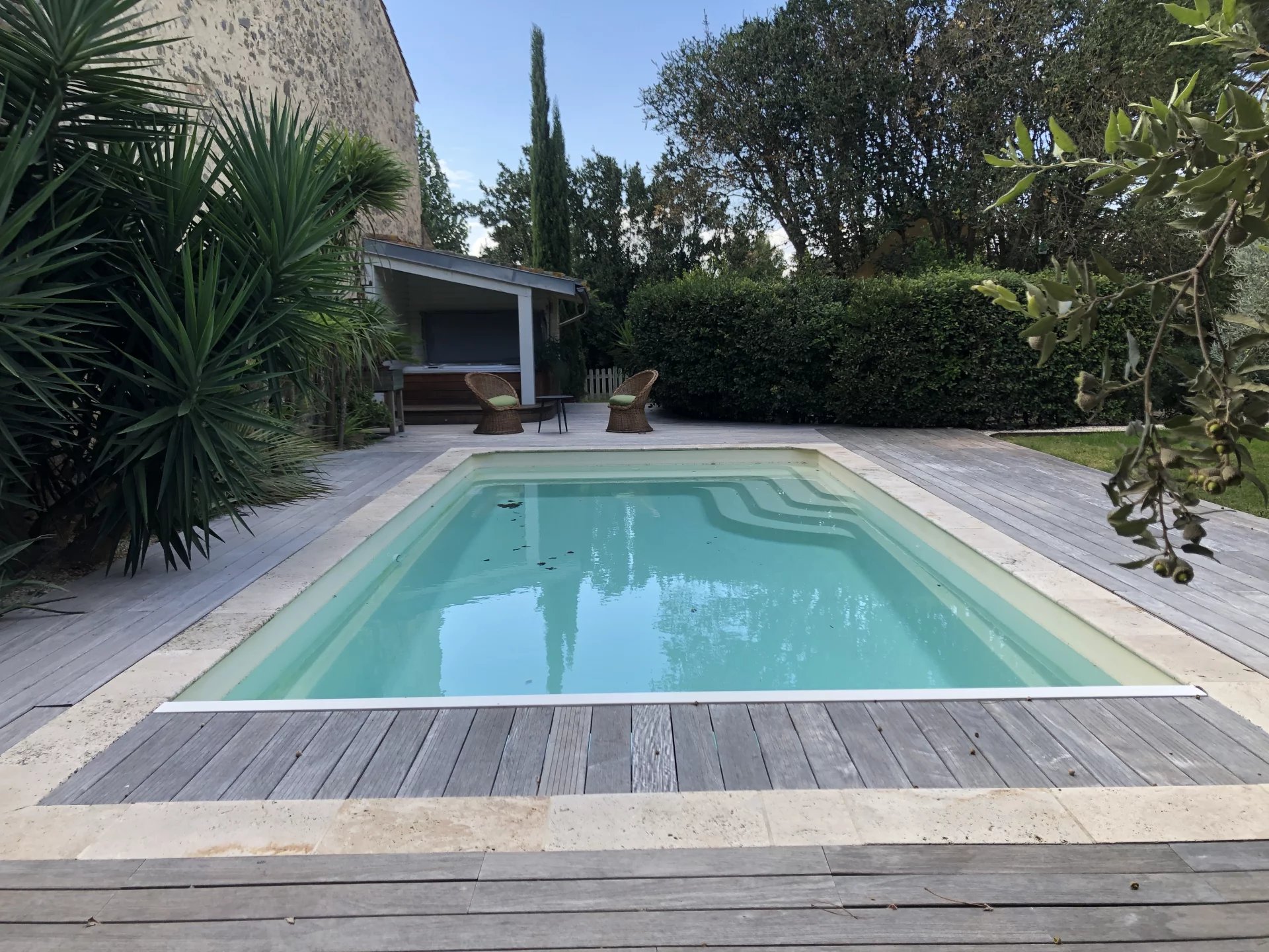 Magnifique propriété nichée au cœur du Languedoc, alliant à la perfection charme, caractère et art de vivre méditerranéen. Cette charmante propriété a été aménagée avec le plus grand soin et une attention particulière aux détails. Au rez-de-chaussée, vous entrez dans le hall d'entrée, puis vous accédez à un grand salon avec cheminée à insert au fond et à une bibliothèque à l'autre. À droite, vous trouverez la salle à manger et le bureau, avec une porte donnant sur la terrasse. Juste en face du séjour, vous trouverez une cuisine entièrement équipée avec une cuisinière haut de gamme. De là, quelques marches descendent vers l'arrière-cuisine/cellier, puis le garage avec buanderie, chaufferie et un escalier de service menant à la suite parentale. L'escalier principal monte depuis le hall d'entrée. Au premier étage, vous disposez de quatre chambres, dont deux avec salles de bains attenantes et deux avec salles d'eau attenantes. Au fond du couloir, vous trouverez la suite parentale avec chambre, salle d'eau, dressing et salle de bains, ainsi qu'une porte menant à l'escalier de service. À cet étage se trouvent également un bureau et l'escalier menant au grenier, composé de deux pièces mansardées. Extérieur Depuis la cuisine, vous accédez à la terrasse latérale en bois d'ipé, où se trouve également l'espace cuisine/bar extérieur. Le jardin et l'allée, magnifiquement entretenus, mènent à un autre espace salon couvert sous les arbres, à la piscine, au jacuzzi et à un autre espace salon couvert. Une véritable oasis. Localisation Castelnau d’Aude est un charmant village des Corbières-Minervois. Un livreur en camionnette livre le pain trois jours par semaine. Les commerces les plus proches se trouvent à La Redorte, sur le Canal du Midi. Lézignan-Corbiers est à environ 10 km, où vous trouverez tous les commerces et la gare. Carcassonne est à 30 km, l'aéroport à 40 km et les plages de Narbonne à 48 km.