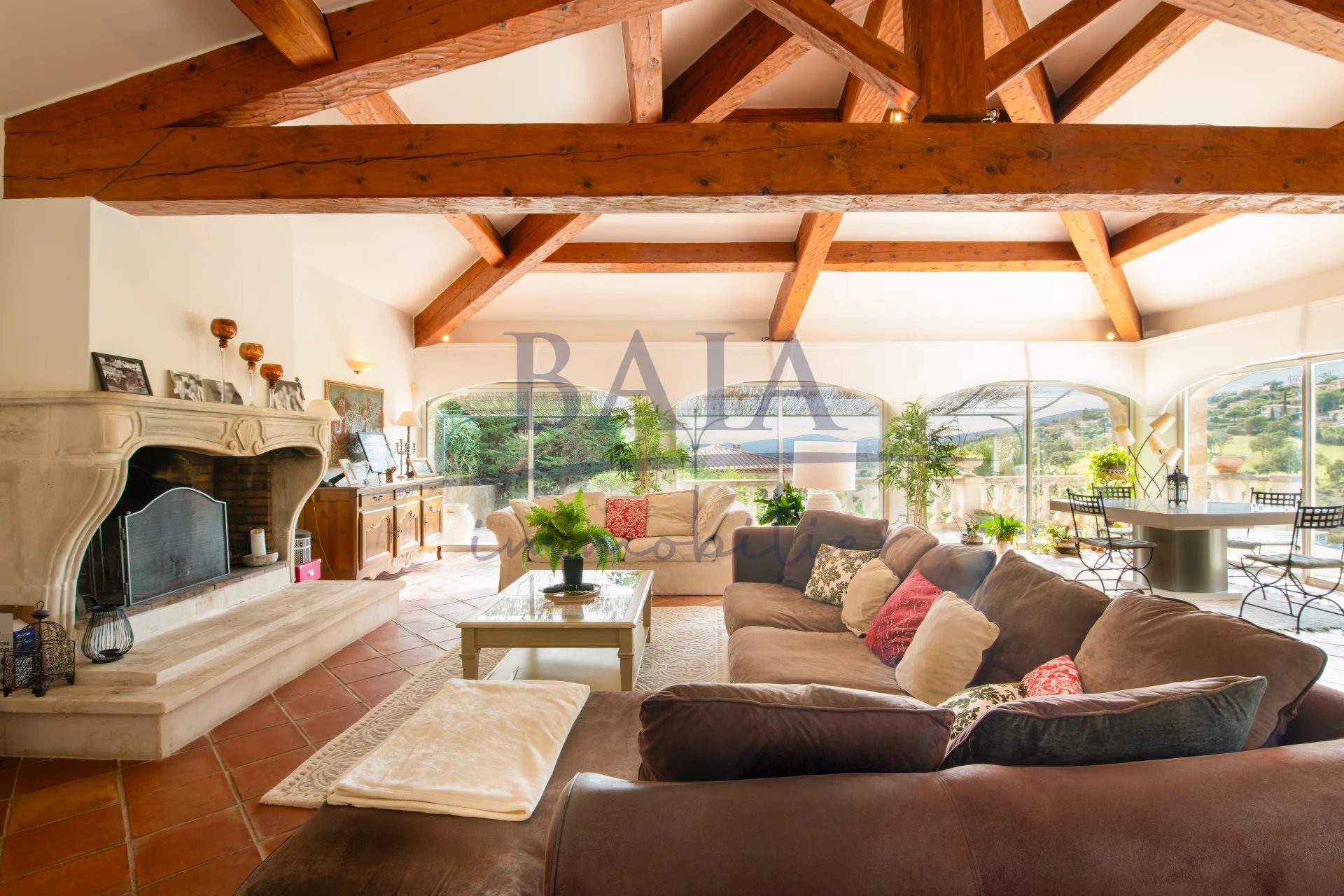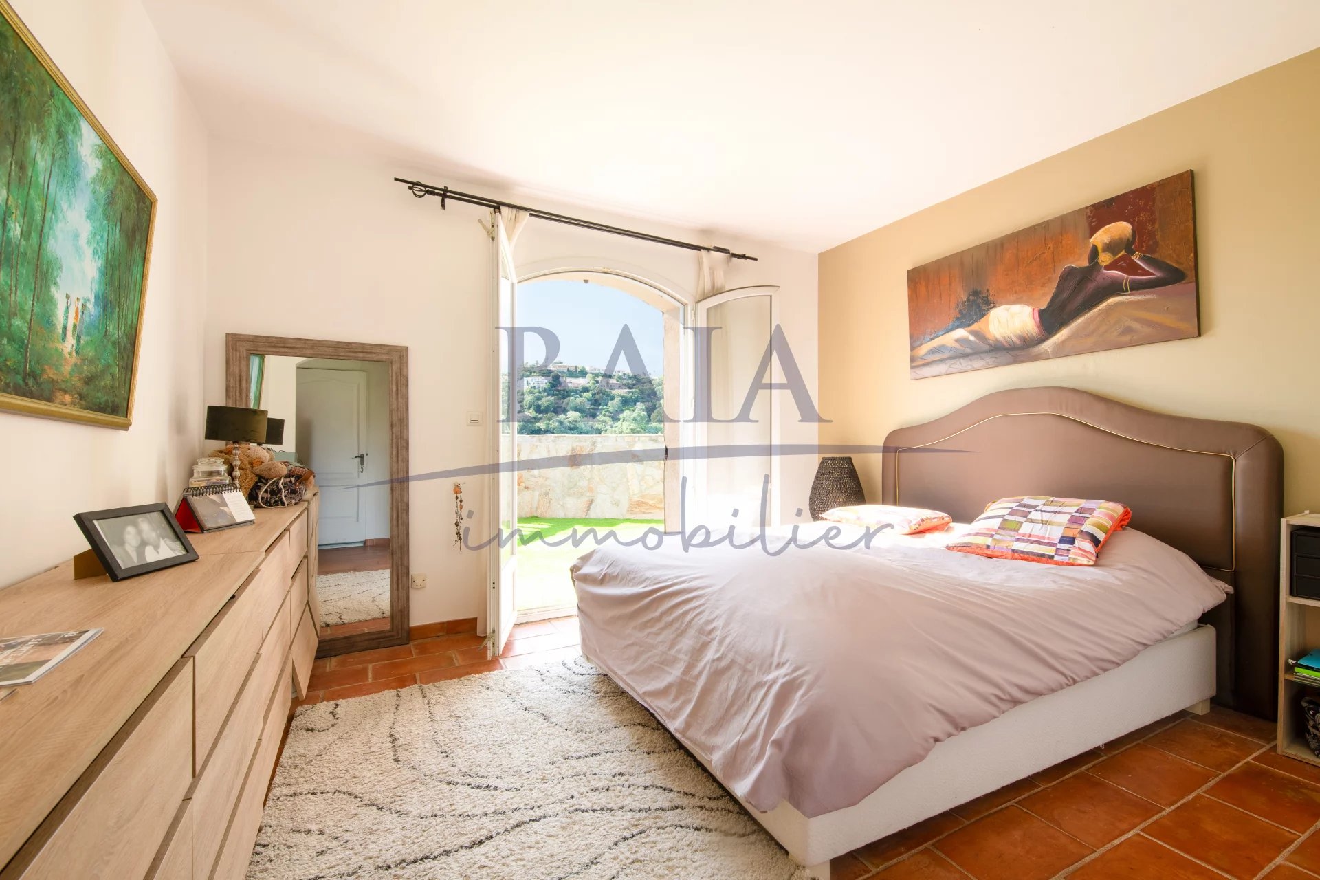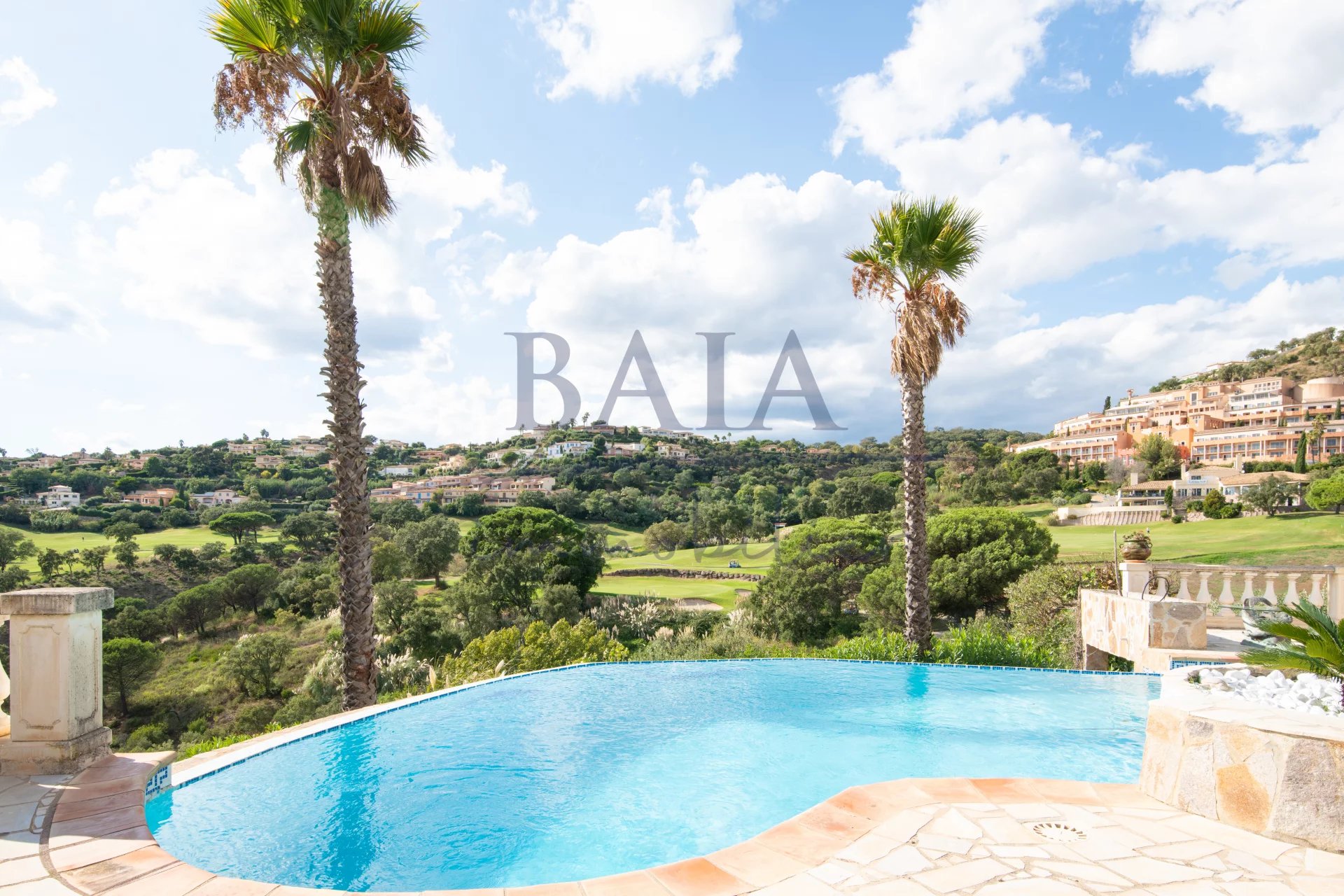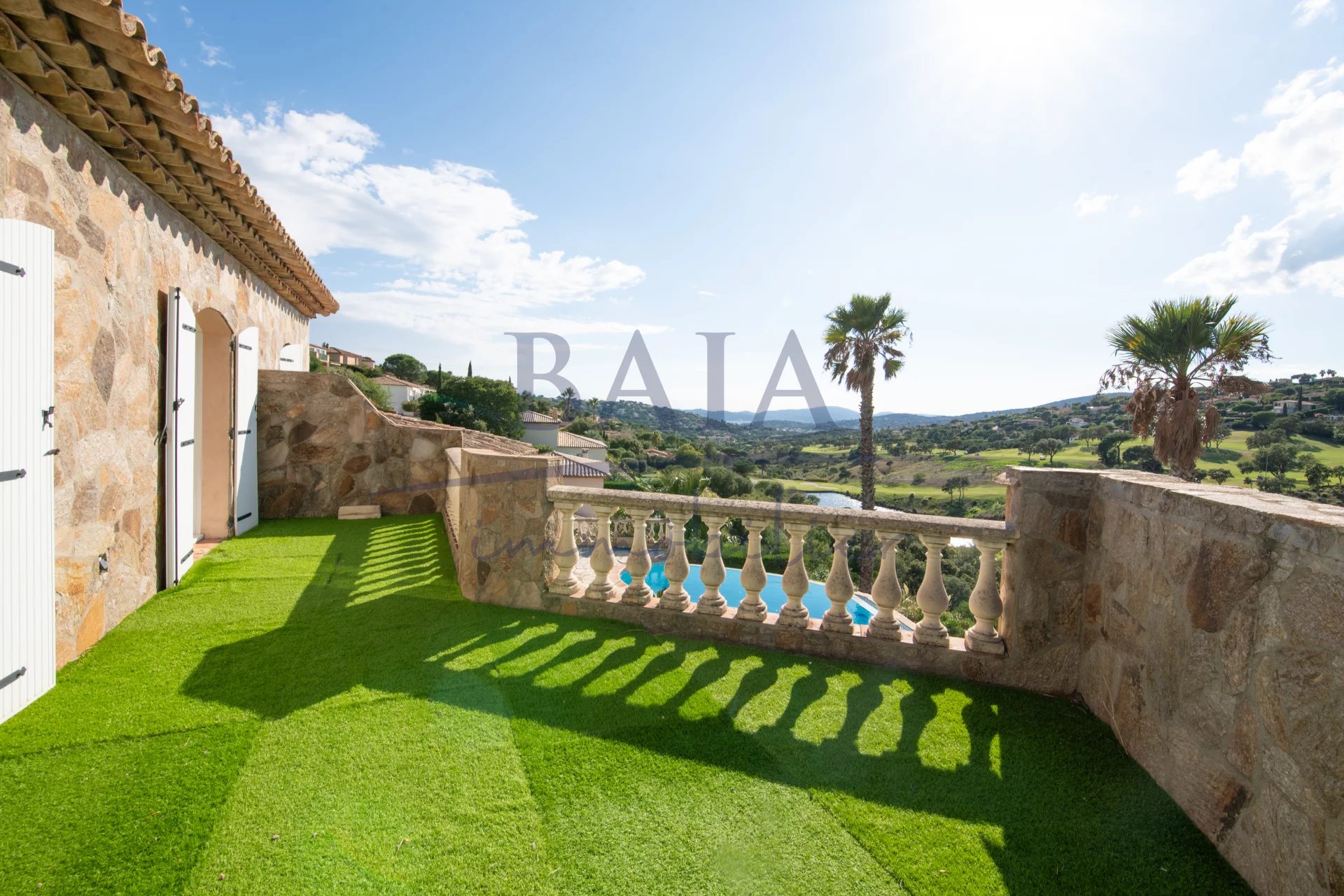 En exclusivité chez BAIA IMMOBILIER, Sur un terrain paysager de 1 681 m², découvrez cette magnifique villa en pierre de 180 m² habitables, située dans un quartier résidentiel recherché, à proximité des plages de La Nartelle et du centre-ville de Sainte-Maxime. Son emplacement privilégié, face au golf 18 trous de Sainte-Maxime, offre une vue dégagée exceptionnelle et un cadre de vie paisible, idéal en résidence principale comme secondaire. La villa se compose comme suit : *Étage principal: * Entrée, * Deux chambres, * Une salle de douche, * WC invité, * Une suite parentale avec salle de bains (baignoire et douche), dressing et terrasse privative avec vue. *Niveau inférieur : * Vaste séjour lumineux d’environ 60 m² avec de grandes baies vitrées ouvrant sur la terrasse et la vue, * Salle à manger, * Cuisine provençale, * WC invité, * Buanderie, * Une suite parentale de plain-pied avec salle d’eau et dressing. Extérieurs : * Grande terrasse, * Superbe piscine à débordement, * Garage, espace de rangement et atelier. Cette villa de caractère allie cachet, volumes généreux et prestations de qualité. Une opportunité rare pour les amateurs de golf. 📞 Plus d’informations et visite sur demande.