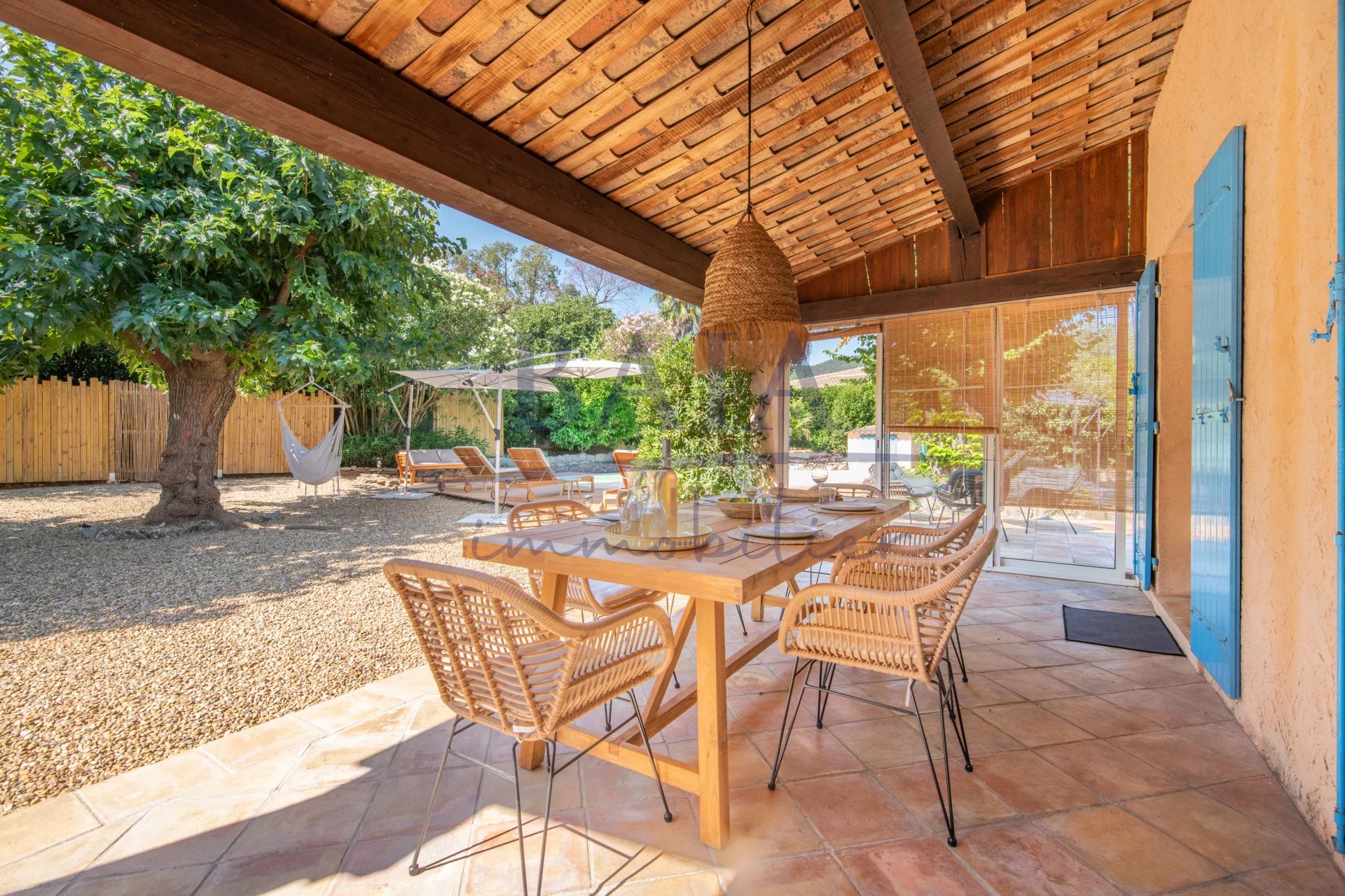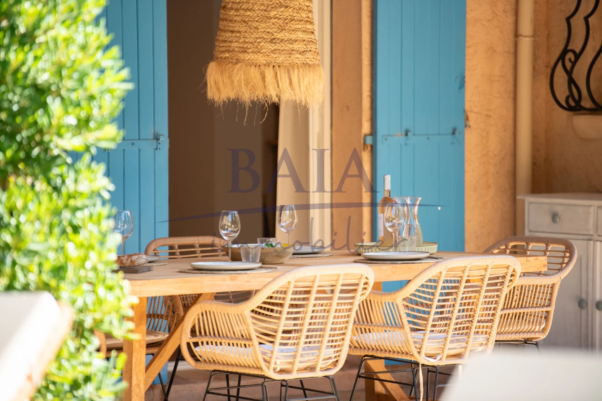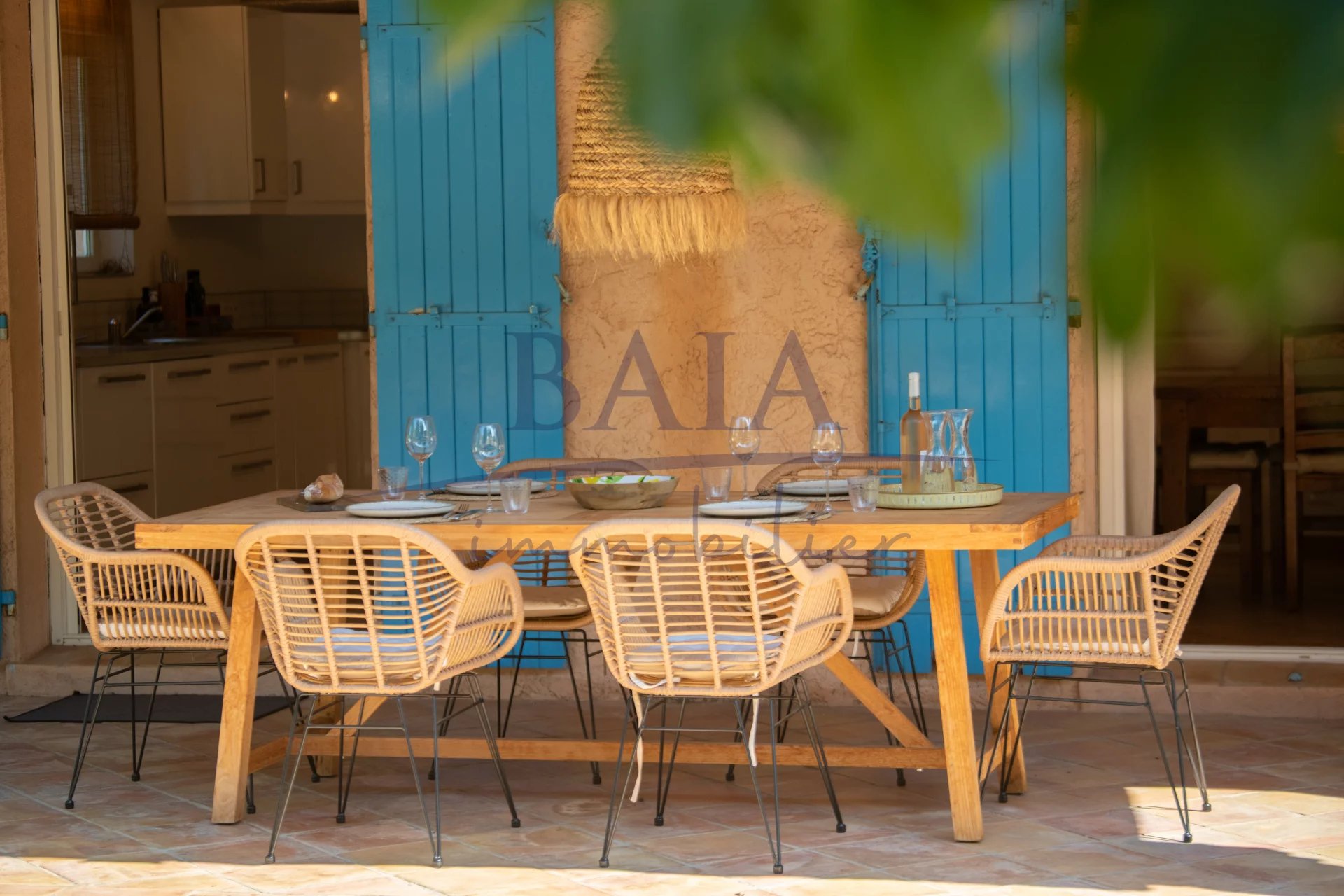 🌴 Villa de charme avec piscine – Plan-de-la-Tour (Var) 🌴 Offrez-vous des vacances de rêve dans le pittoresque village du Plan-de-la-Tour, idéalement situé entre Saint-Tropez et Sainte-Maxime. ✨ La villa Nichée au cœur d’un magnifique jardin arboré, cette villa décorée dans un esprit bohème chic vous propose tout le confort nécessaire pour un séjour inoubliable : • 3 chambres doubles climatisées • 2 salles de bain • Cuisine équipée & spacieux salon lumineux • Wi-Fi inclus ☀️ Extérieur Profitez d’une superbe piscine entourée de transats en bois pour vos moments de détente, d’un agréable salon de jardin pour partager des repas en plein air, ainsi qu’un barbecue pour vos soirées conviviales. Un espace de stationnement privé est également à votre disposition. 📍 Localisation Le Plan-de-la-Tour est un charmant village provençal offrant calme et authenticité, tout en étant à quelques minutes seulement de l’animation de Saint-Tropez et des plages de Sainte-Maxime. 🏡 Un lieu idéal pour des vacances en famille ou entre amis, alliant confort, charme et authenticité. 83094000508QV