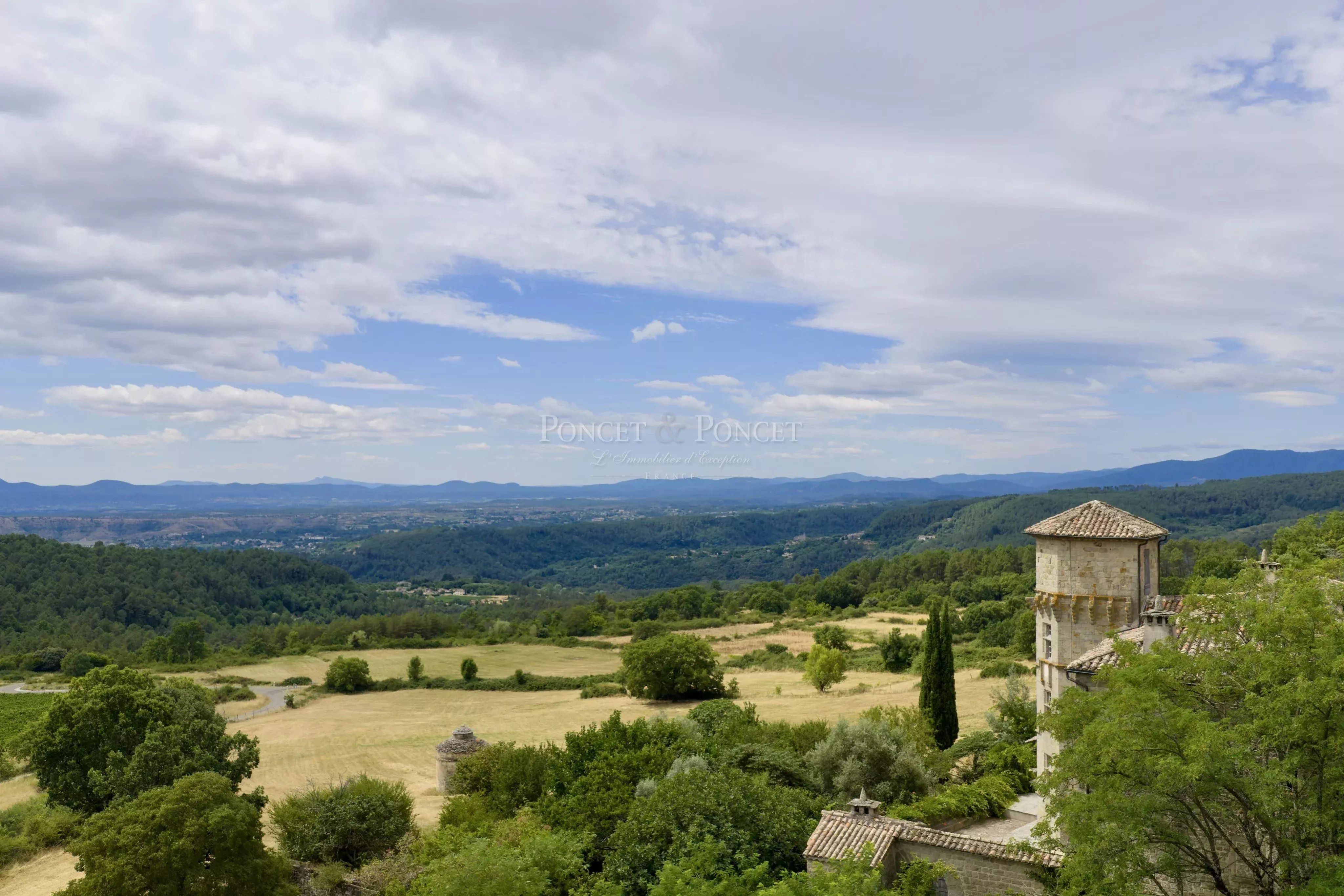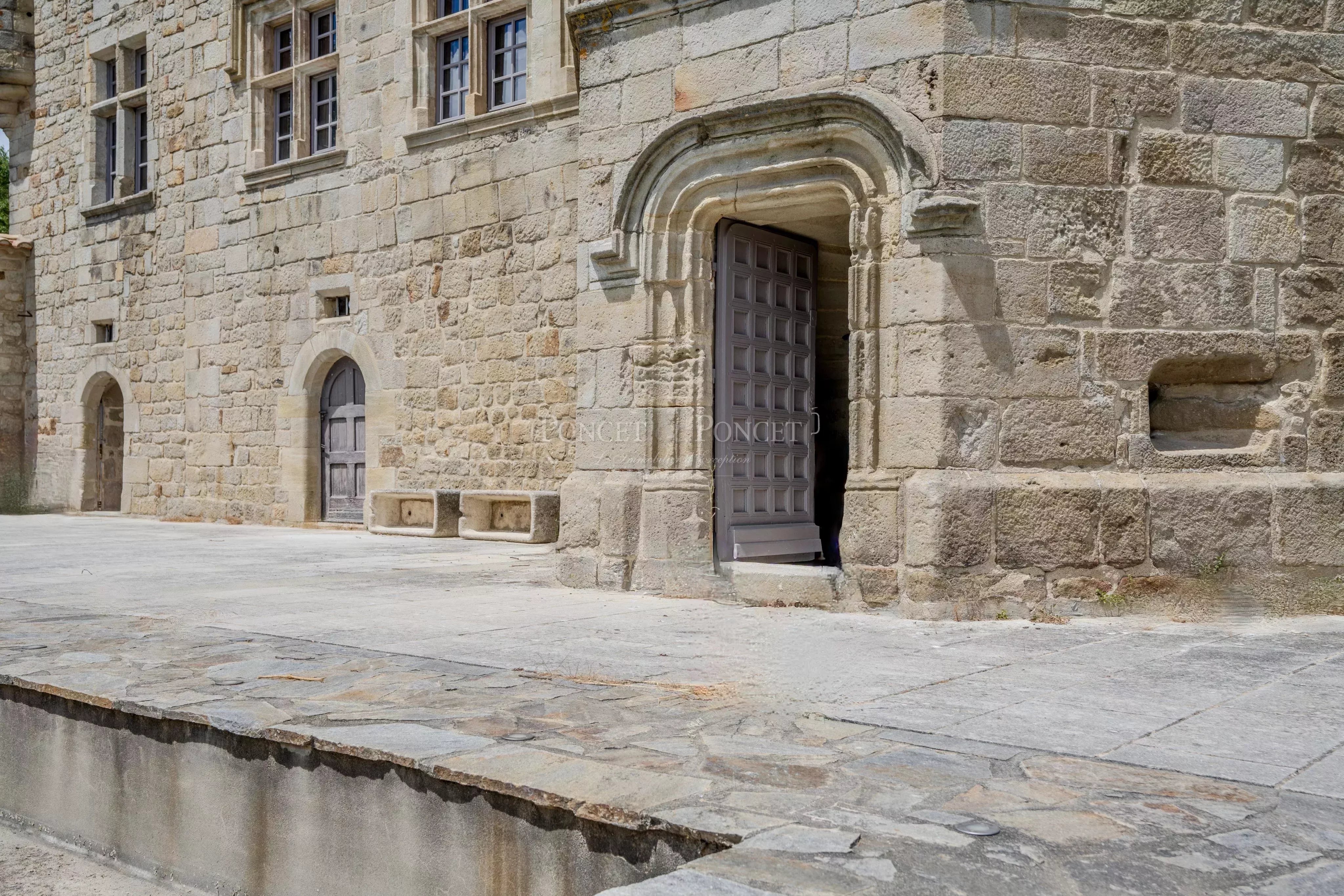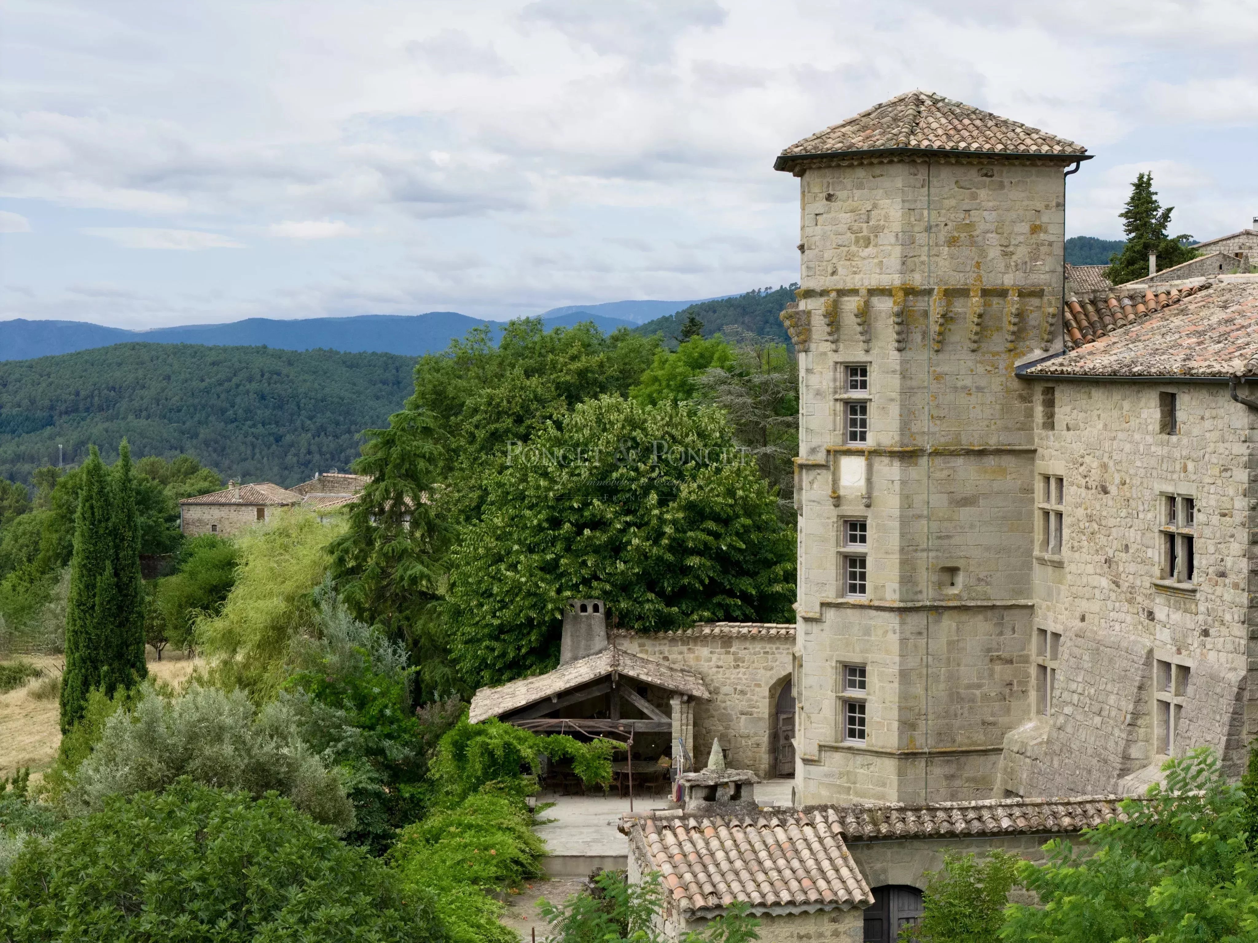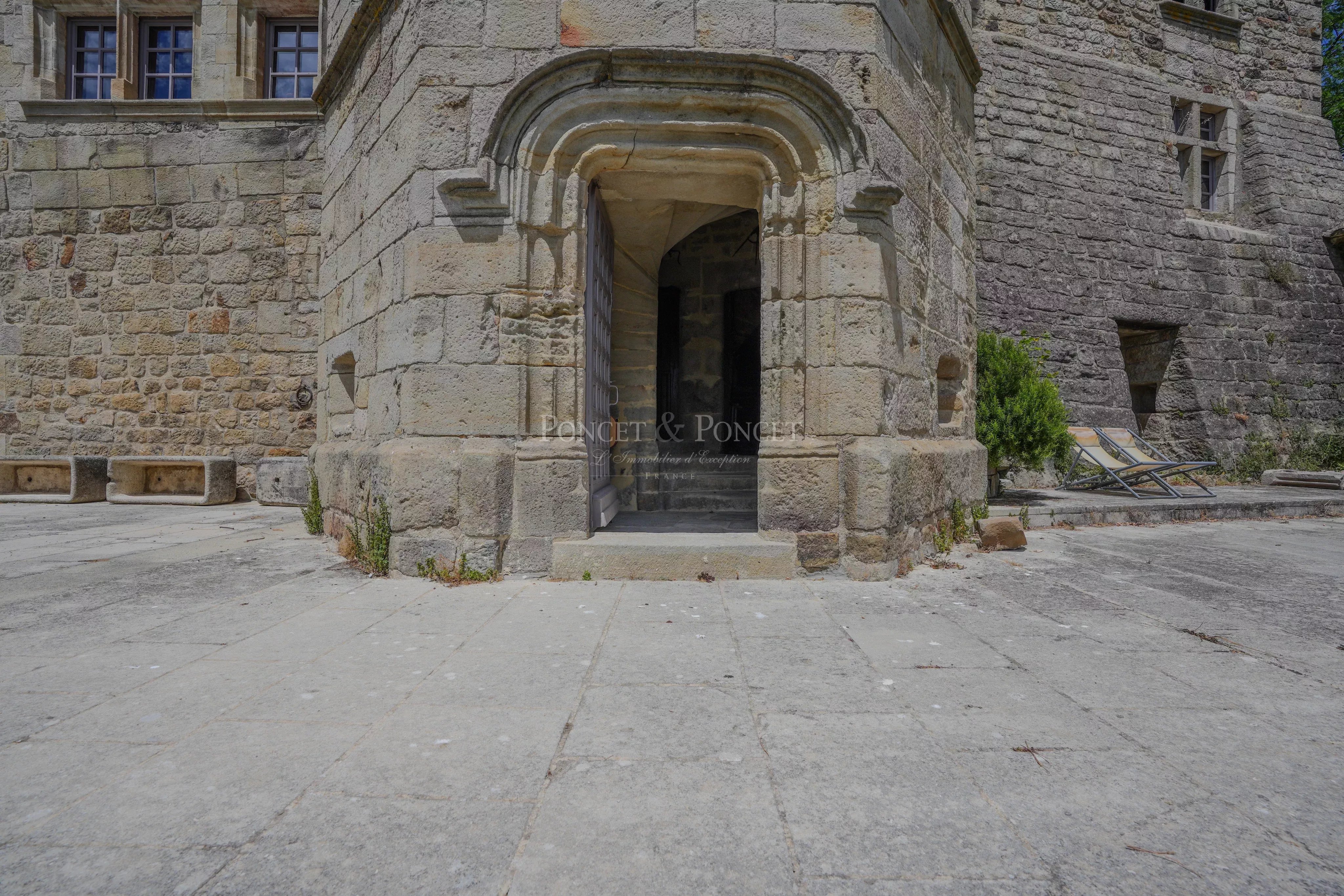 À seulement 6 km des commodités, le château est situé sur une commune au cœur de la Basse Ardèche, déjà méridionale par son climat et ses paysages. Cette région paisible, en lisière des Cévennes, offre un cadre naturel rare, entre forêts, plaines et vignobles, le tout baigné de lumière méditerranéenne. Le domaine, d’un seul tenant, s’étend sur 19,3 hectares, offrant un cadre préservé et une grande quiétude. Ce château Renaissance, dont l’origine remonte au XIVe siècle, a été transformé dès la fin du XVe siècle en véritable château de plaisance, avec sa façade largement ouverte au midi et ses nombreuses fenêtres à meneaux croisés, aux volets intérieurs en bois ainsi qu’une tour en encorbellement à l’ouest. Sa tour octogonale centrale abrite un escalier à vis confiant une élégance rare à l’ensemble. L’édifice est partiellement inscrit à l’Inventaire Supplémentaire des Monuments Historiques (ISMH). Avec 550 m² bâtis, dont 400 m² habitables, le château propose : - Un grand salon avec un plafond aux poutres apparentes et sa bibliothèque attenante ainsi que deux autres salons d’apparat. - Deux cuisines, dont une cuisine d’été voûtée au rez-de-chaussée, récemment aménagée, ainsi que la cuisine principale avec salle à manger attenante. - Sept chambres, dont une suite principale parquetée façon Versailles avec antichambre. - Quatre magnifiques cheminées, sols en pierre, parfeuilles et parquets anciens. - Un second accès par une passerelle en pierre reliant le deuxième étage à un parking privé sur les terres du domaine. - Quatre caves voûtées et des combles en partie aménageables aisément complètent le tout. L'aménagement intérieur offre la possibilité de disposer d’un appartement privé, comprenant un salon avec cuisine ouverte et cheminée, une chambre, une salle d’eau, des toilettes et une buanderie. Idéal pour recevoir des hôtes en toute intimité ou loger un gardien. L’extérieur est tout aussi remarquable : trois vastes terrasses à l’italienne, successives et À LA VUE panoramiques, dont la première abrite un espace couvert avec barbecue, un ancien four à pain et un bassin à remettre en eau. Sur les terres, un magnifique colombier/pigeonnier d’époque vient rappeler l’histoire et l’authenticité du lieu. La vue panoramique sur la plaine des Cévennes, plein sud, est tout simplement spectaculaire ! Notre avis : Ce château est sans équivalent dans la région : une demeure de caractère, d’une rare authenticité, soigneusement restaurée avec un niveau de confort moderne exemplaire. On y perçoit clairement l’influence Renaissance dans l’élégance de son architecture, tout en profitant de belles prestations dans un environnement naturel d’exception. Un bien destiné aux amateurs de patrimoine, souhaitant une résidence principale ou secondaire quasi clé en main, avec une forte valeur patrimoniale et un environnement préservé, calme et inspirant.