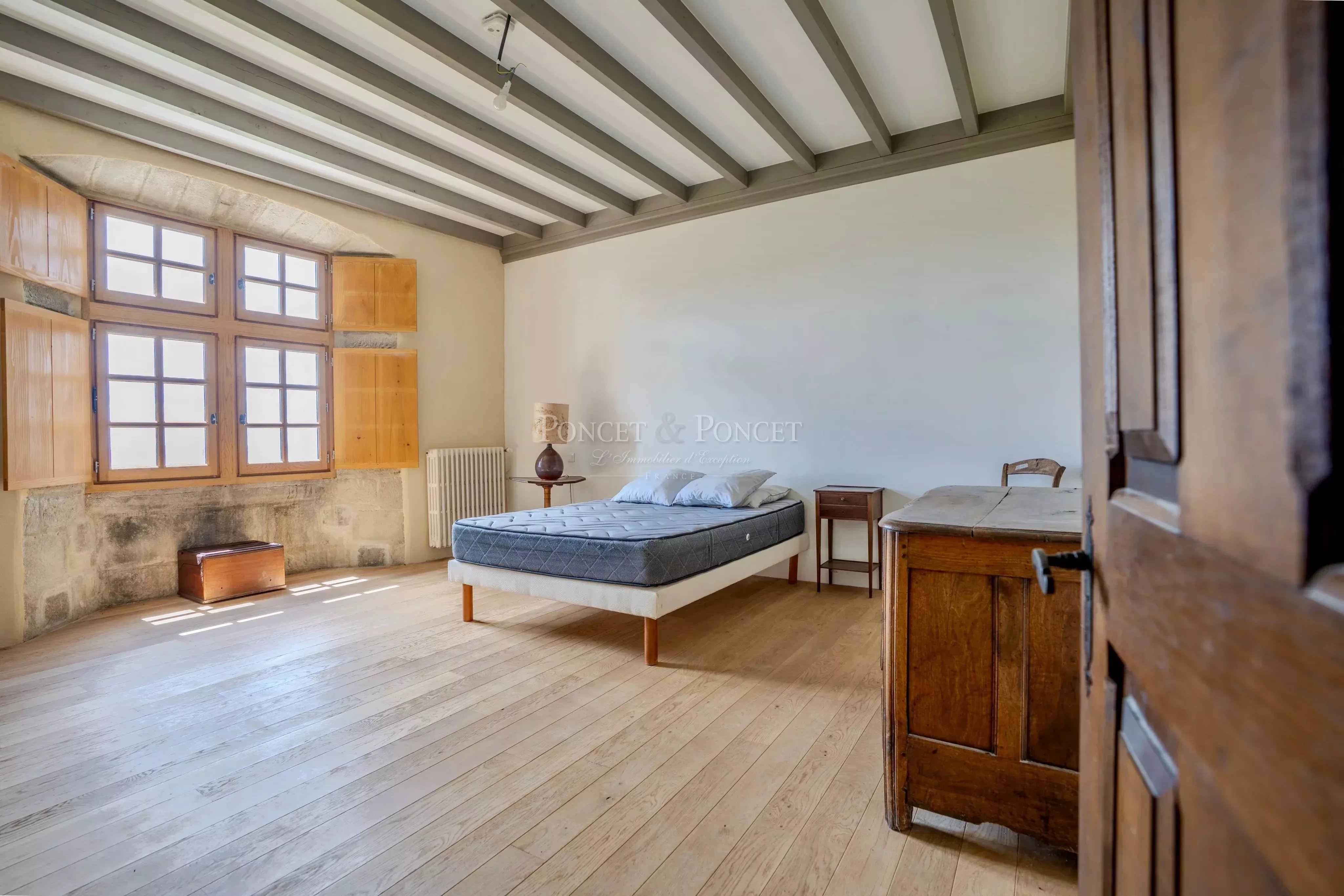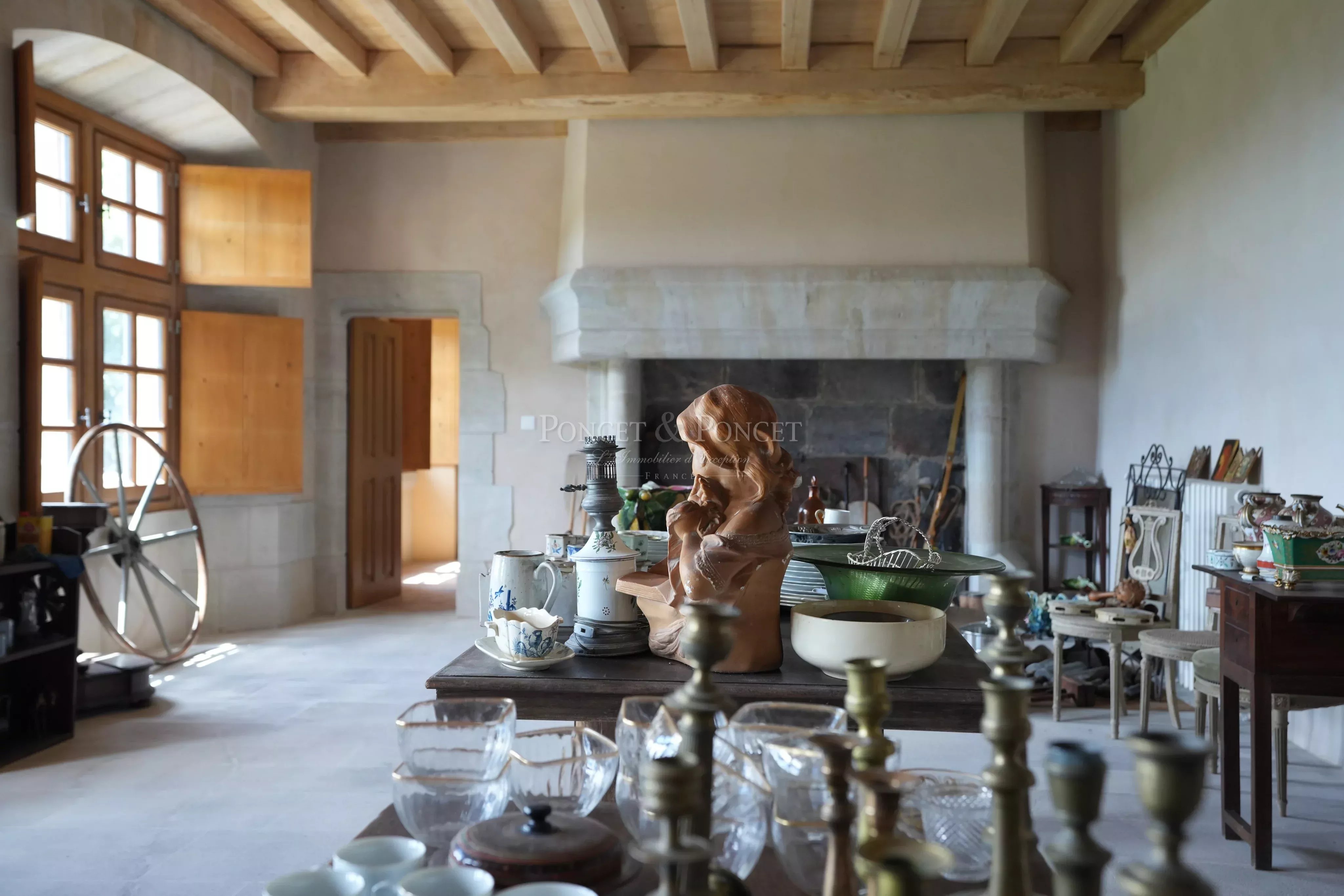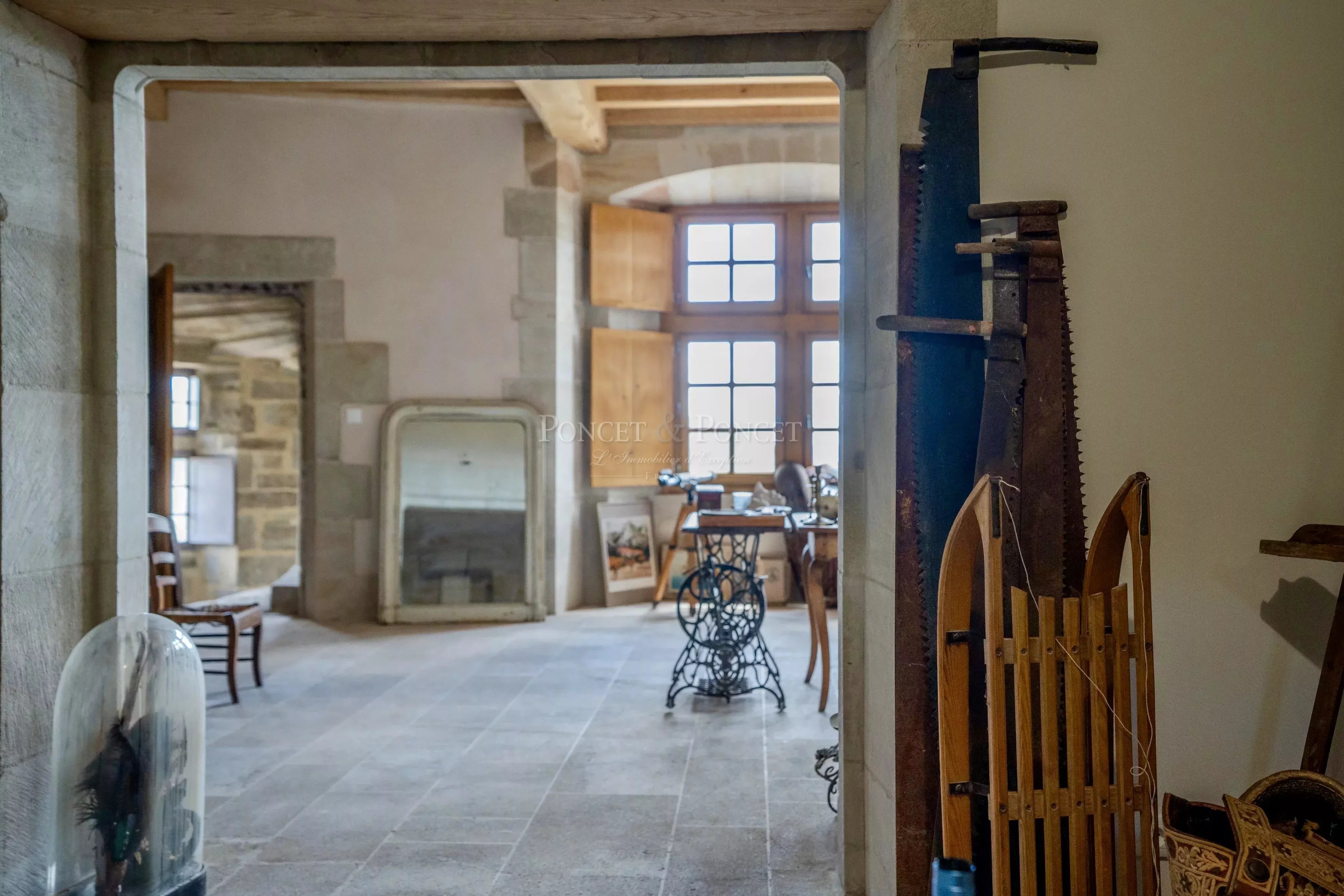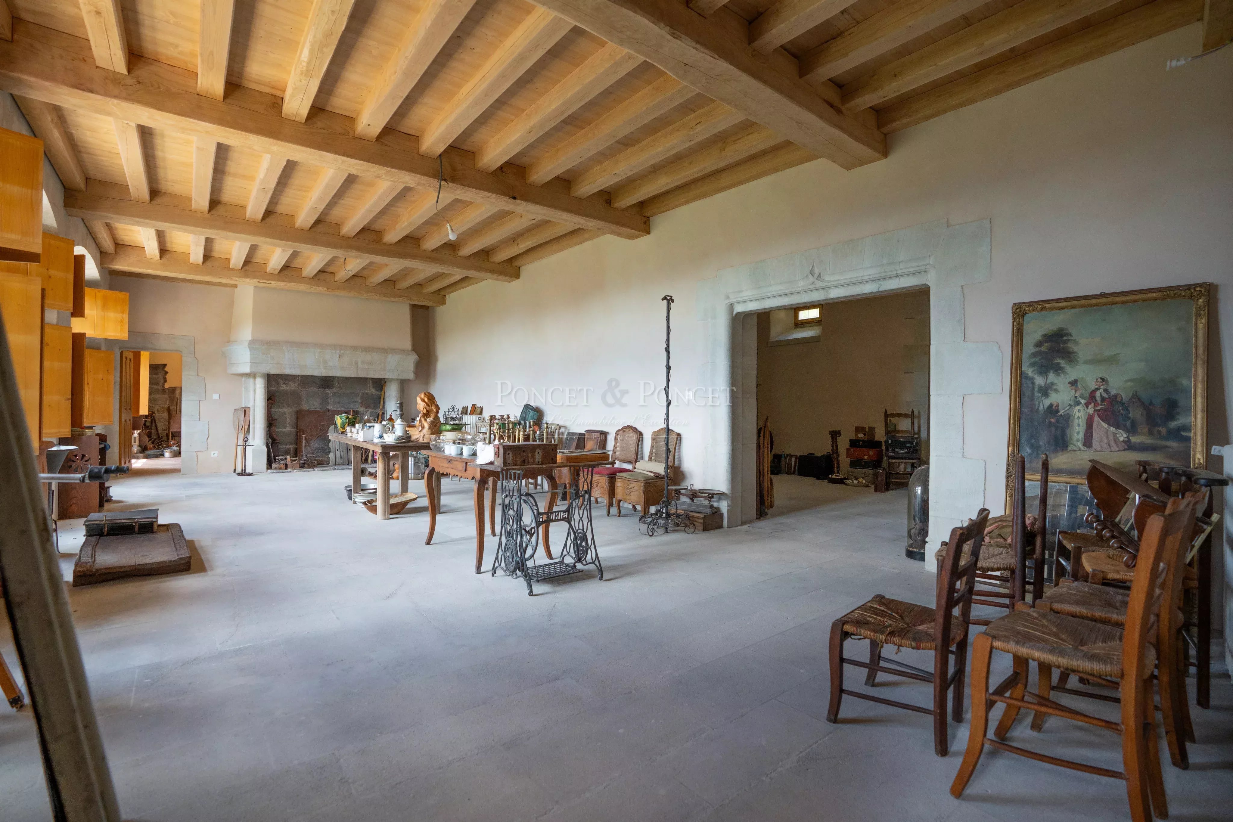 À seulement 6 km des commodités, le château est situé sur une commune au cœur de la Basse Ardèche, déjà méridionale par son climat et ses paysages. Cette région paisible, en lisière des Cévennes, offre un cadre naturel rare, entre forêts, plaines et vignobles, le tout baigné de lumière méditerranéenne. Le domaine, d’un seul tenant, s’étend sur 19,3 hectares, offrant un cadre préservé et une grande quiétude. Ce château Renaissance, dont l’origine remonte au XIVe siècle, a été transformé dès la fin du XVe siècle en véritable château de plaisance, avec sa façade largement ouverte au midi et ses nombreuses fenêtres à meneaux croisés, aux volets intérieurs en bois ainsi qu’une tour en encorbellement à l’ouest. Sa tour octogonale centrale abrite un escalier à vis confiant une élégance rare à l’ensemble. L’édifice est partiellement inscrit à l’Inventaire Supplémentaire des Monuments Historiques (ISMH). Avec 550 m² bâtis, dont 400 m² habitables, le château propose : - Un grand salon avec un plafond aux poutres apparentes et sa bibliothèque attenante ainsi que deux autres salons d’apparat. - Deux cuisines, dont une cuisine d’été voûtée au rez-de-chaussée, récemment aménagée, ainsi que la cuisine principale avec salle à manger attenante. - Sept chambres, dont une suite principale parquetée façon Versailles avec antichambre. - Quatre magnifiques cheminées, sols en pierre, parfeuilles et parquets anciens. - Un second accès par une passerelle en pierre reliant le deuxième étage à un parking privé sur les terres du domaine. - Quatre caves voûtées et des combles en partie aménageables aisément complètent le tout. L'aménagement intérieur offre la possibilité de disposer d’un appartement privé, comprenant un salon avec cuisine ouverte et cheminée, une chambre, une salle d’eau, des toilettes et une buanderie. Idéal pour recevoir des hôtes en toute intimité ou loger un gardien. L’extérieur est tout aussi remarquable : trois vastes terrasses à l’italienne, successives et À LA VUE panoramiques, dont la première abrite un espace couvert avec barbecue, un ancien four à pain et un bassin à remettre en eau. Sur les terres, un magnifique colombier/pigeonnier d’époque vient rappeler l’histoire et l’authenticité du lieu. La vue panoramique sur la plaine des Cévennes, plein sud, est tout simplement spectaculaire ! Notre avis : Ce château est sans équivalent dans la région : une demeure de caractère, d’une rare authenticité, soigneusement restaurée avec un niveau de confort moderne exemplaire. On y perçoit clairement l’influence Renaissance dans l’élégance de son architecture, tout en profitant de belles prestations dans un environnement naturel d’exception. Un bien destiné aux amateurs de patrimoine, souhaitant une résidence principale ou secondaire quasi clé en main, avec une forte valeur patrimoniale et un environnement préservé, calme et inspirant.