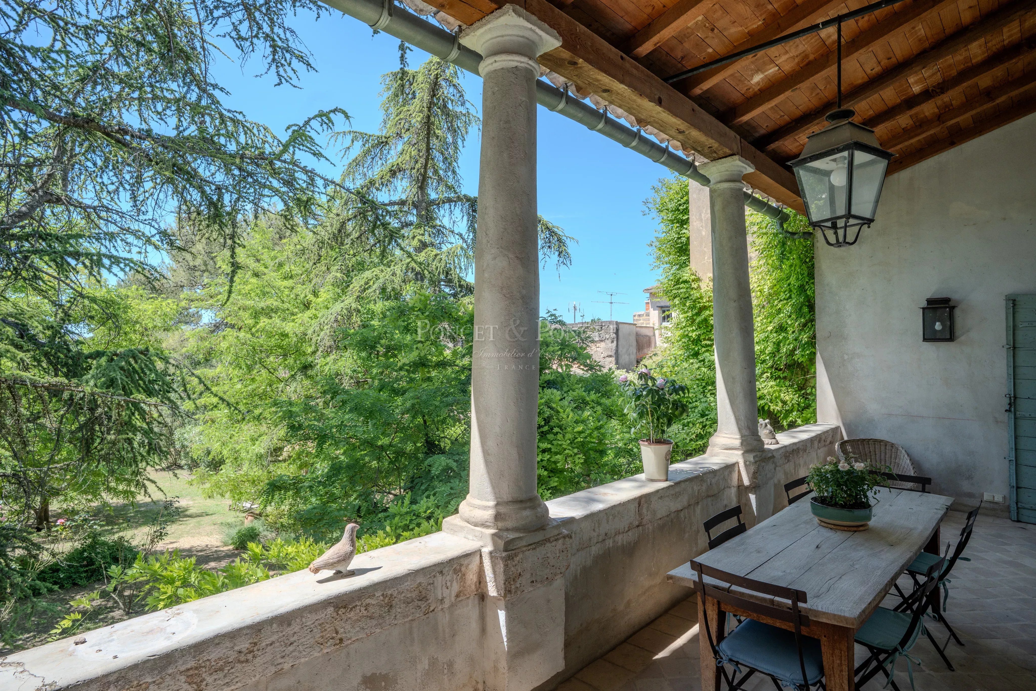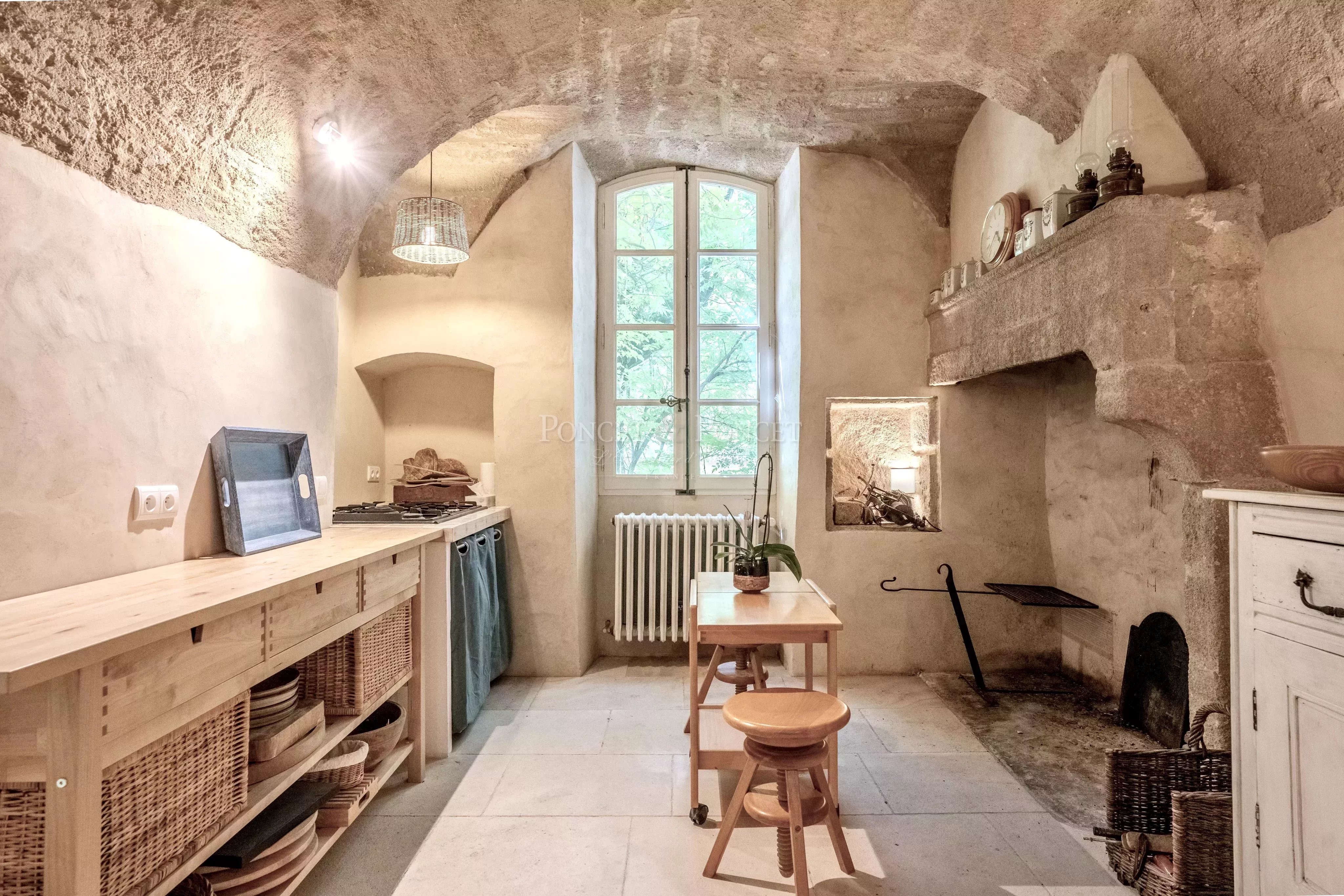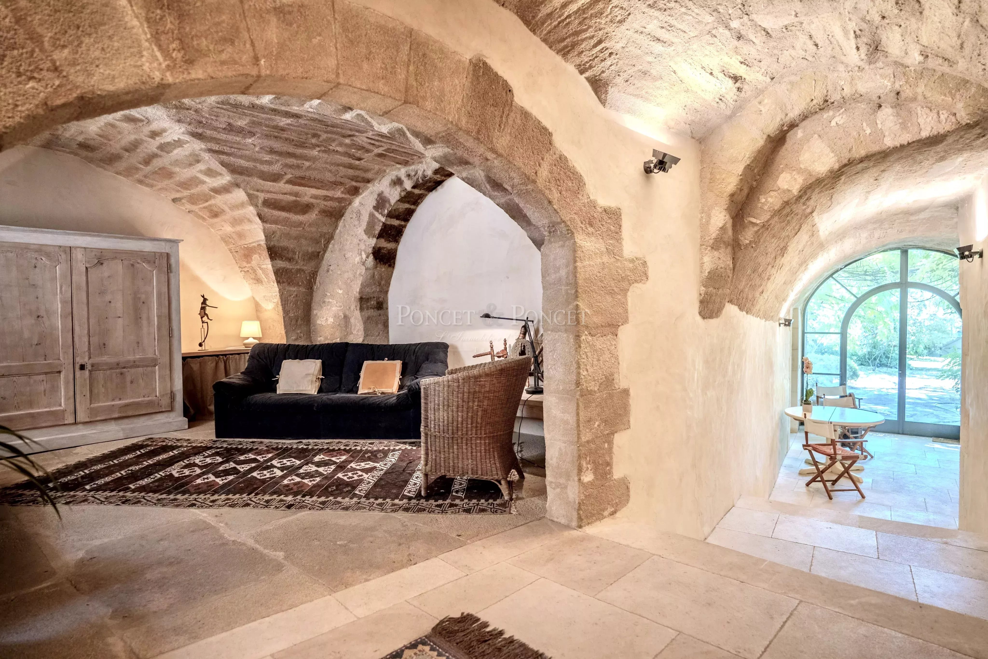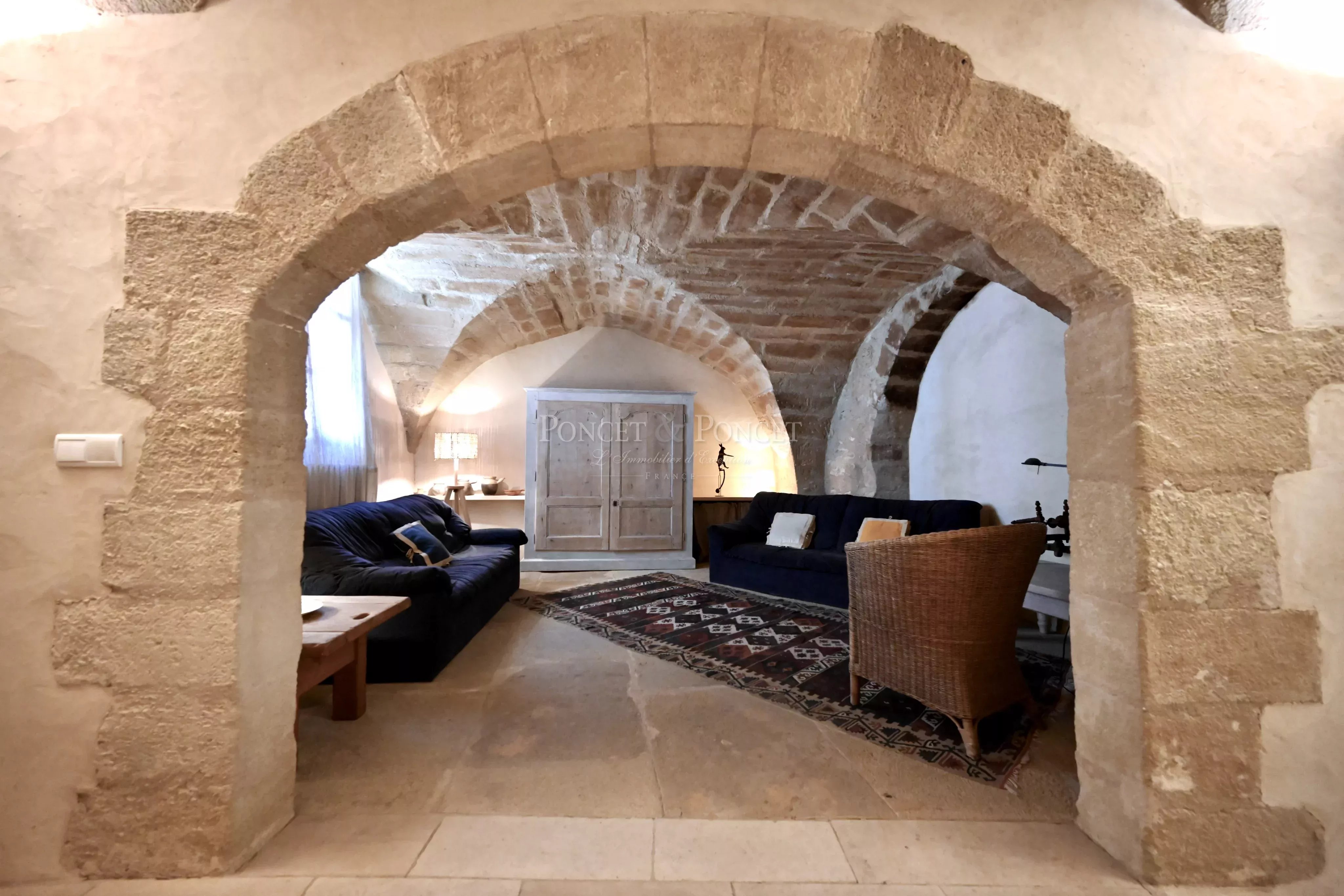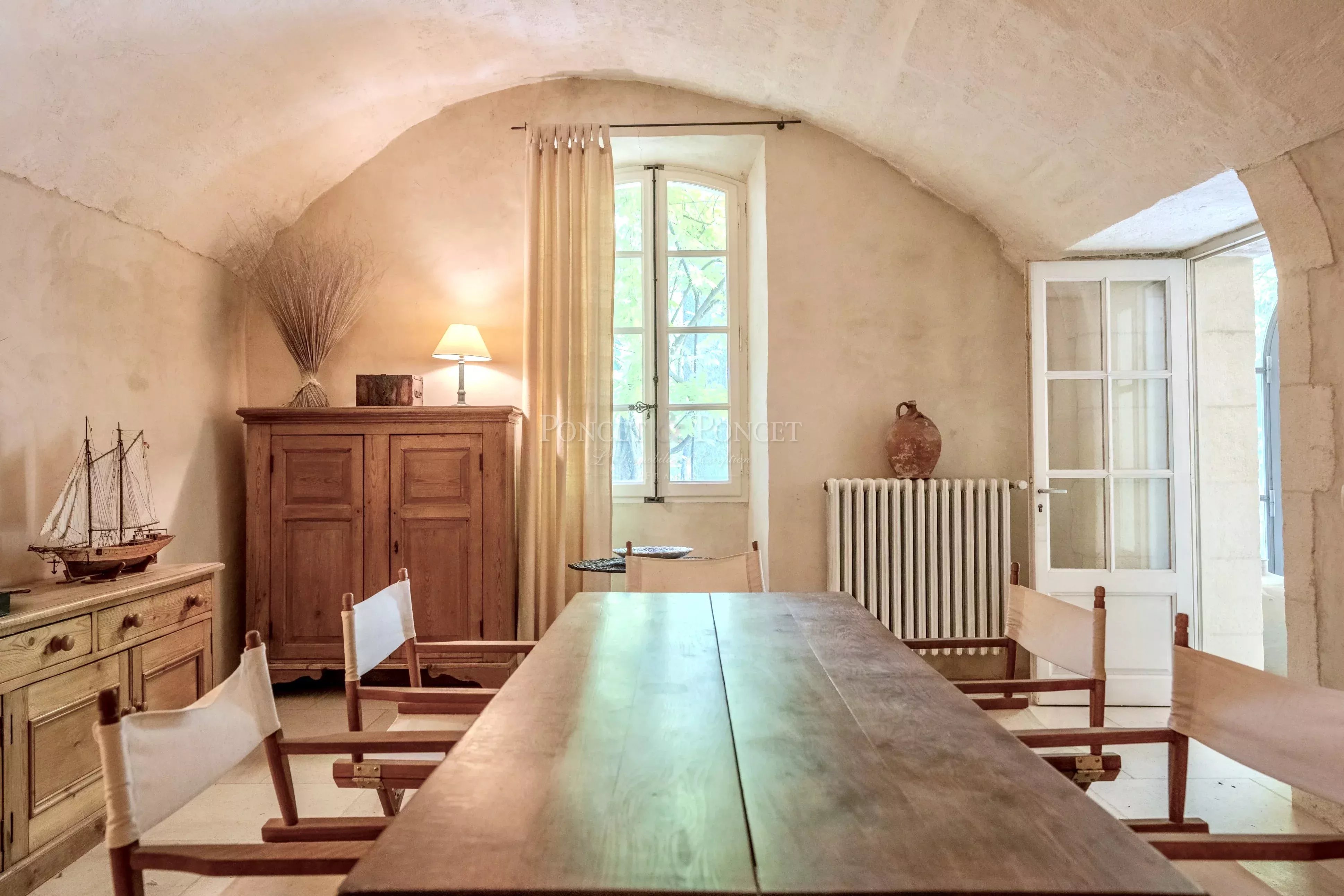 Alliance de charme ancien et de confort contemporain : Il y a des demeures qui ne se contentent pas d’être photographiées : elles se vivent. Chaque pierre, chaque volute, chaque rayon de soleil à l’heure dorée révèle une histoire… Au cœur de ce village prisé, cette maison aux volumes historiques et à l’état irréprochable incarne une élégance intemporelle. Parfaite alliance entre authenticité et raffinement, elle offre la fraîcheur des murs anciens à l’aube, l’éclat doré des façades au crépuscule et la quiétude d’une cour secrète, à l’abri des regards. À seulement 4 kilomètres d’Uzès, dans un village prisé offrant toutes les commodités à pied, cette demeure de caractère restaurée avec un soin absolu conjugue avec élégance authenticité, confort moderne et art de vivre. Derrière une façade remaniée au XVIIIe siècle, empreinte d’histoire et d’élégance, cette maison dévoile une âme ancienne sublimée par des éléments d’époque : cheminées en pierre, sols en pierres patinés, plafonds à la française, escalier à vis, colombiers historiques… Chaque détail a été préservé ou restauré avec exigence et goût. Dès le hall d’entrée, une vue traversante s’ouvre sur le jardin clos de murs en pierre, exposé plein Sud. L’entrée distribue au rez-de-chaussée un salon voûté en pierre, un vestibule avec cabinet de toilette, une salle à manger de 26 m² avec cheminée, ainsi qu’une cuisine d’été lovée sous une voûte en berceau et dotée d'une cheminée d’époque. L’accès à l’étage se fait par un superbe escalier en pierre ou par un ascenseur intérieur, rarissime dans ce type de bâtisse. À ce niveau, un vaste salon baigné de lumière vous accueille, avec ses plafonds à la française et ses volumes généreux. La cuisine dinatoire attenante ouvre directement sur une terrasse plein Sud, surplombant le jardin. La suite parentale, également tournée vers la terrasse, offre un espace de grand confort : dressing sur mesure, salle de bains luxueuse avec baignoire et douche, ainsi qu’un espace bureau. Le dernier étage abrite quatre chambres lumineuses aux volumes remarquables (de 19 à 29 m²), dont deux équipées de salles d’eau privatives. Une configuration idéale pour accueillir famille et invités dans un confort absolu. À l’extérieur, le jardin paysager de 1000 m², planté d’essences méditerranéennes et d’arbres séculaires, invite à la détente dans une atmosphère paisible et préservée. C’est également depuis cet écrin de verdure que l’on admire une vue dégagée. Il est tout à fait possible d'y construire une piscine. Enfin, le sous-sol cache une pépite : une grande cave voûtée d’époque gallo-romaine idéale pour les amateurs de vin et de patrimoine. Les prestations techniques sont à la hauteur du cadre : chauffage au gaz de ville, climatisation réversible dans la suite, adoucisseur d’eau, ascenseur, portail automatique. Notre avis : Parfaite alliance entre authenticité et raffinement, cette demeure offre la fraîcheur des murs anciens à l’aube, l’éclat doré des façades au crépuscule et la quiétude d’un jardin secret, à l’abri des regards. Ce bien ne se photographie pas : il séduit, il charme, il appelle à une visite. Une perle rare qui mérite d’être ressentie plutôt que seulement vue. Nous tenons à votre disposition un dossier complet . Contact : Pierre Beghin : 06 07 09 01 21. Les informations sur les risques auxquels ce bien est exposé sont disponibles sur le site Géorisques : www.georisques.gouv.fr