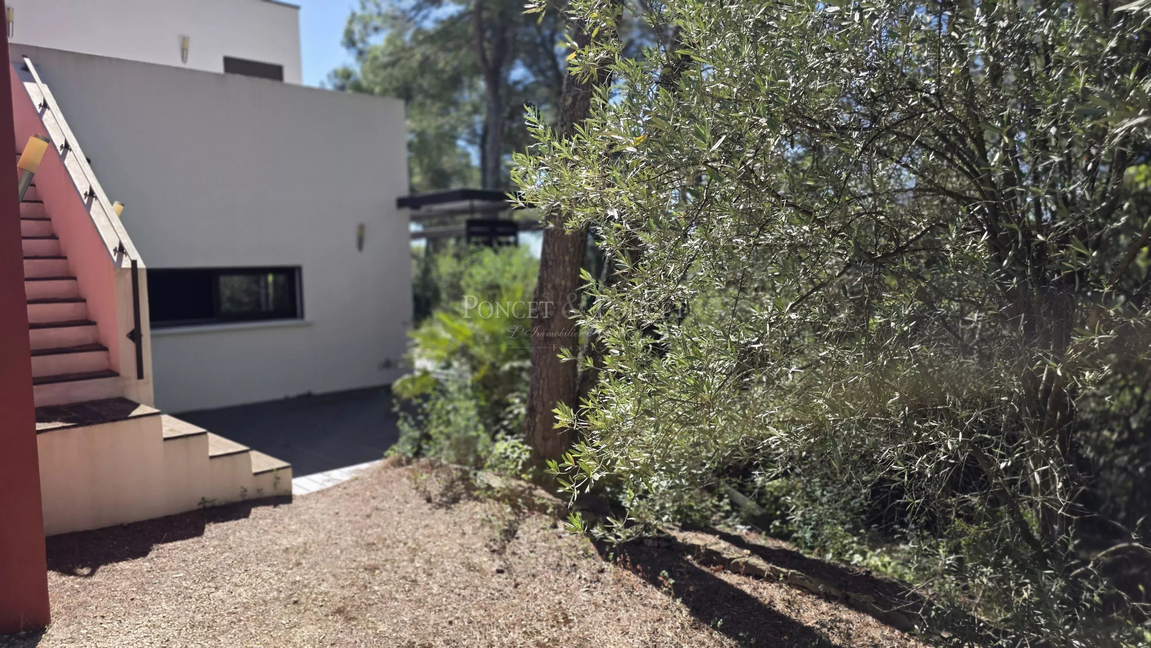 Cette villa d’architecte incarne l’élégance contemporaine dans un cadre naturel d’exception. Nichée sur un terrain de 3000 m² entouré de pins et de chênes verts, elle offre calme et intimité. La maison propose au rez-de-chaussée deux chambres avec salle d’eau et dressing. À l’étage, deux chambres supplémentaires dont une avec terrasse et spa, ainsi qu’une salle de bains. À l’extérieur : piscine 12x6 m, pergola, dépendance vitrée climatisée, jardin méditerranéen avec capitelle et mazet en pierre aménagé (chambre + salle d’eau). Un chalet indépendant, un atelier, un double garage complètent ce bien. Notre avis : Une propriété rare alliant modernité, confort et nature préservée. Contact : Barbara Heslop +33 6 21 76 51 90 Les informations sur les risques auxquels ce bien est exposé sont disponibles sur le site Géorisques : www.georisques.gouv.fr
