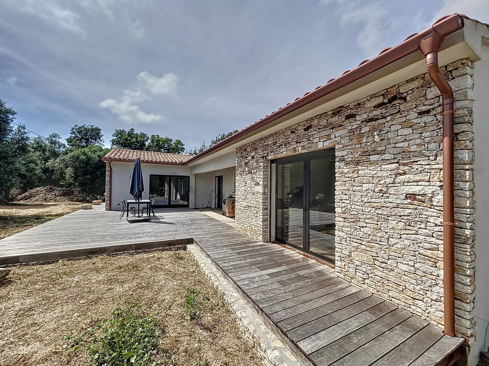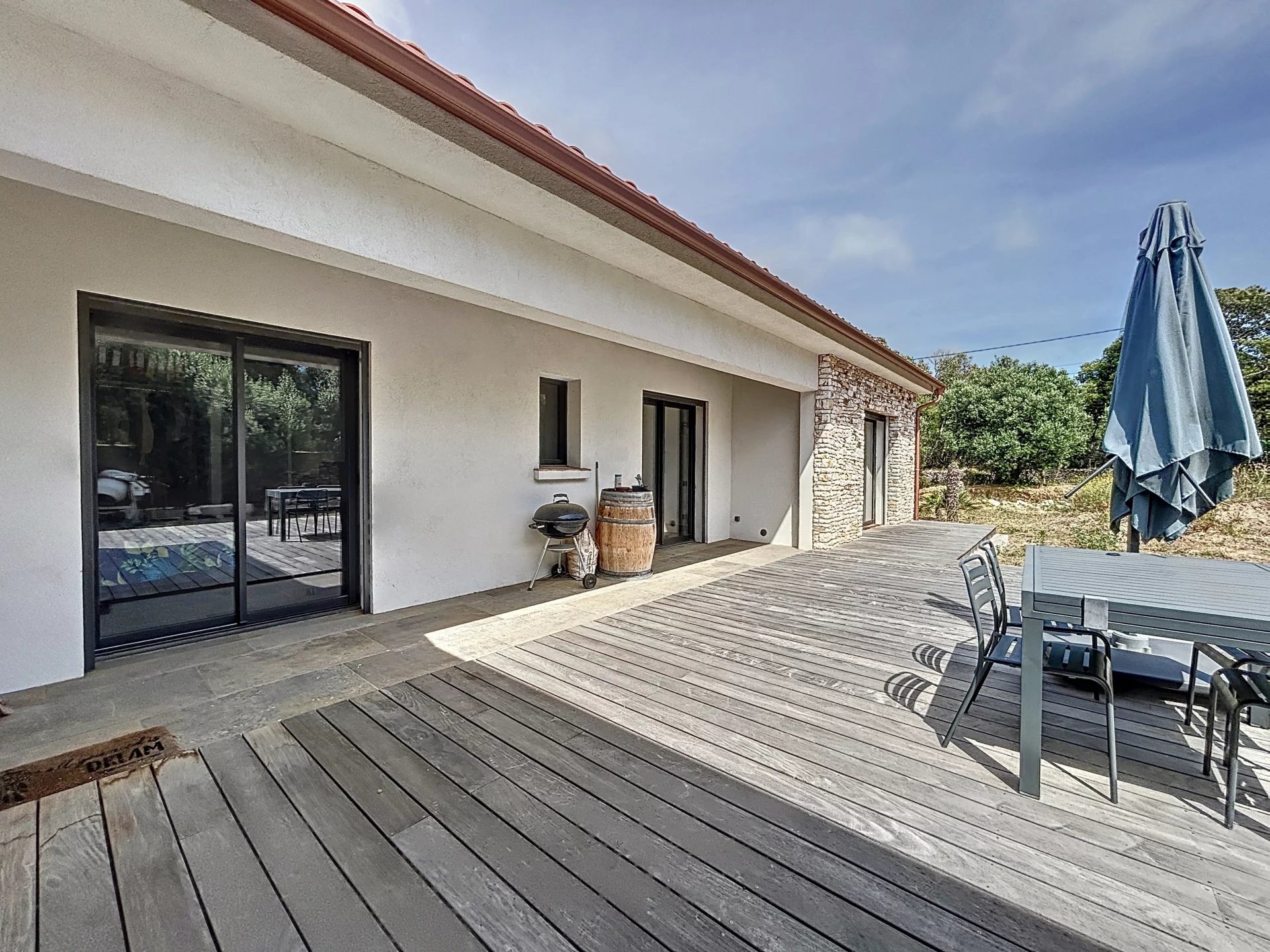 Villa de 129 m2 environ, elle se compose d'un séjour avec cuisine équipée ouverte sur espace repas et salon avec cheminée, le tout donnant accès aux terrasses extérieures en IP exposées plein Sud. Une buanderie attenante complète le bien. Le coin nuit se compose d'une suite parentale avec dressing, salle d’eau, WC ainsi que deux chambres, salle de bain et WC. En extérieur, un terrain arboré d'essences locales sur terrain clos avec pierres de Bonifacio. Vous serez séduits par cette propriété moderne, ses prestations de qualité prête à vous accueillir, dans un calme absolu, proche des commerces, et à seulement un kilomètre de la splendide plage de Maora.