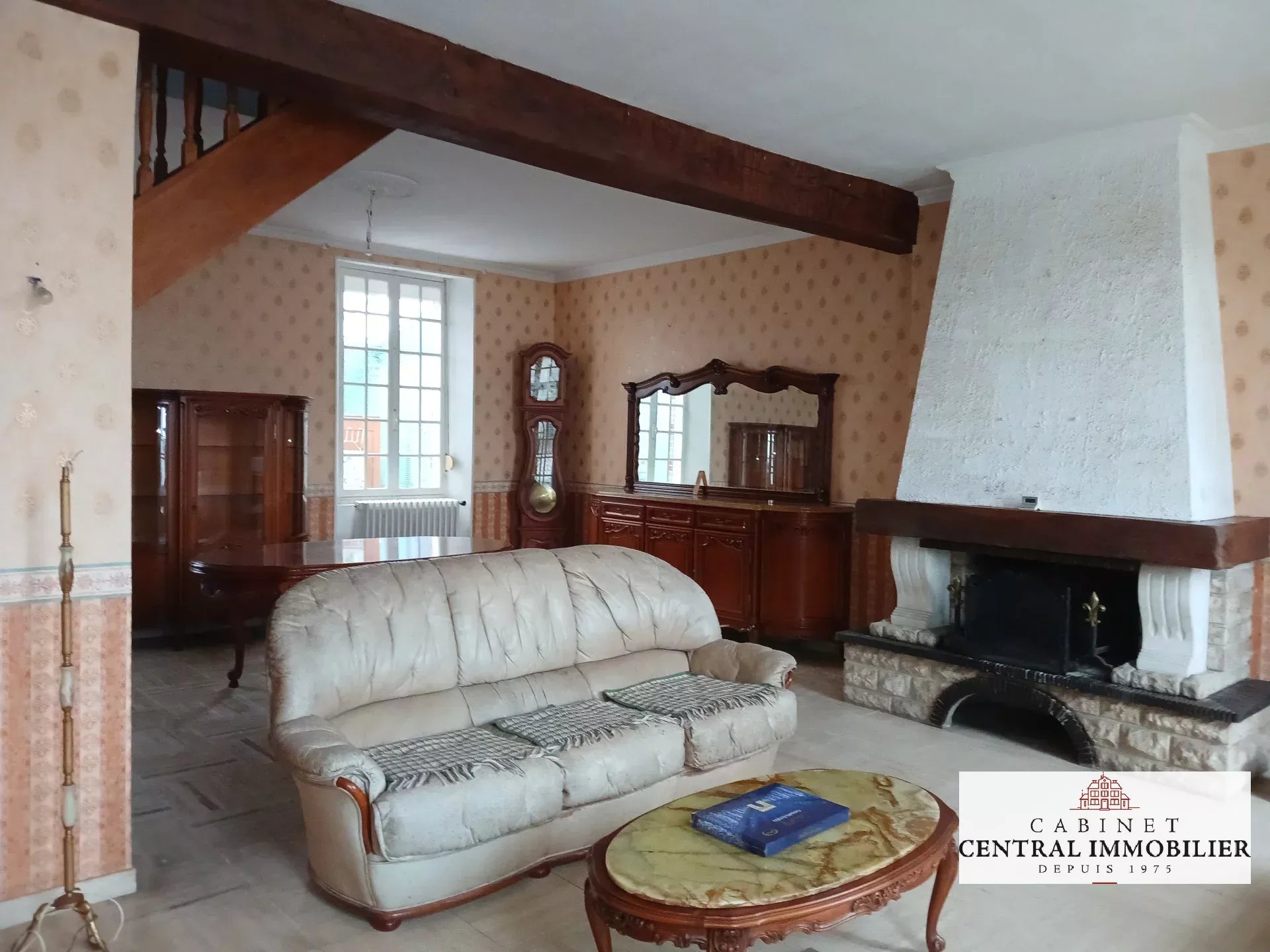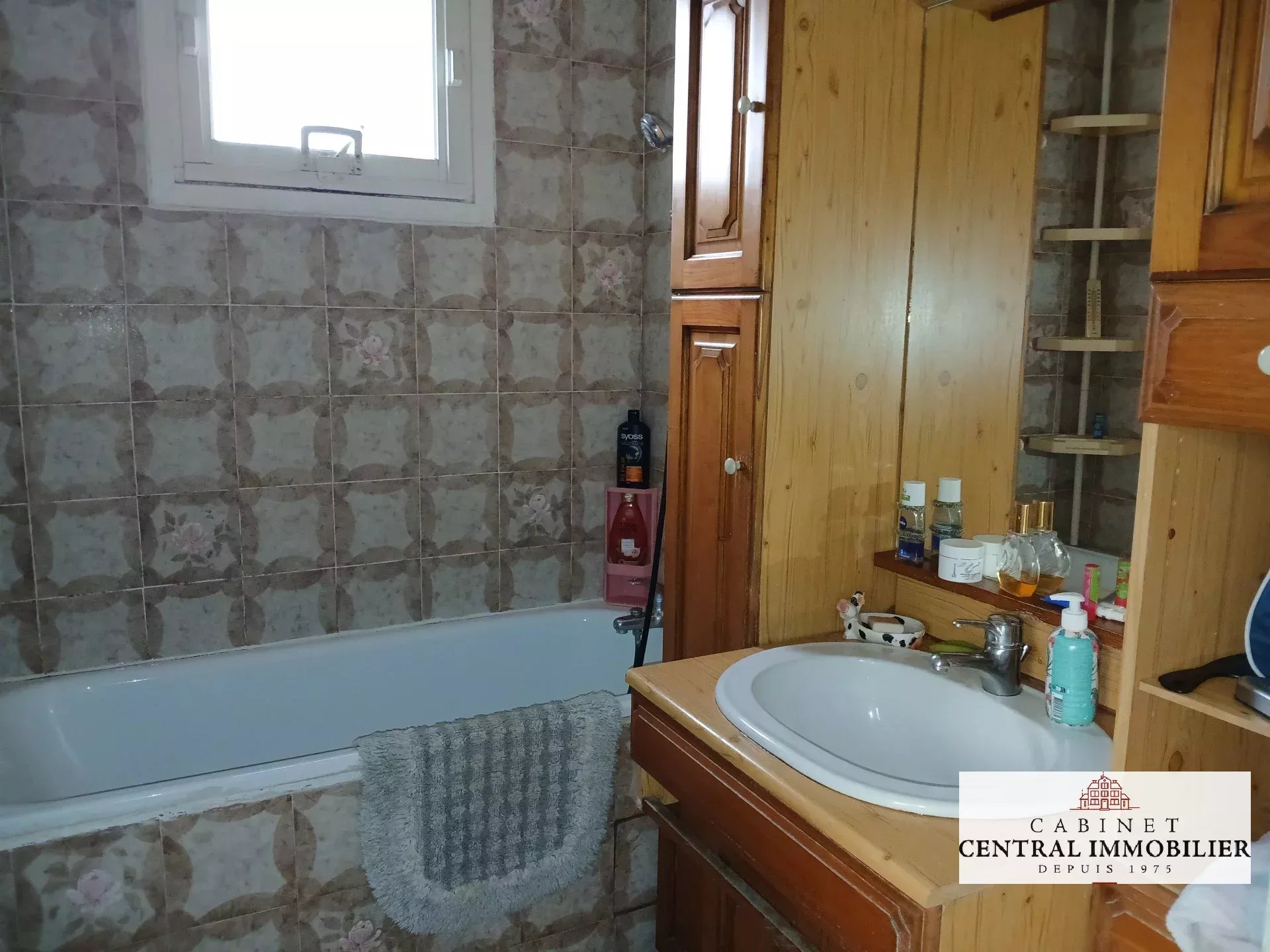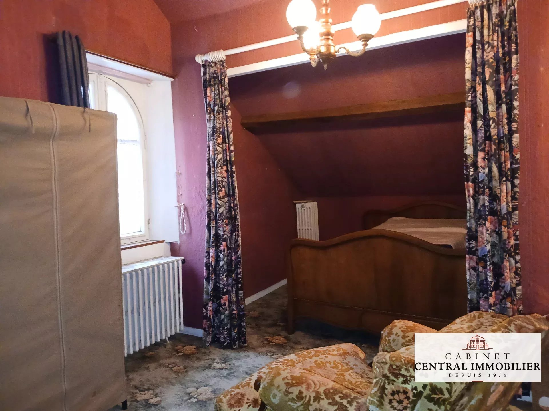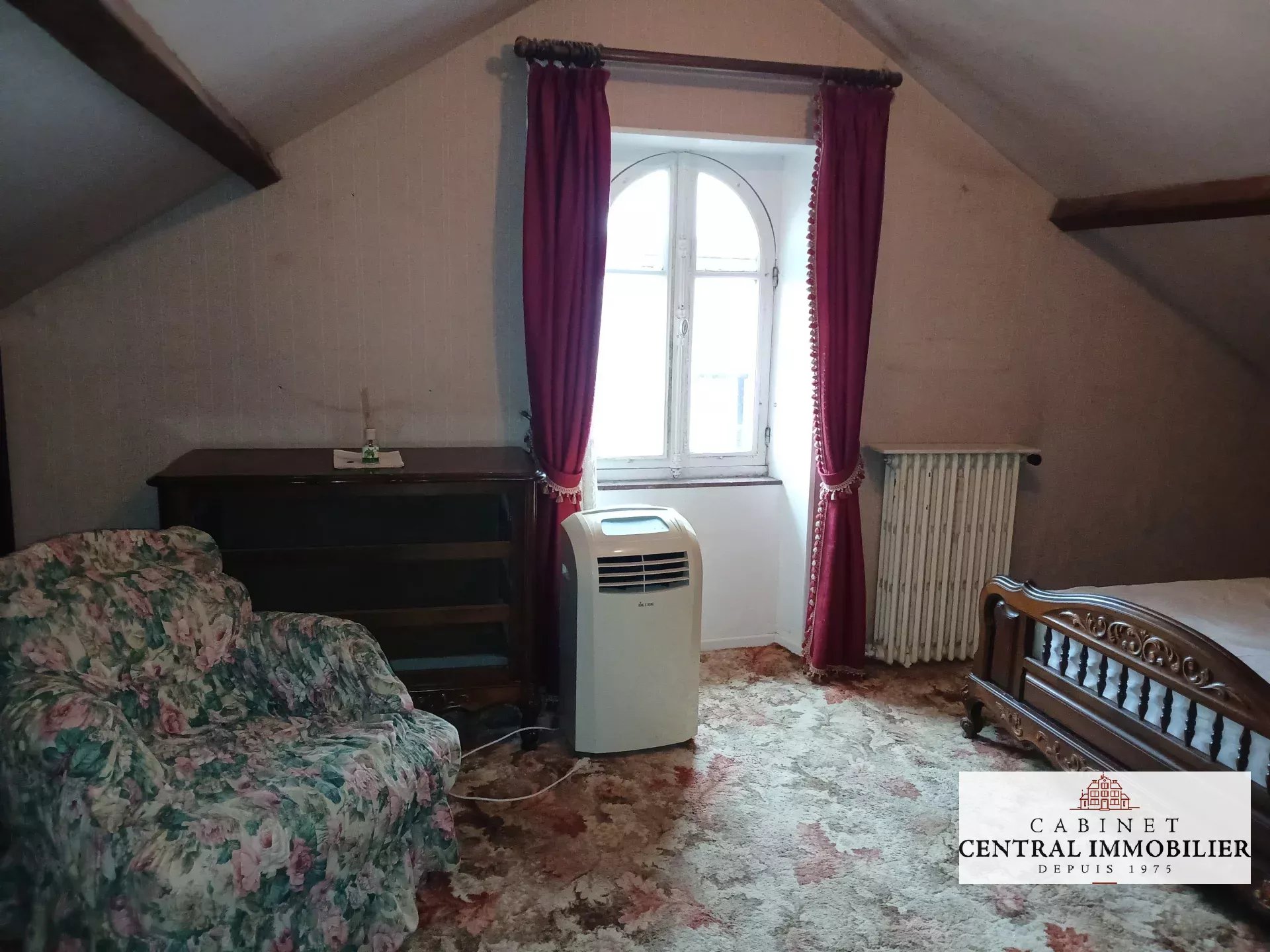 Maison comprenant : entrée de 4.70m² carrelée avec placard, cuisine de 10.50m² carrelée aménagée équipée, séjour salon de 41.59m² carrelé avec cheminée et 2 portes fenêtres (possibilité de cloisonner pour création d'une chambre), véranda de 18.20m² carrelée, wc de 1.80m² carrelé avec lave mains, salle de bains de 3.40m² carrelée faïencée. À l'étage : pièce palière de 9.47m² (18.28m² au sol) à usage de chambre et facilement cloisonnable, chambre de 20.29m² (21.90m² au sol) avec cabinet de toilettes. Chauffage central au fuel. Double vitrage et survitrage. Volets roulants en partie. Appenti. Vaste garage de 70m² environ avec porte motorisée et pièce buanderie. Cave. Agréable terrain clos de 1219m².