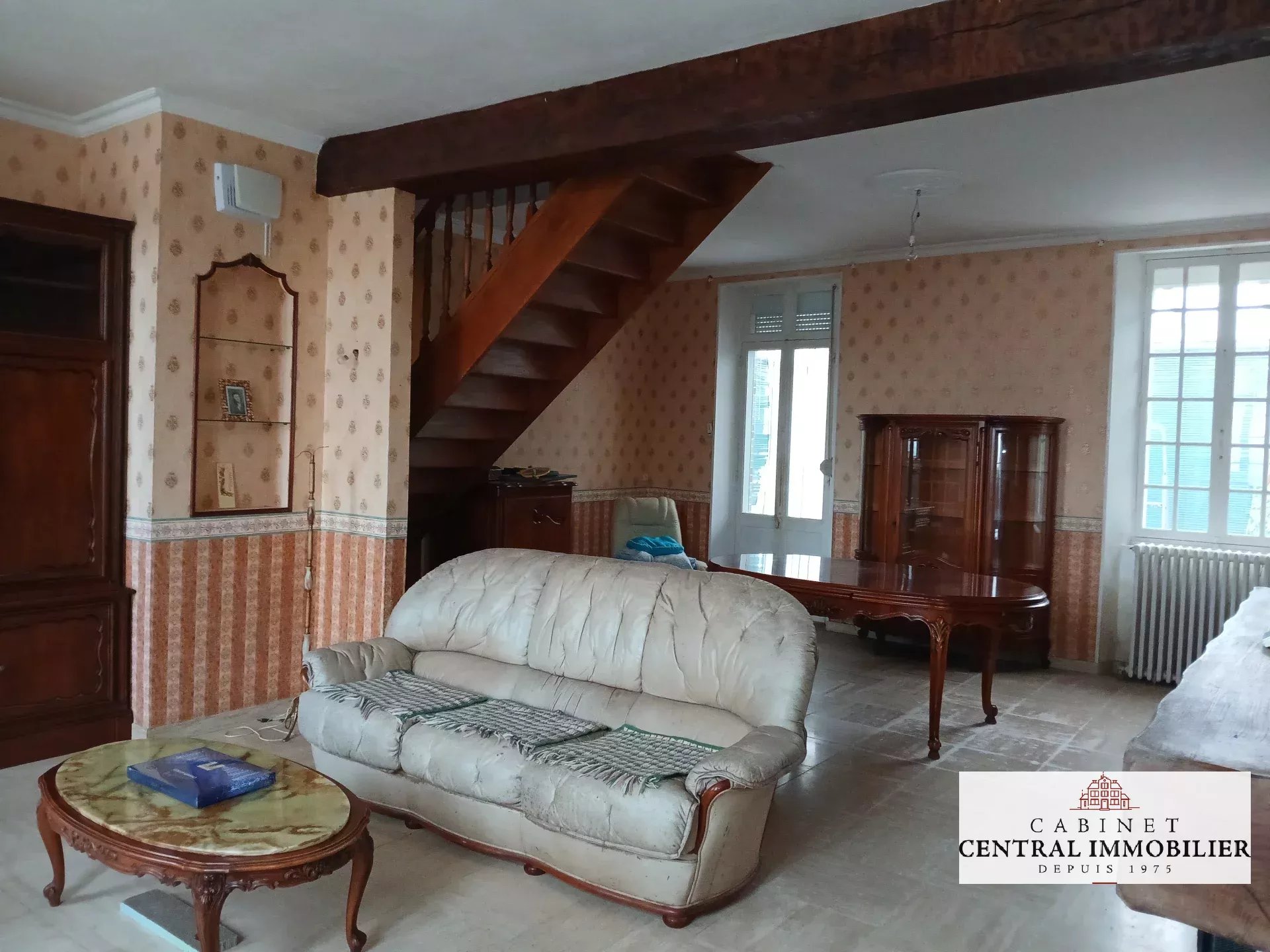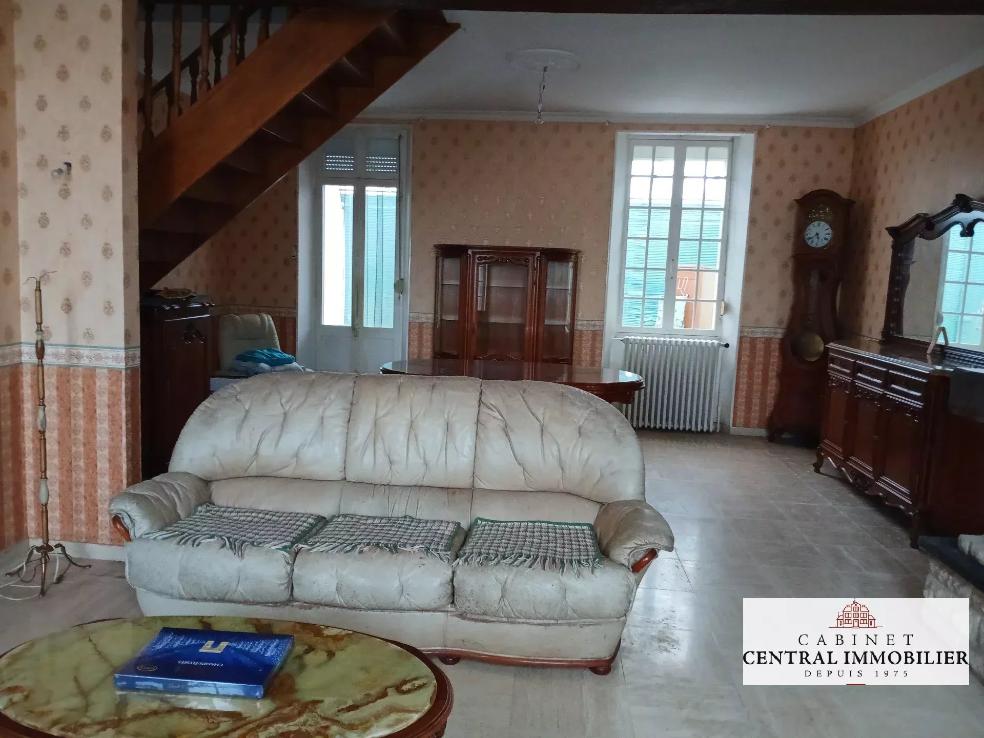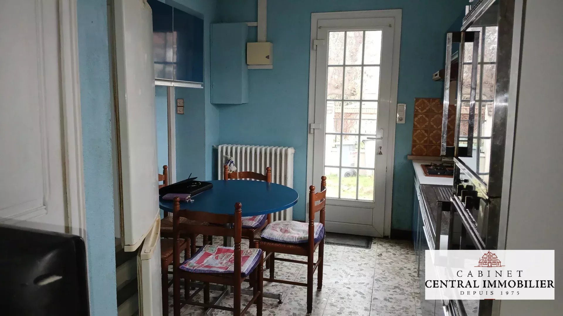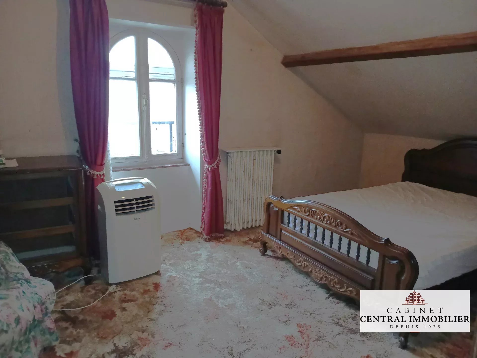 Maison comprenant : entrée de 4.70m² carrelée avec placard, cuisine de 10.50m² carrelée aménagée équipée, séjour salon de 41.59m² carrelé avec cheminée et 2 portes fenêtres (possibilité de cloisonner pour création d'une chambre), véranda de 18.20m² carrelée, wc de 1.80m² carrelé avec lave mains, salle de bains de 3.40m² carrelée faïencée. À l'étage : pièce palière de 9.47m² (18.28m² au sol) à usage de chambre et facilement cloisonnable, chambre de 20.29m² (21.90m² au sol) avec cabinet de toilettes. Chauffage central au fuel. Double vitrage et survitrage. Volets roulants en partie. Appenti. Vaste garage de 70m² environ avec porte motorisée et pièce buanderie. Cave. Agréable terrain clos de 1219m².
