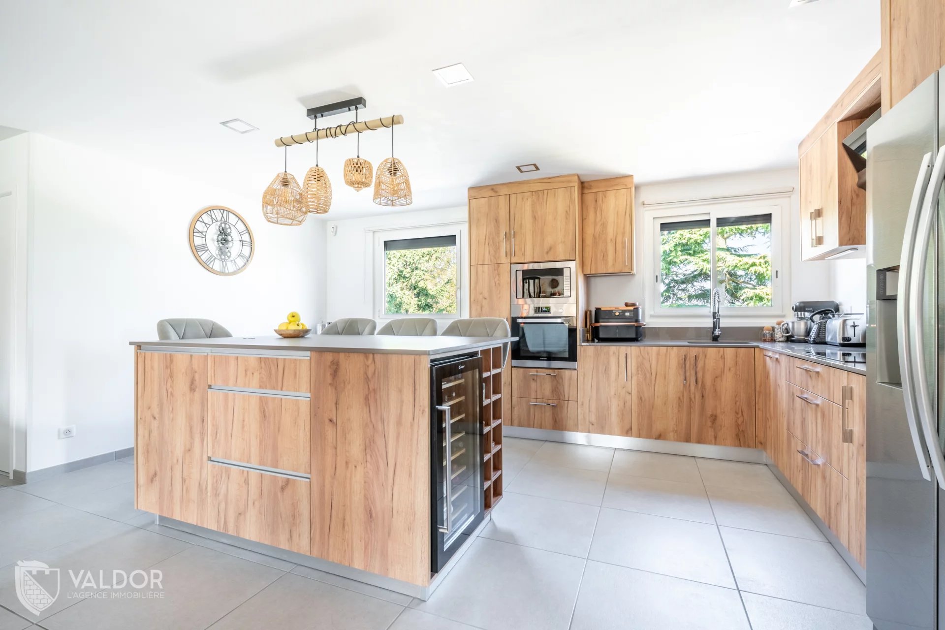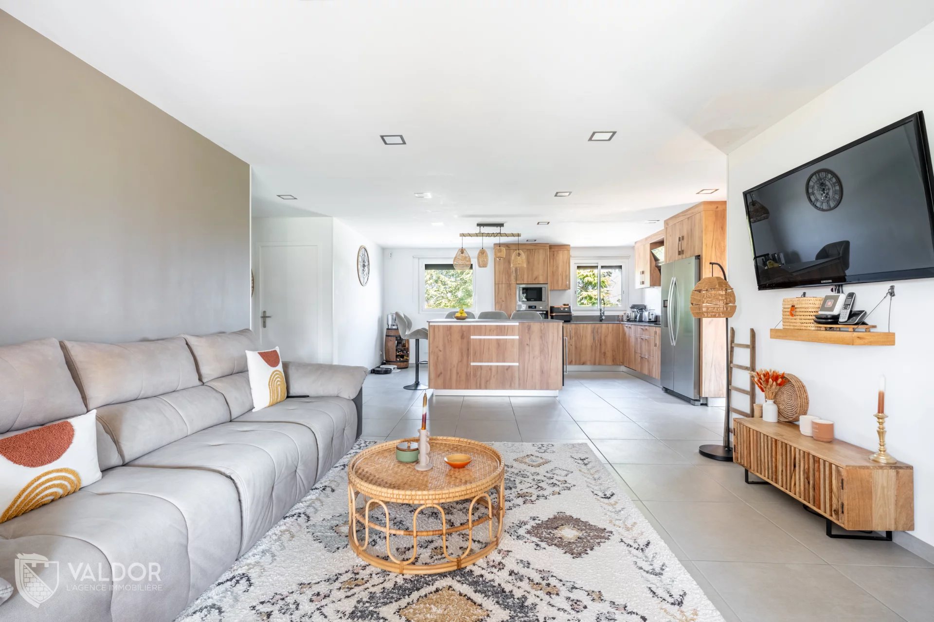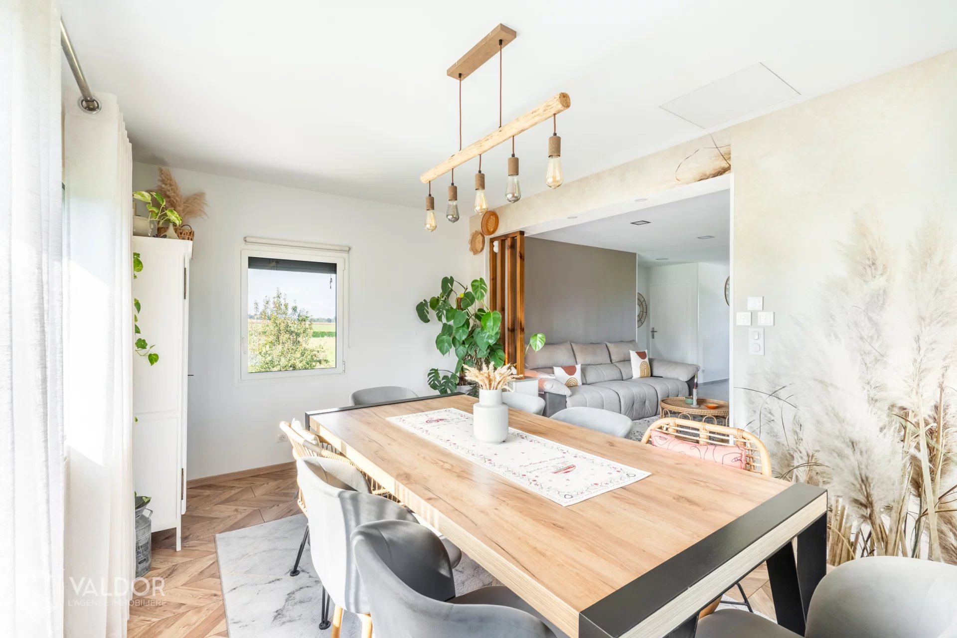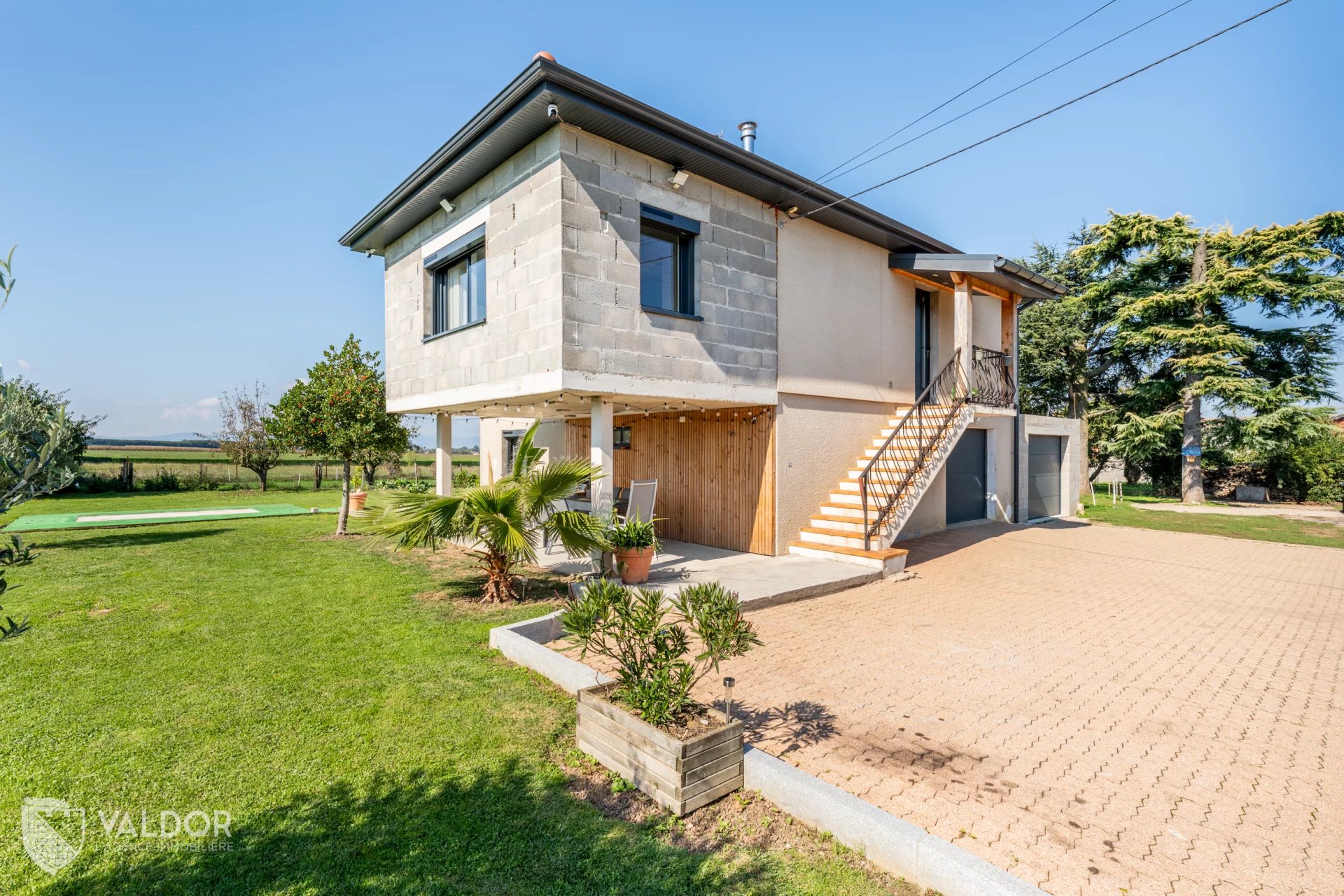 SAVIGNEUX (01480) – Très bel environnement pour cette maison de 125 m² habitables, édifiée sur une parcelle de terrain de près de 1 500 m², sans aucun vis-à-vis. Prête à vivre, l’intérieur a été entièrement rénové. L’extérieur reste à sublimer par la finition de la façade. La pièce de vie de 61 m² est baignée de lumière grâce à de larges ouvertures, offrant une belle sensation d’espace et une vue dégagée sur le jardin et la nature environnante. La cuisine, entièrement équipée, s’ouvre sur le séjour, lui-même prolongé par la salle à manger, dans une belle continuité de volumes. La maison comprend trois chambres, dont une suite parentale avec salle d’eau privative, une seconde salle de bains indépendante, un cellier, ainsi que de nombreux espaces de rangement. Le confort thermique est assuré par un chauffage mixte : radiateurs électriques et poêle à bois. Deux grands garages : l’un de 42 m², l’autre de 30 m², ce dernier construit en extension avec toit-terrasse, apportant une touche plus contemporaine à l’ensemble. Agence Immobilière VALDOR - Raphaël MASCI - 06.68.85.69.69 - Responsabilité Civile Professionnelle n° VD 7.000.001 / 19373 - Les informations sur les risques auxquels ce bien est exposé sont disponibles sur le site Géorisques : www.georisques.gouv.fr