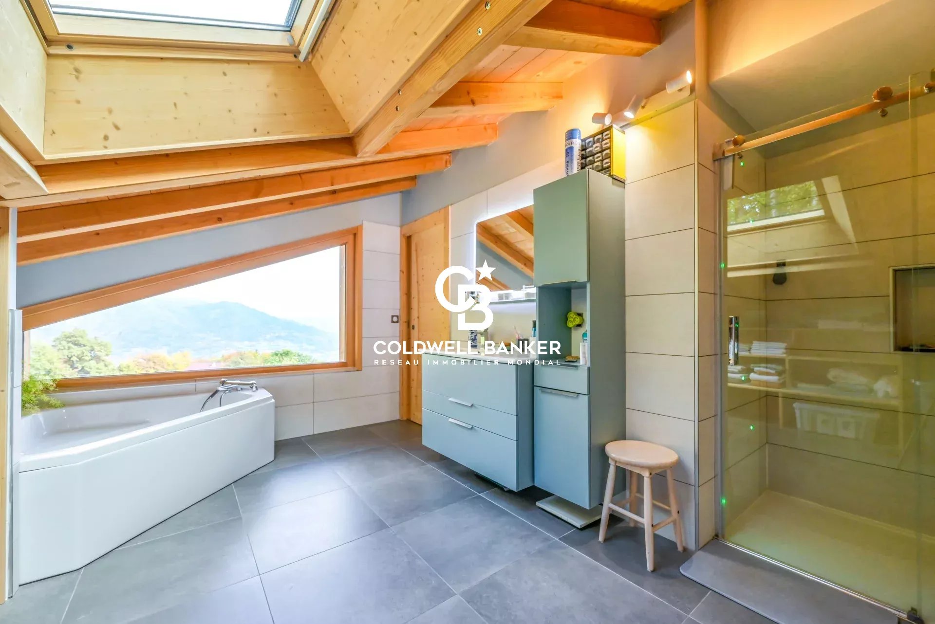 Dans secteur calme à proximité des stations de ski, sur le coteau de Sallanches, superbe ensemble aux prestations de qualité, édifié en 2021 sur un terrain de 3552m² face au massif du Mont-Blanc: Un premier chalet à usage d'habitation accueillera votre famille dans un espace de 195m² avec pièces spacieuses et lumineuses et de nombreuses dépendances dont chambre et salle de douche/wc privative adaptées PMR, salle de sport avec bassin intérieur, terrasse avec spa, garage de 48m², buanderie... Un second chalet spécialement dédié à l'investissement locatif : - En rez-de-chaussée : 2 appartements T2 entièrement meublés et équipés. - Au premier étage: 3 chambres meublées avec accès indépendants, disposant de salles de douche/WC privatives. En annexes : 2 places couvertes et 4 places extérieures.