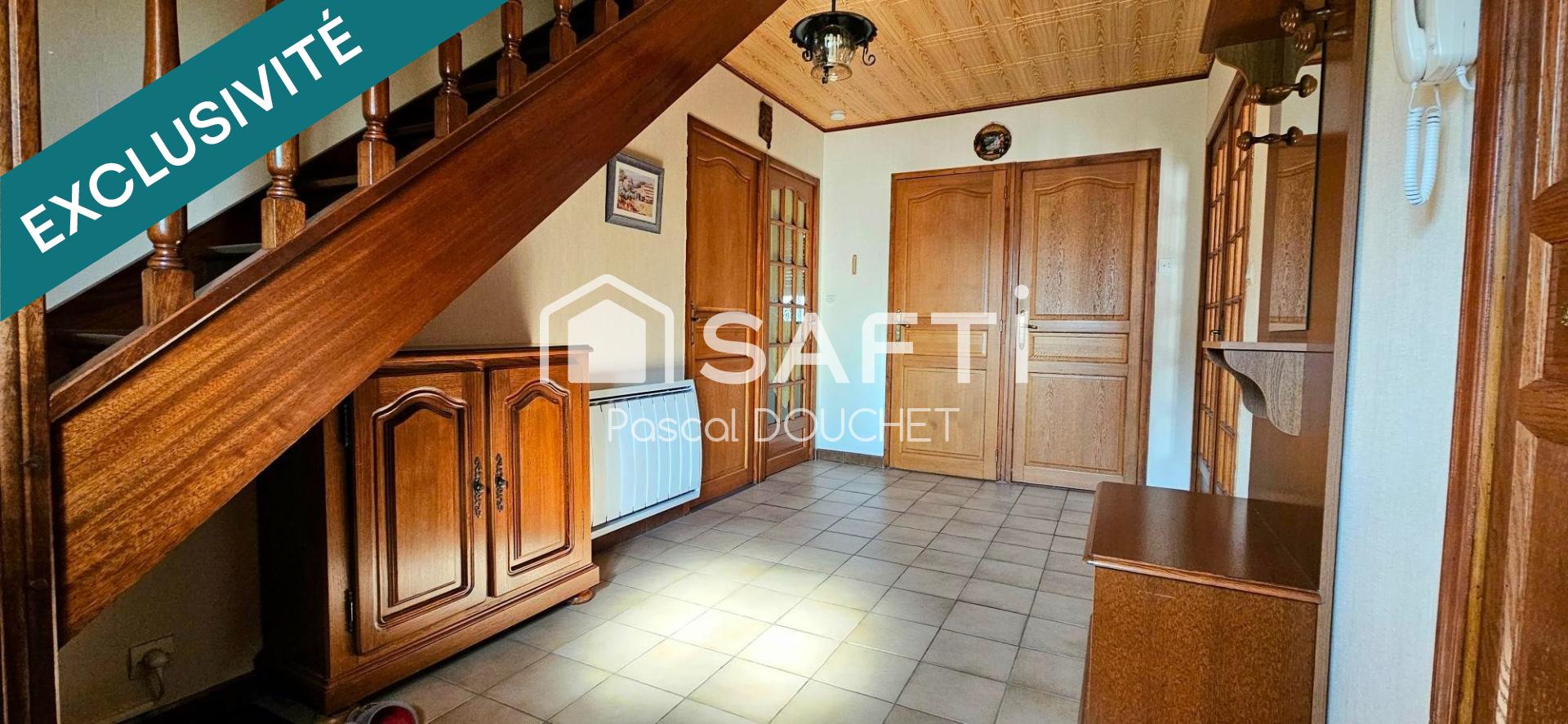 À l'intérieur, le pavillon présente un agencement fonctionnel. Le rez-de-chaussée abrite une grande entrée desservant une belle pièce de vie avec poêle à granulé, une cuisine avec accès au garage, une chambre, une salle de bain et un toilette. À l'étage, un palier dessert deux chambres supplémentaires de 12 et 20 m² et une pièce facilement aménageable. Cette maison offre un espace de vie convivial et familial.