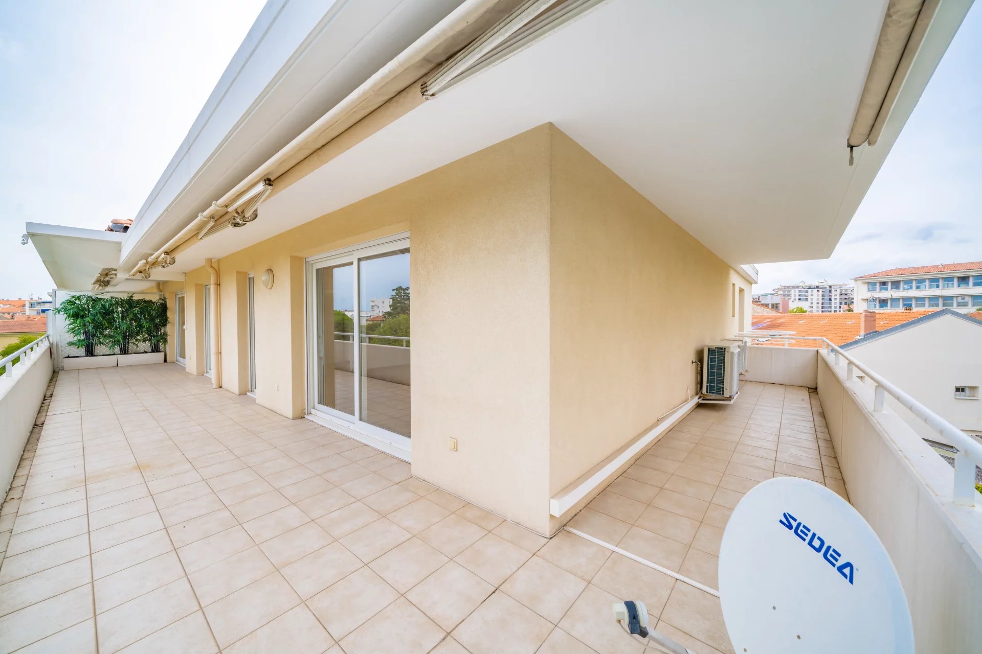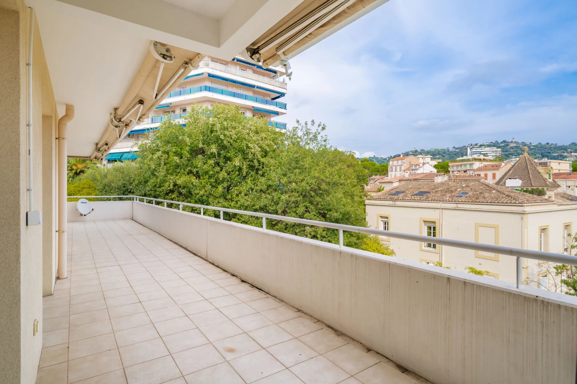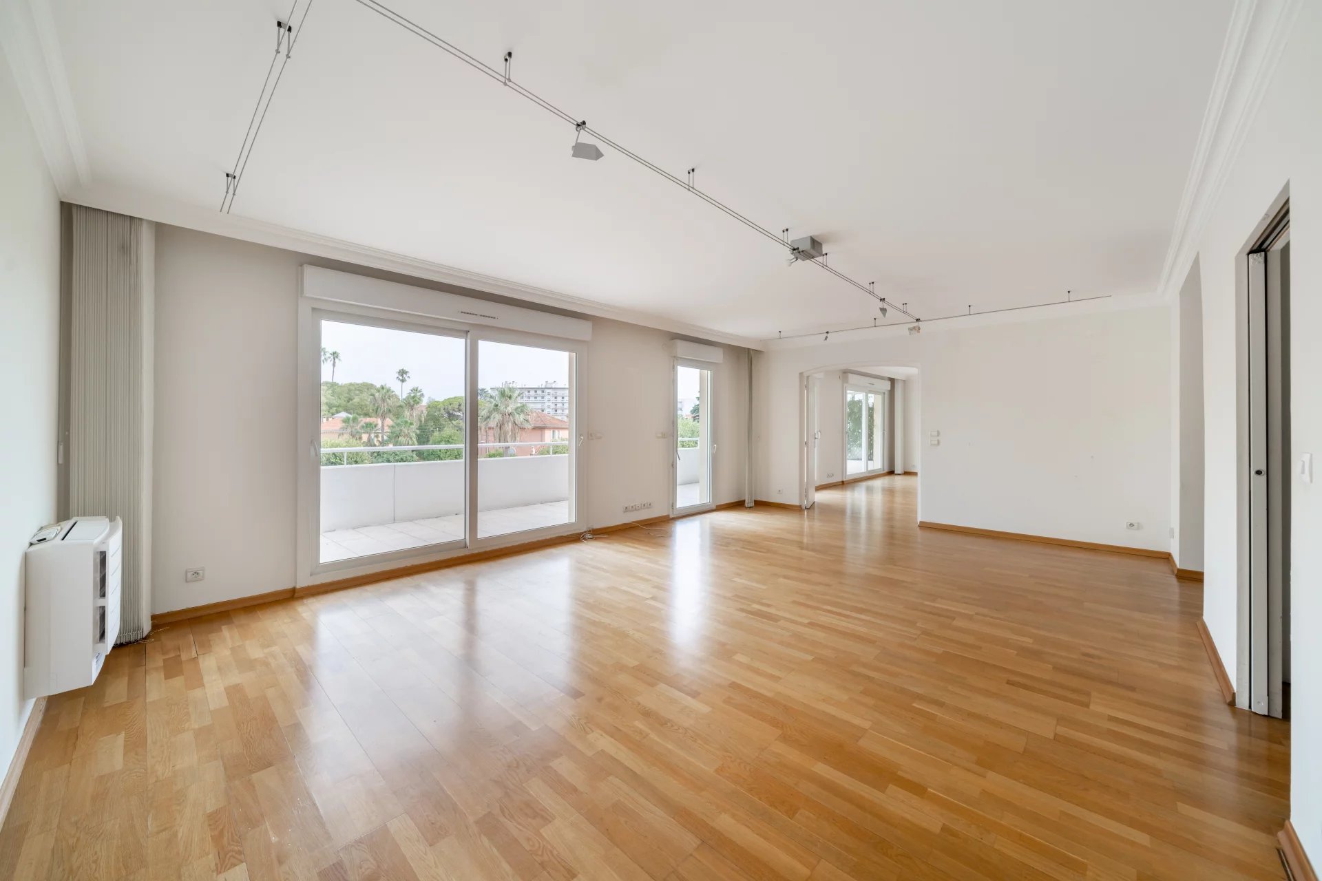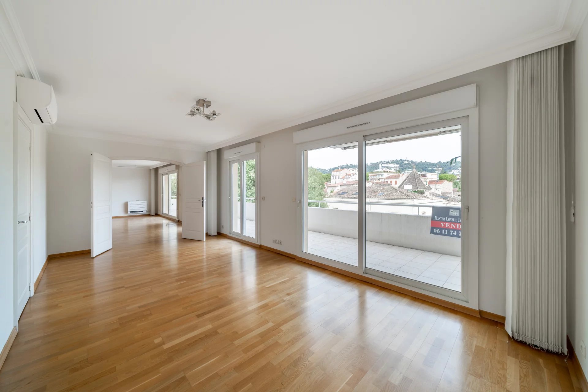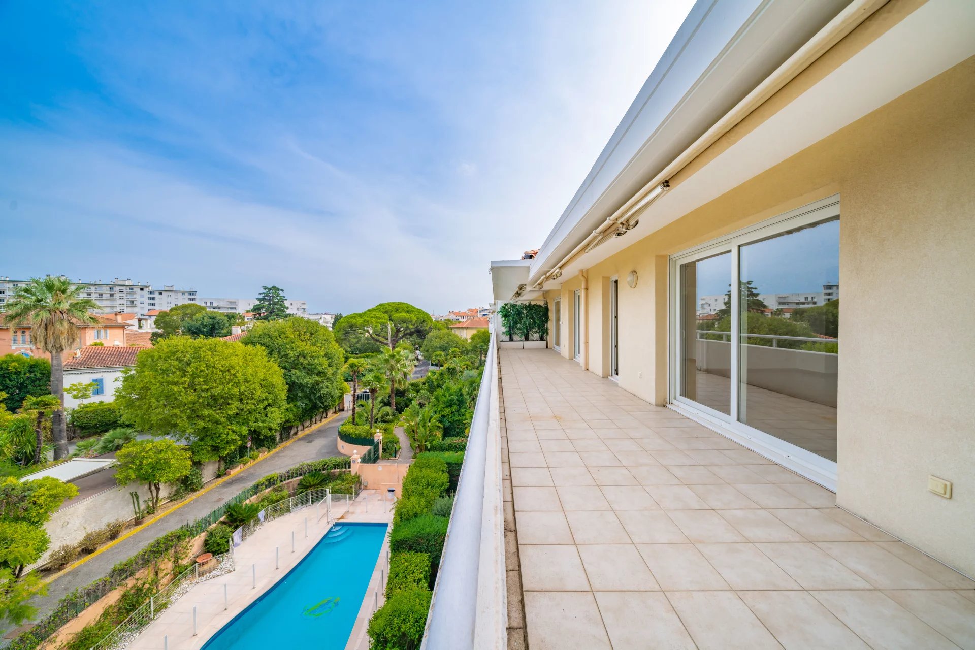 Au dernier étage d’une résidence avec piscine à Cannes, ce 4 pièces traversant de 141 m² est baigné de lumière. Situé à 15 min à pied de la mer et 10 min de la rue d'Antibes, il est proche de toutes les commodités. Le séjour de 35 m² s’ouvre sur une terrasse d'angle ensoleillée de 43 m², idéale pour profiter du climat méditerranéen. La cuisine équipée semi ouverte peut facilement s'ouvrir entièrement, agrandissant ainsi l’espace de vie pour plus de confort et de convivialité. Composé de 3 chambres, la suite parentale de 24 m² s’ouvre directement sur la terrasse et dispose d’une salle de douche avec hammam, d’un dressing sur mesure et d’un WC. La seconde chambre de 22 m², bénéficie d'une salle de bain privative et d'un balcon. La troisième chambre, de 11,77 m², peut également être utilisée comme bureau. Une buanderie et un WC invités viennent parfaire l’ensemble. Deux places de stationnement en sous-sol pouvant être fermées en garage et deux caves viennent compléter ce bien rare. Quelques travaux de rafraichissements sont à prévoir. Des visuels générés par intelligence artificielle viennent illustrer différentes possibilités de décoration.