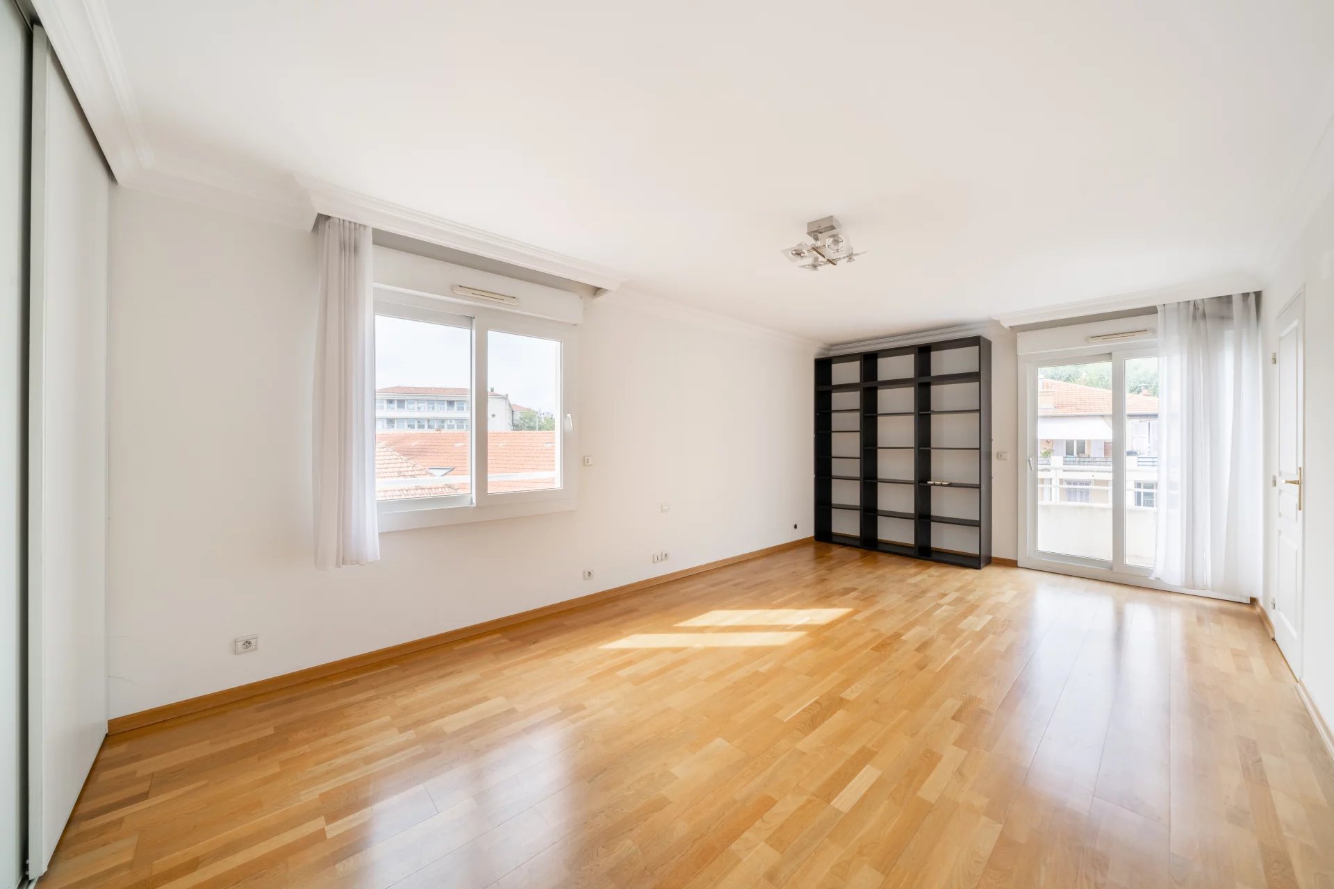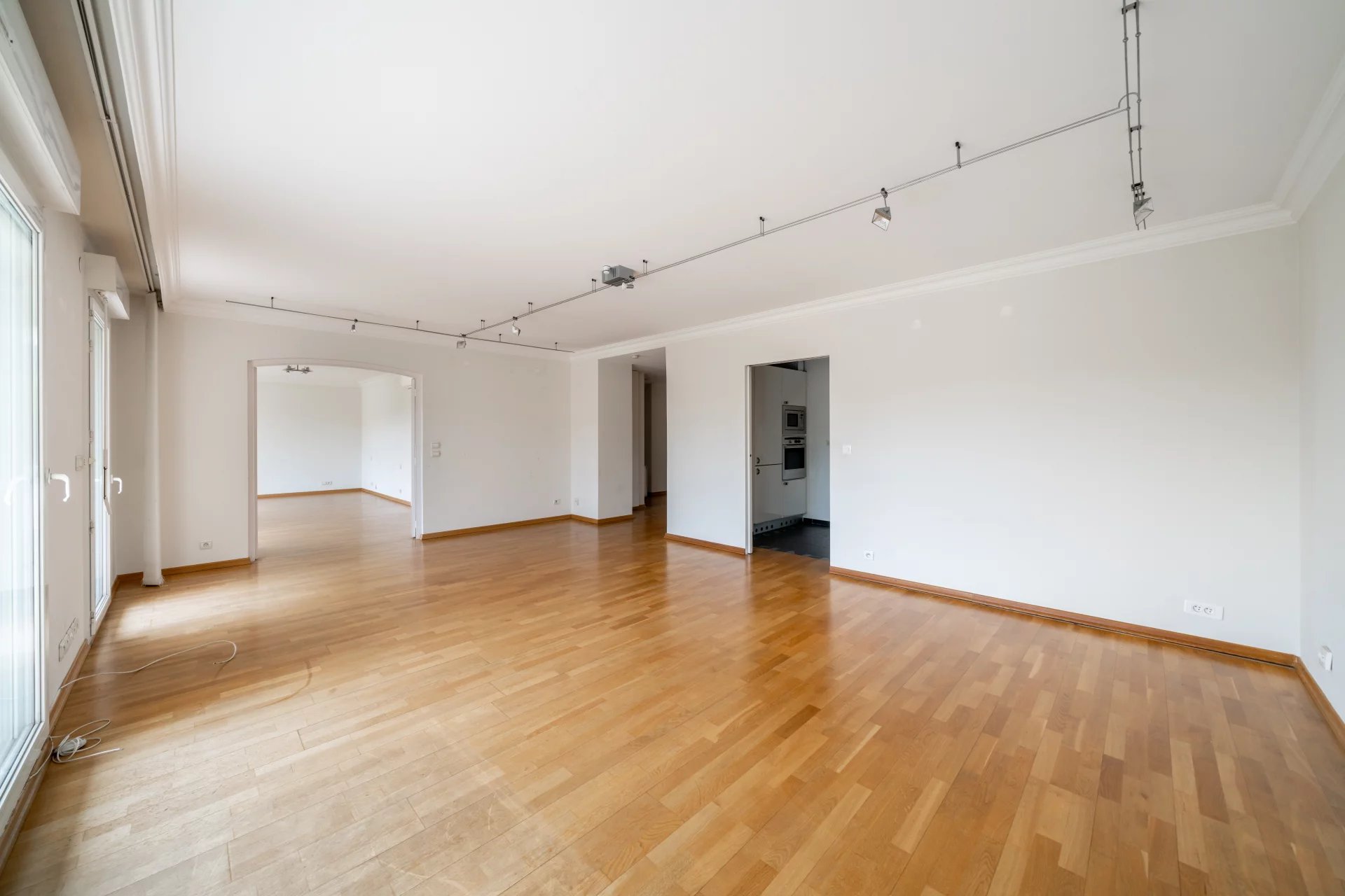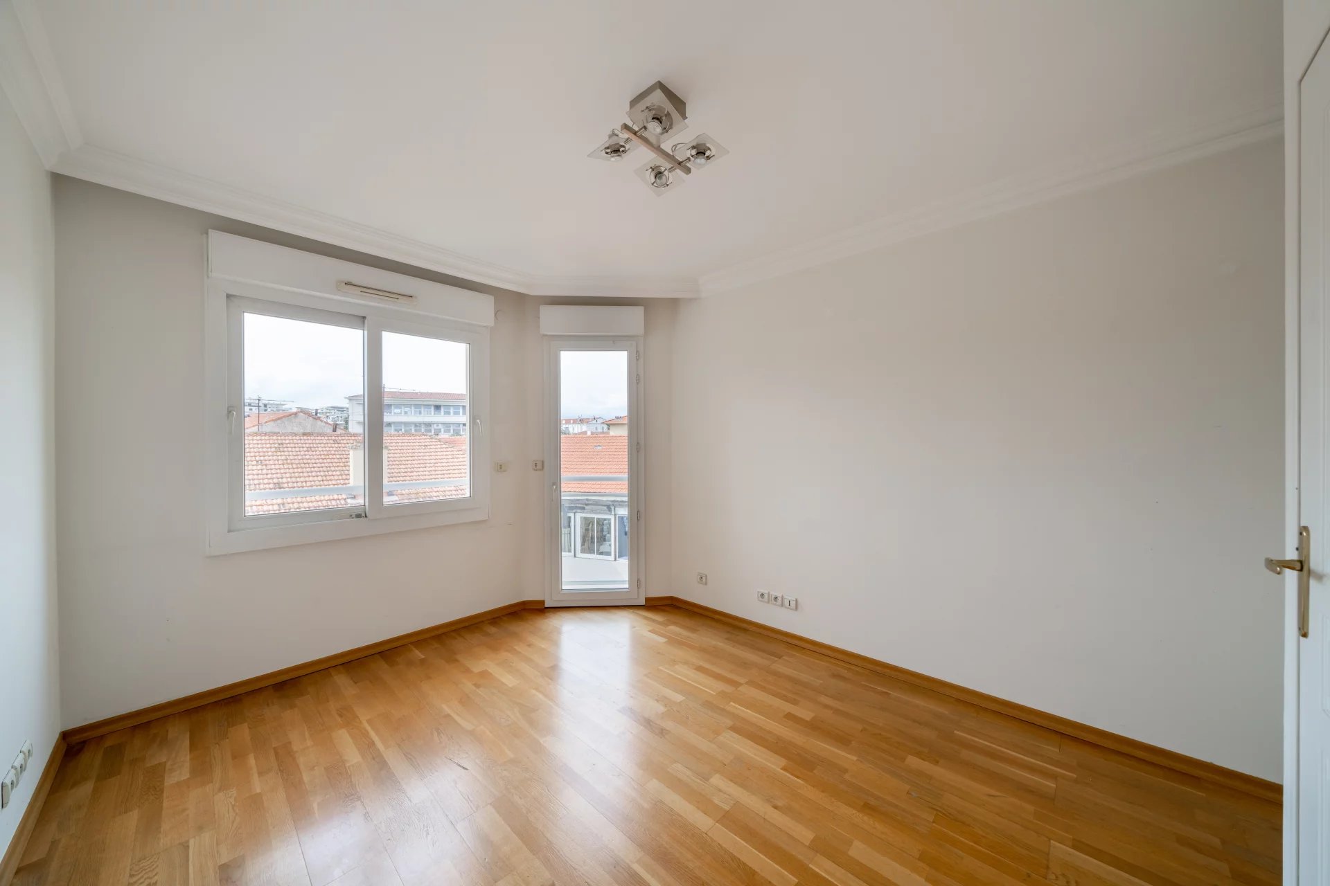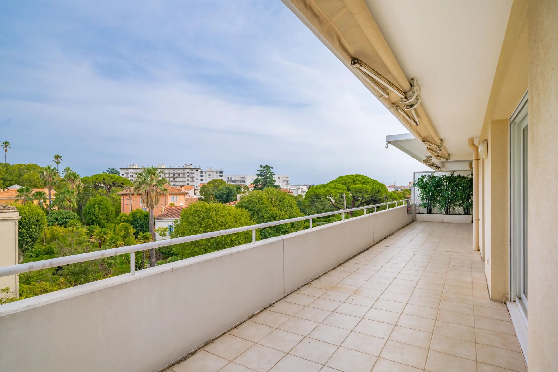 Au dernier étage d’une résidence avec piscine à Cannes, ce 4 pièces traversant de 141 m² est baigné de lumière. Situé à 15 min à pied de la mer et 10 min de la rue d'Antibes, il est proche de toutes les commodités. Le séjour de 35 m² s’ouvre sur une terrasse d'angle ensoleillée de 43 m², idéale pour profiter du climat méditerranéen. La cuisine équipée semi ouverte peut facilement s'ouvrir entièrement, agrandissant ainsi l’espace de vie pour plus de confort et de convivialité. Composé de 3 chambres, la suite parentale de 24 m² s’ouvre directement sur la terrasse et dispose d’une salle de douche avec hammam, d’un dressing sur mesure et d’un WC. La seconde chambre de 22 m², bénéficie d'une salle de bain privative et d'un balcon. La troisième chambre, de 11,77 m², peut également être utilisée comme bureau. Une buanderie et un WC invités viennent parfaire l’ensemble. Deux places de stationnement en sous-sol pouvant être fermées en garage et deux caves viennent compléter ce bien rare. Quelques travaux de rafraichissements sont à prévoir. Des visuels générés par intelligence artificielle viennent illustrer différentes possibilités de décoration.