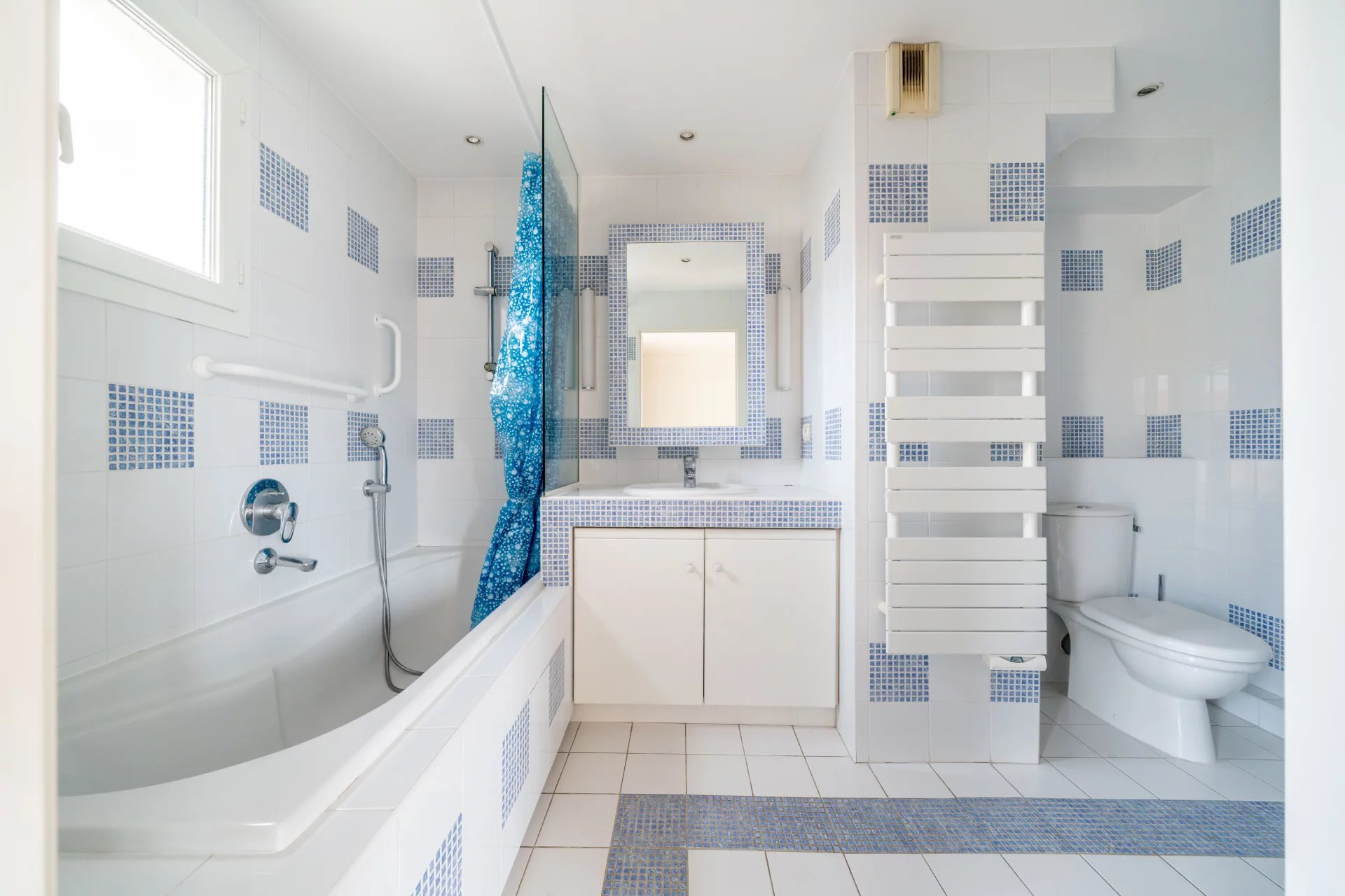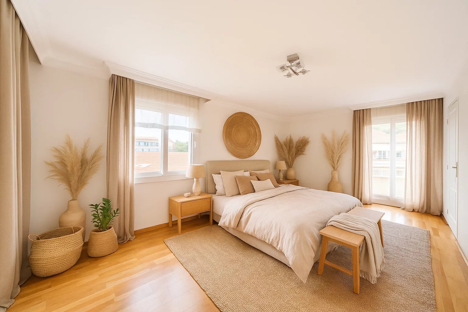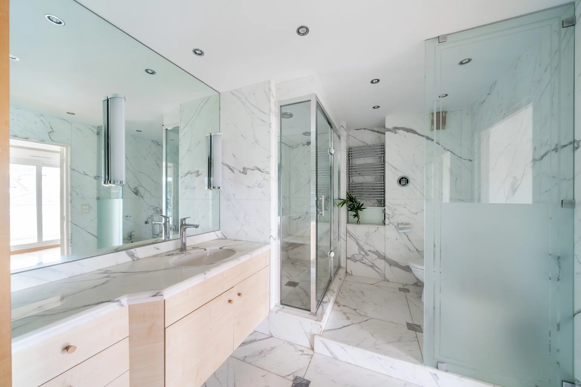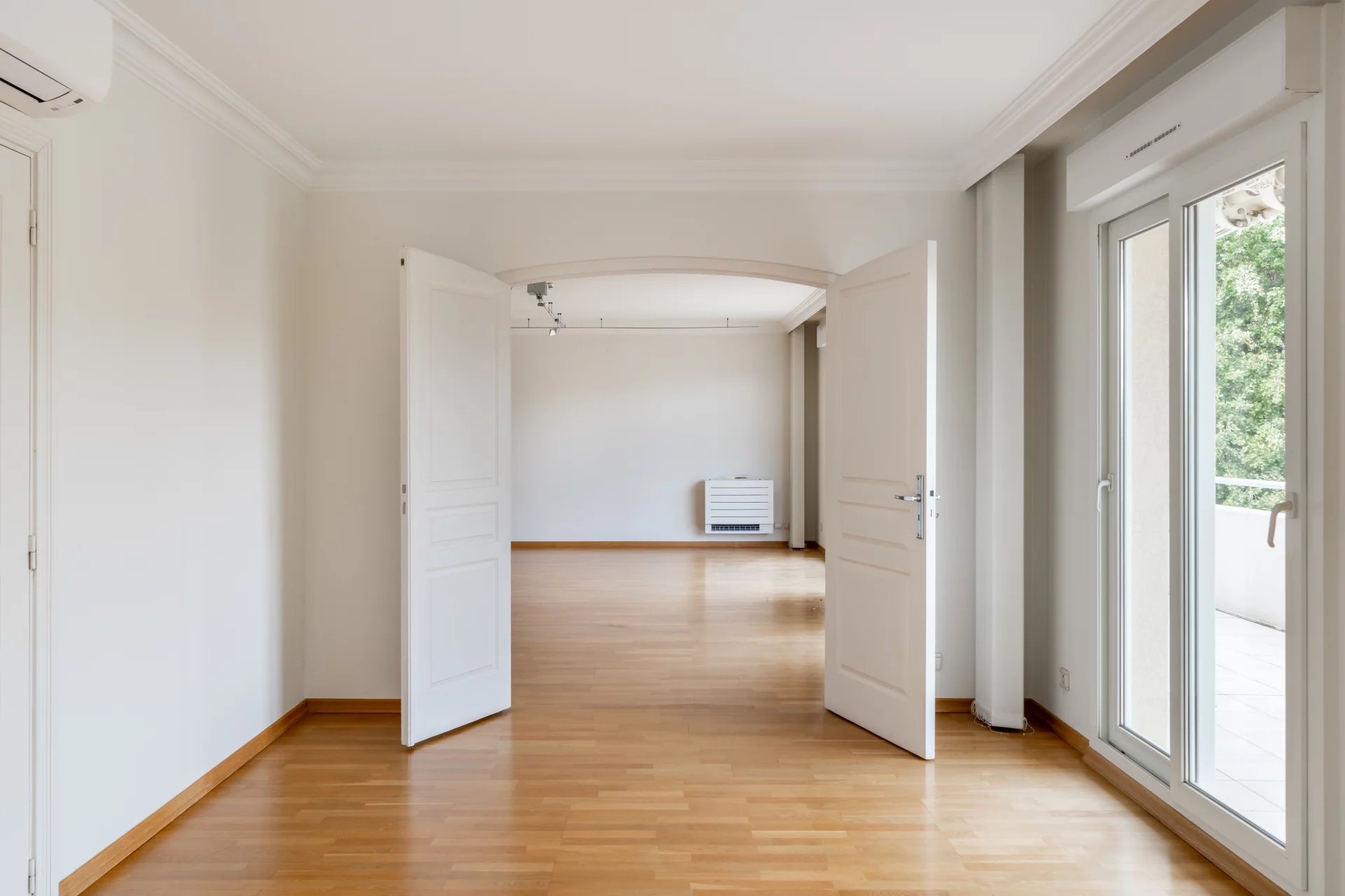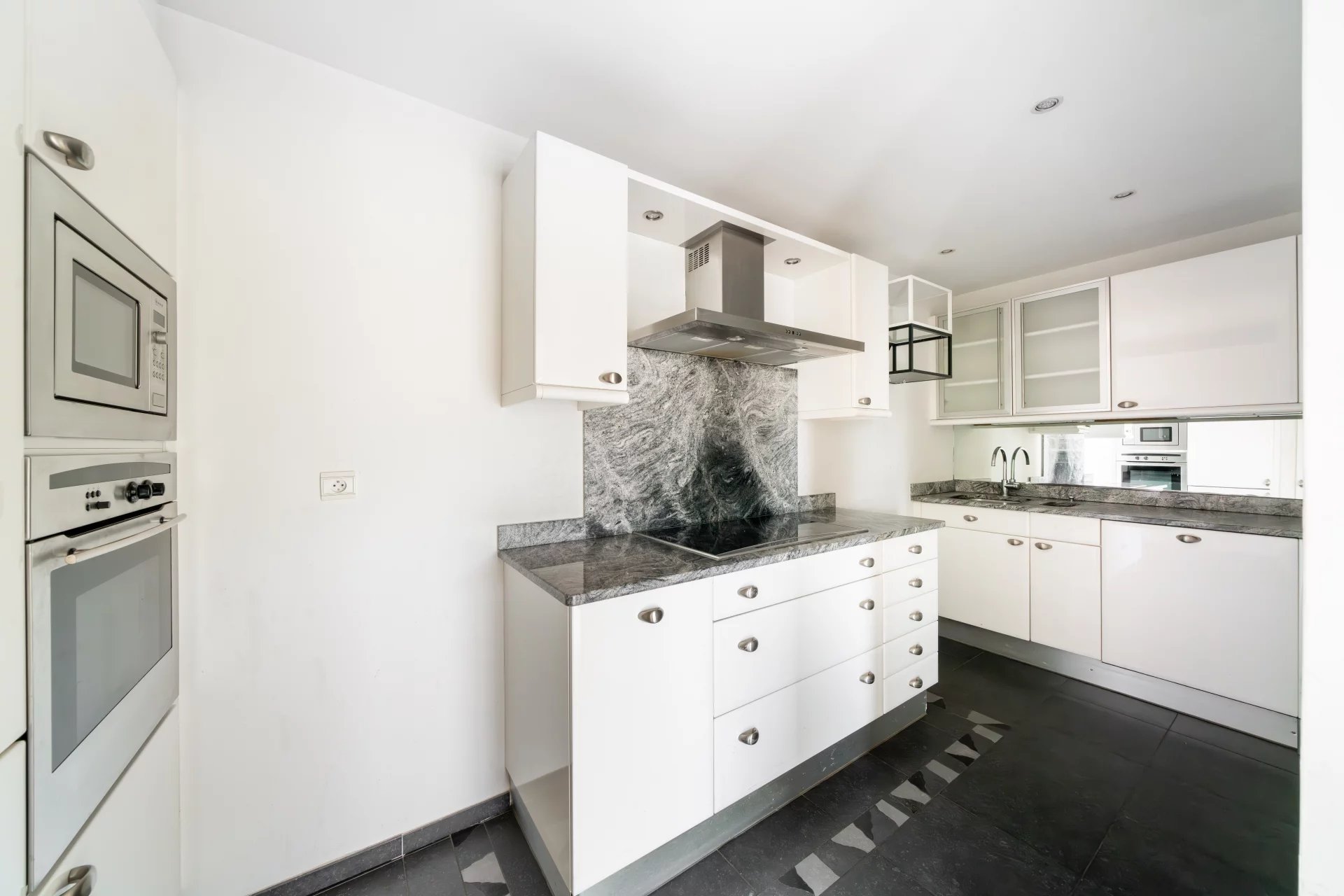 Au dernier étage d’une résidence avec piscine à Cannes, ce 4 pièces traversant de 141 m² est baigné de lumière. Situé à 15 min à pied de la mer et 10 min de la rue d'Antibes, il est proche de toutes les commodités. Le séjour de 35 m² s’ouvre sur une terrasse d'angle ensoleillée de 43 m², idéale pour profiter du climat méditerranéen. La cuisine équipée semi ouverte peut facilement s'ouvrir entièrement, agrandissant ainsi l’espace de vie pour plus de confort et de convivialité. Composé de 3 chambres, la suite parentale de 24 m² s’ouvre directement sur la terrasse et dispose d’une salle de douche avec hammam, d’un dressing sur mesure et d’un WC. La seconde chambre de 22 m², bénéficie d'une salle de bain privative et d'un balcon. La troisième chambre, de 11,77 m², peut également être utilisée comme bureau. Une buanderie et un WC invités viennent parfaire l’ensemble. Deux places de stationnement en sous-sol pouvant être fermées en garage et deux caves viennent compléter ce bien rare. Quelques travaux de rafraichissements sont à prévoir. Des visuels générés par intelligence artificielle viennent illustrer différentes possibilités de décoration.