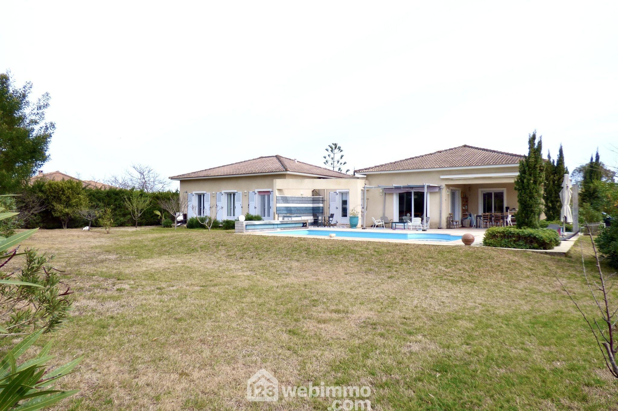 Votre agence 123webimmo l'immobilier au meilleur prix vous présente : La Marana (Lucciana) - Villa de 206 m² habitable sur terrain de 2023 m² plat et arboré, piscine, double garage de 52 m².
