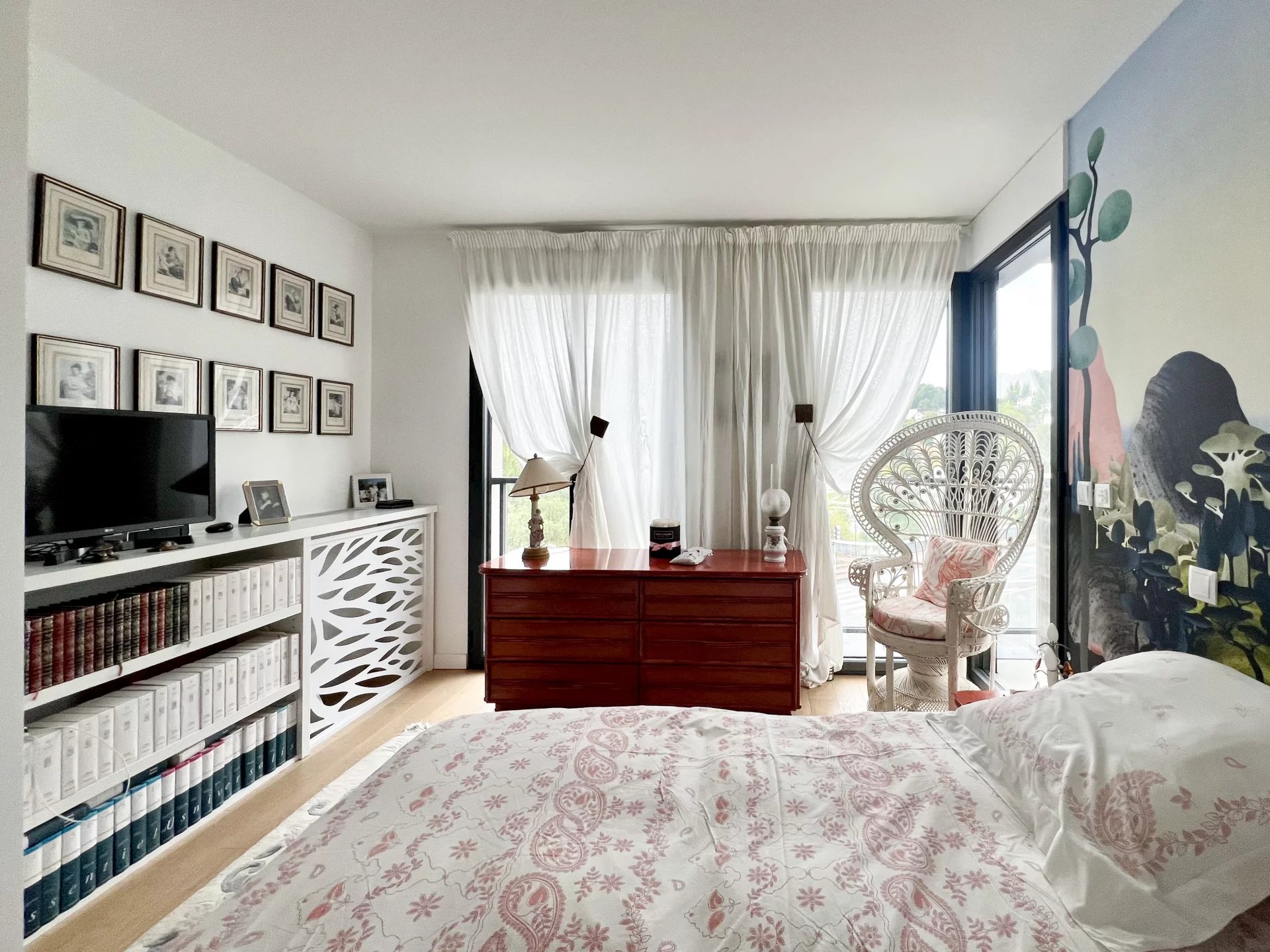Deux chambres avec placards intégrés, chacune donnant sur une terrasse avec vue directe sur la Marne