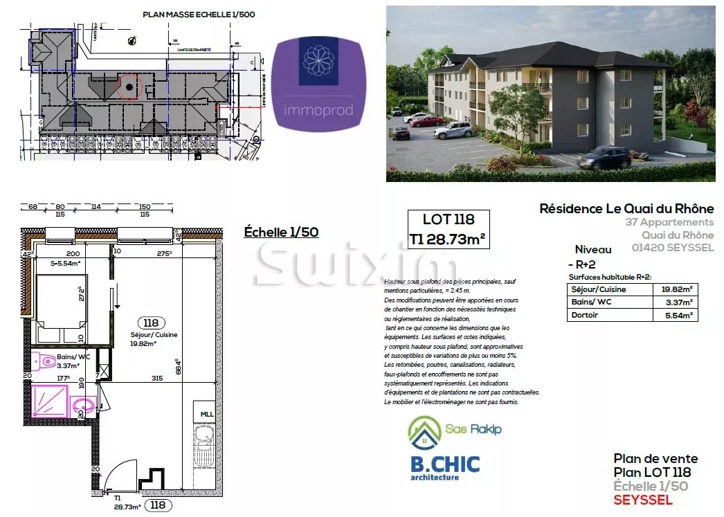 REF 101RSA : T1 BIS à prix choc dès 104 600 € – Idéal investisseurs À Seyssel (01), à seulement 10 minutes de Frangy, découvrez une résidence de standing nichée dans un cadre naturel d’exception, entre Rhône et montagnes. Un emplacement stratégique : À 3 minutes de la gare, permettant de rejoindre Lyon en 1 heure et Genève en seulement 43 minutes 45 min d’Annecy et Aix-les-Bains Proche des commerces et dans un environnement résidentiel de qualité Un confort haut de gamme : - Triple vitrage pour une isolation acoustique et thermique optimale - Isolation par l’extérieur pour un bien-être durable - Chauffage au sol assuré par une pompe à chaleur collective T1 bis avec coin nuit, offrant un espace optimisé et lumineux, idéal pour un premier achat ou un investissement locatif. Ne laissez pas passer cette opportunité rare dans un secteur en plein essor