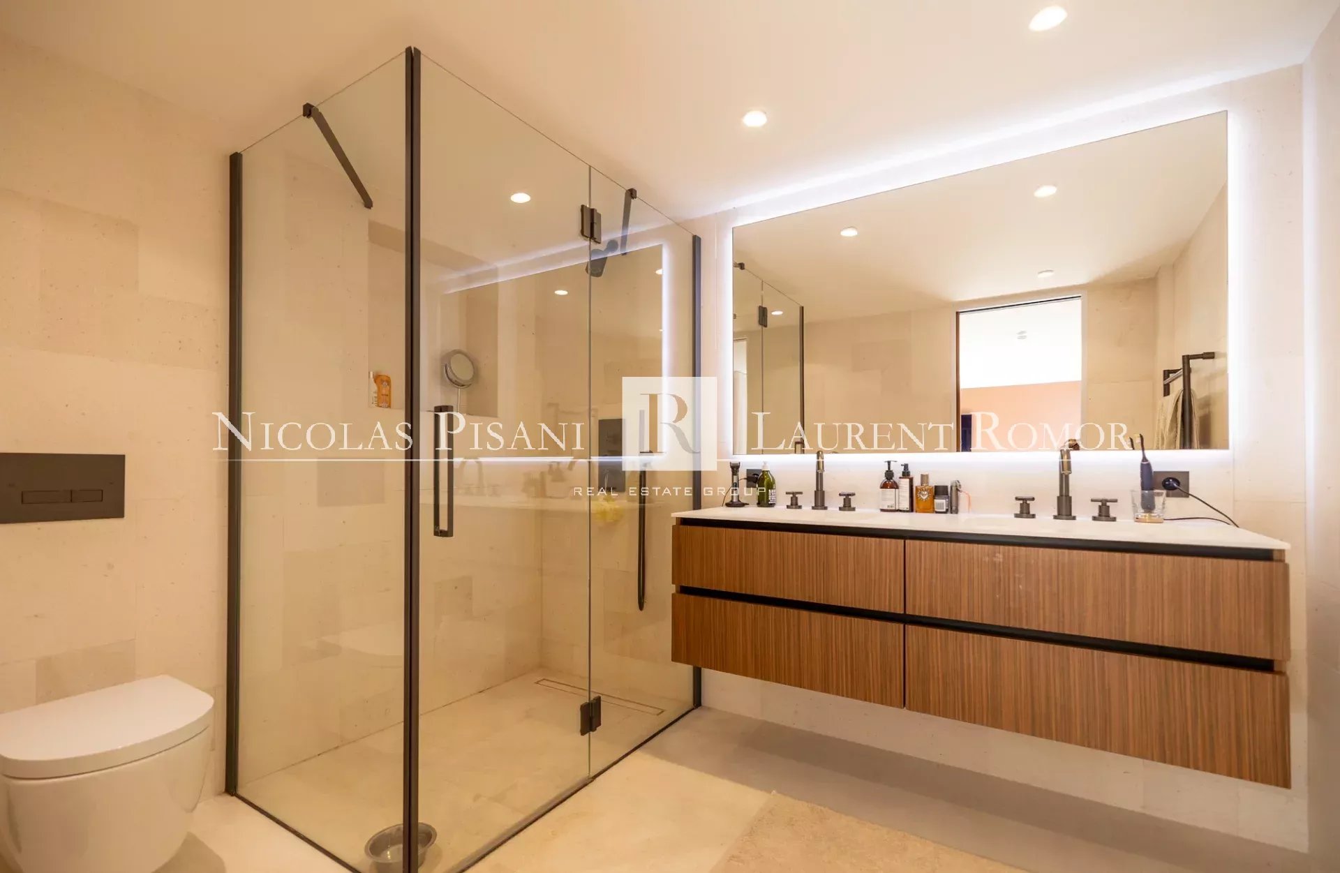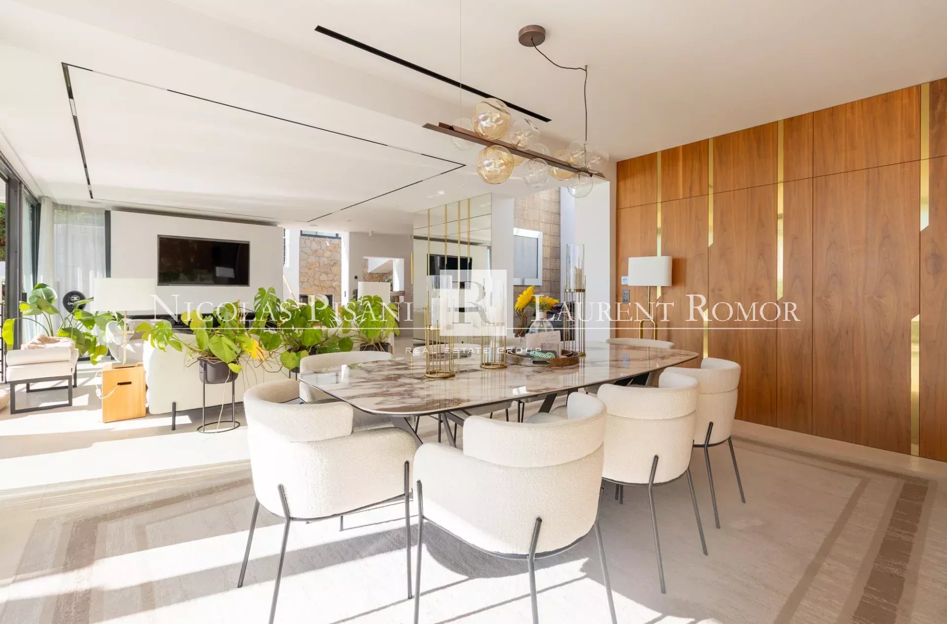 À seulement quelques minutes de la Principauté de Monaco, au cœur d’un quartier résidentiel paisible et recherché, découvrez cette villa d’exception récemment rénovée avec goût, alliant élégance contemporaine et art de vivre méditerranéen. Baignée de lumière grâce à de larges baies vitrées, la propriété offre une atmosphère chaleureuse et raffinée, où chaque détail a été soigneusement pensé. Elle se compose de quatre chambres en suite, chacune avec salle de bain privative et dressing, garantissant confort et intimité à tous les occupants. Le vaste séjour ouvert sur le jardin et la terrasse crée une continuité harmonieuse entre intérieur et extérieur. Le jardin paysager, parfaitement entretenu abrite de multiples espaces de détente et une piscine scintillante invitant au calme et à la contemplation. La villa bénéficie de nombreux stationnements ainsi que d’un accès aisé et discret, rare dans ce secteur privilégié. Honoraires charge vendeur.