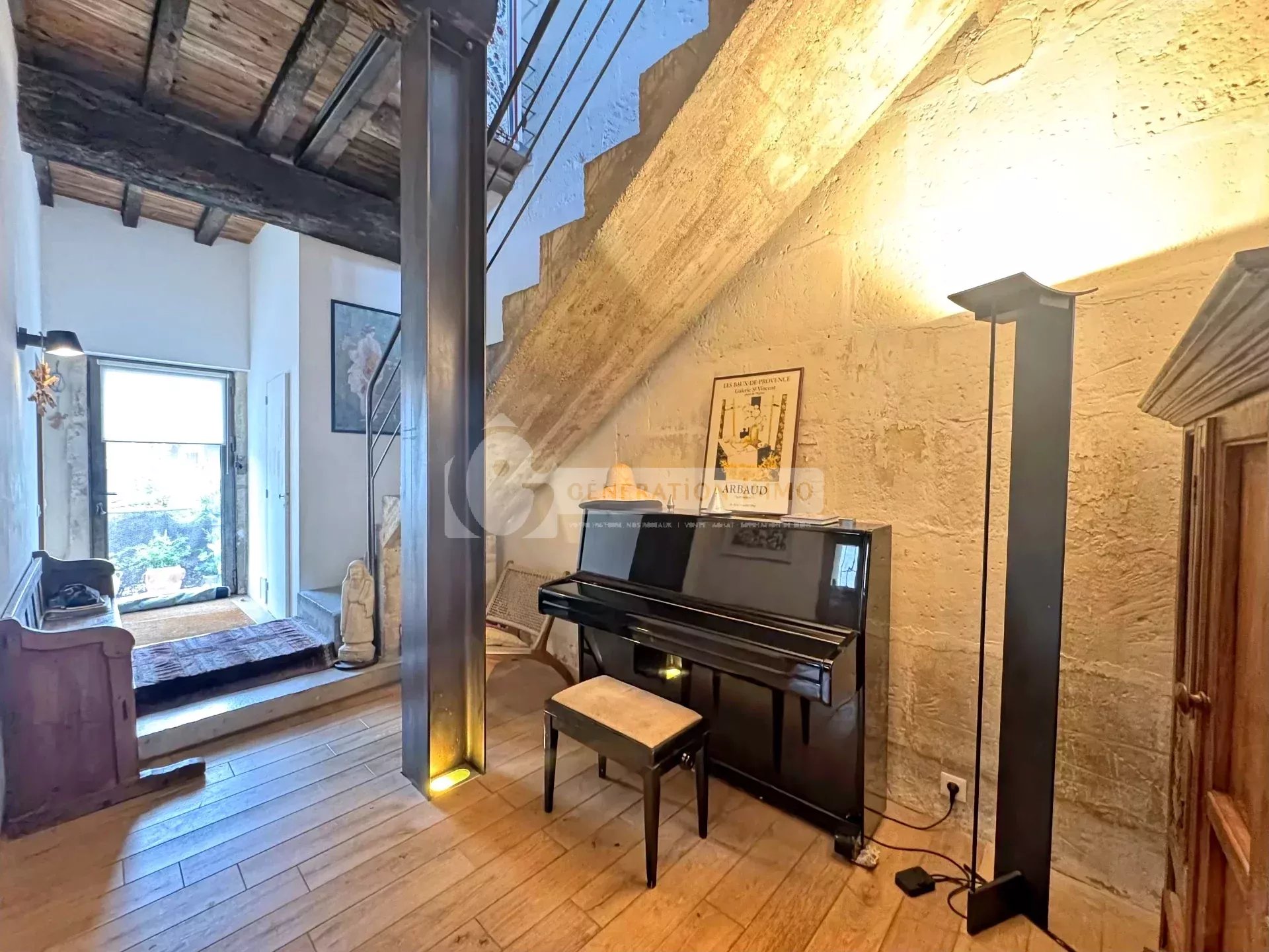 EXCLUSIVITÉ ! Le confort du neuf allié au charme de l'ancien, avec une vue imprenable et dominante sur le village de Fontvieille, cette maison en pierre entièrement rénovée avec goût et avec de beaux matériaux de qualité va vous séduire ! Une grande pièce de vie de 54m2 très lumineuse exposée plein Sud avec son poêle à bois comprenant : séjour/salon avec une cuisine ouverte cuisine et une mezzanine (chambre d'amis ou bureau). Aussi, 2 chambres dont une avec cheminée, une salle de bains avec douche italienne et baignoire balnéothérapie, un dressing, une buanderie et des toilettes. Parking privé sécurisé et 2 terrasses, une orientée Sud et la seconde au Nord. Beaucoup de charme pour cette maison esprit loft !