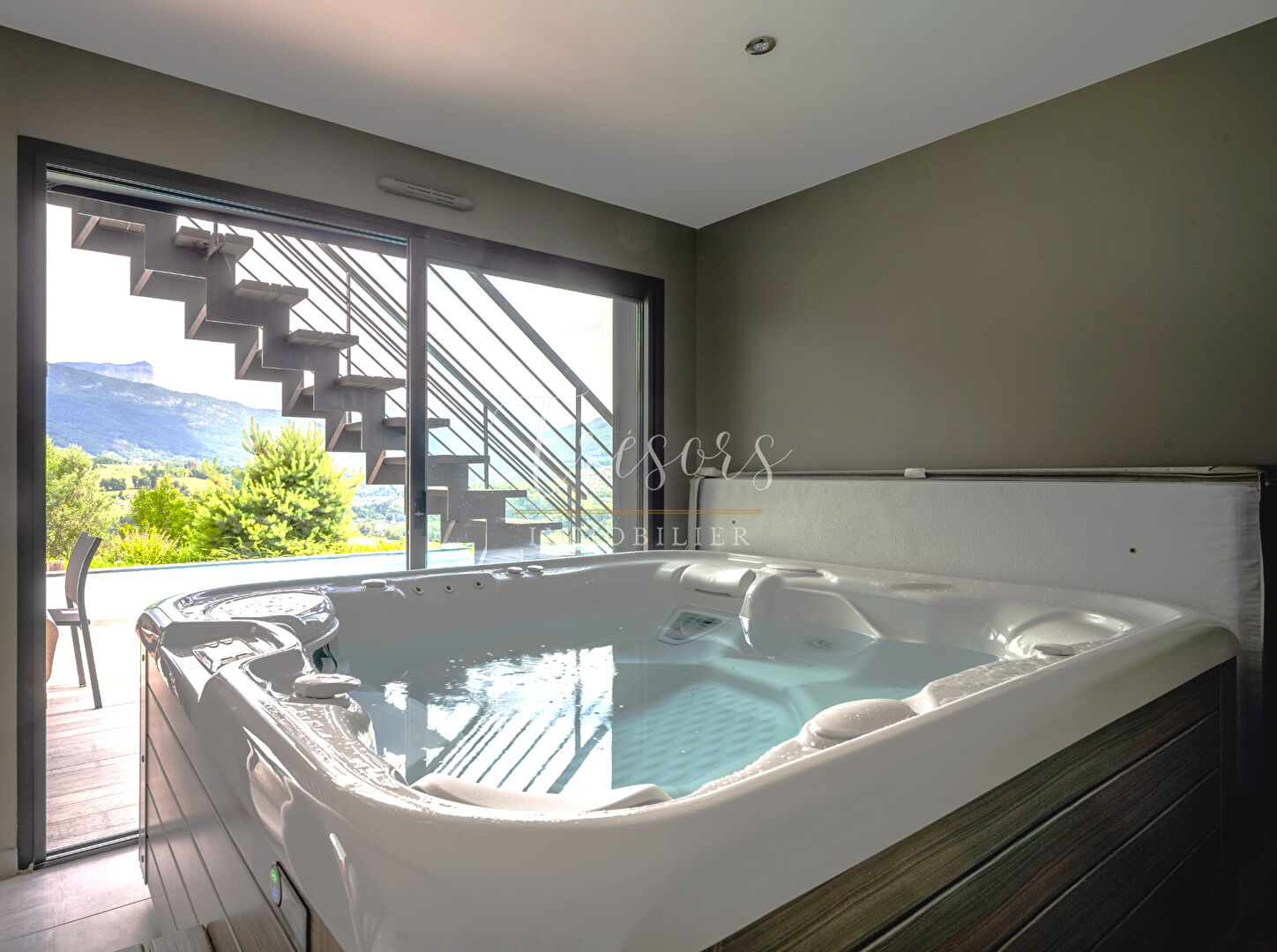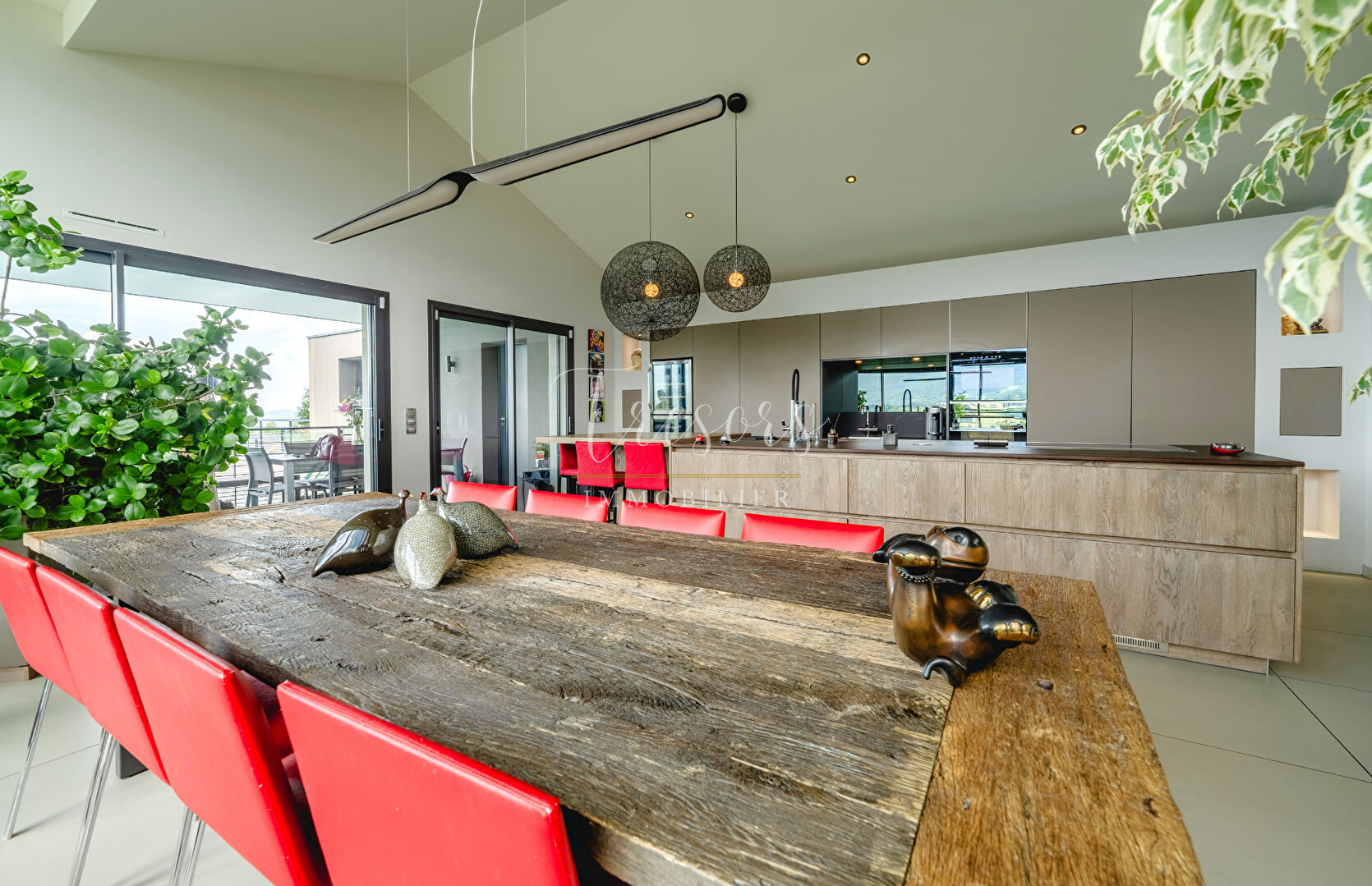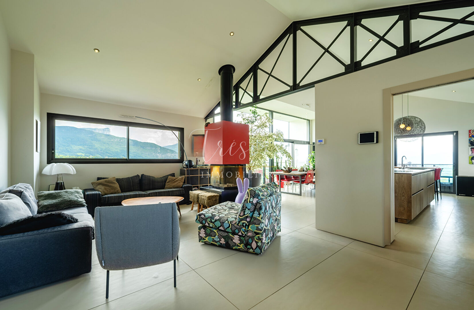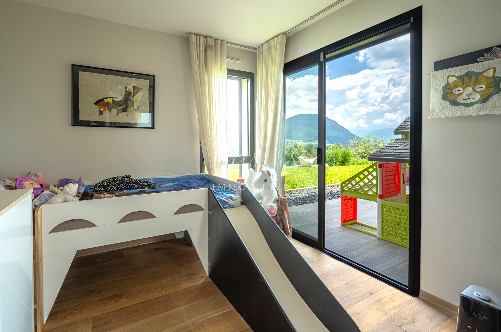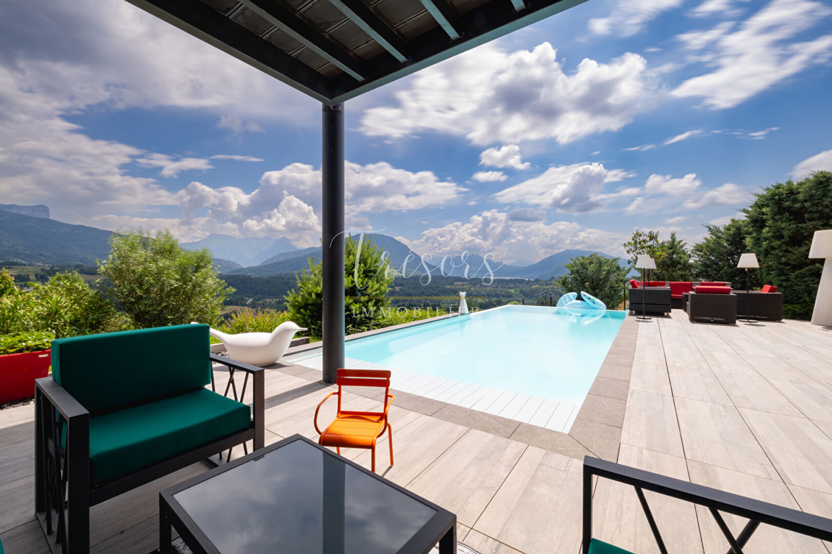 Annecy Nord, L'agence TRESORS IMMOBILIER, vous propose cette villa moderne exceptionnelle, située dans un cadre idyllique avec une vue panoramique sur le lac d'ANNECY et ses montagnes. Nichée sur un terrain d'environ 1500m2, cette propriété allie élégance contemporaine et confort luxueux.La villa, dotée de volumes généreux, est conçue avec un souci méticuleux du design, offrant des espaces de vie lumineux et aérés. Les larges baies vitrées permettent de profiter pleinement de la lumière naturelle et de la magnifique vue.A l'extérieur, vous serez séduits par la piscine à débordement, tout en admirant le lac et le Parmelan. Le vaste jardin paysager sans vis à vis , est un véritable havre de paix, idéal pour des moments de détente en famille ou entre amis.Chaque détail de cette villa a été pensé pour offrir un confort optimal, avec des finitions hautde gamme et des équipements modernes. Que ce soit pour une résidence principale ou secondaire, cette propriété représente une opportunité- té d'acquérir un bien d'exception dans un cadre enchanteur. Garage double indépendant, avec borne de recharge électrique rapide, cave à vins, cuisine d'été.Contactez nous dès aujourd'hui pour organiser une visite et découvrir par vous-même tout ce que cette propriété exceptionnelle a à offrir.Nathalie SOULOUMIAC