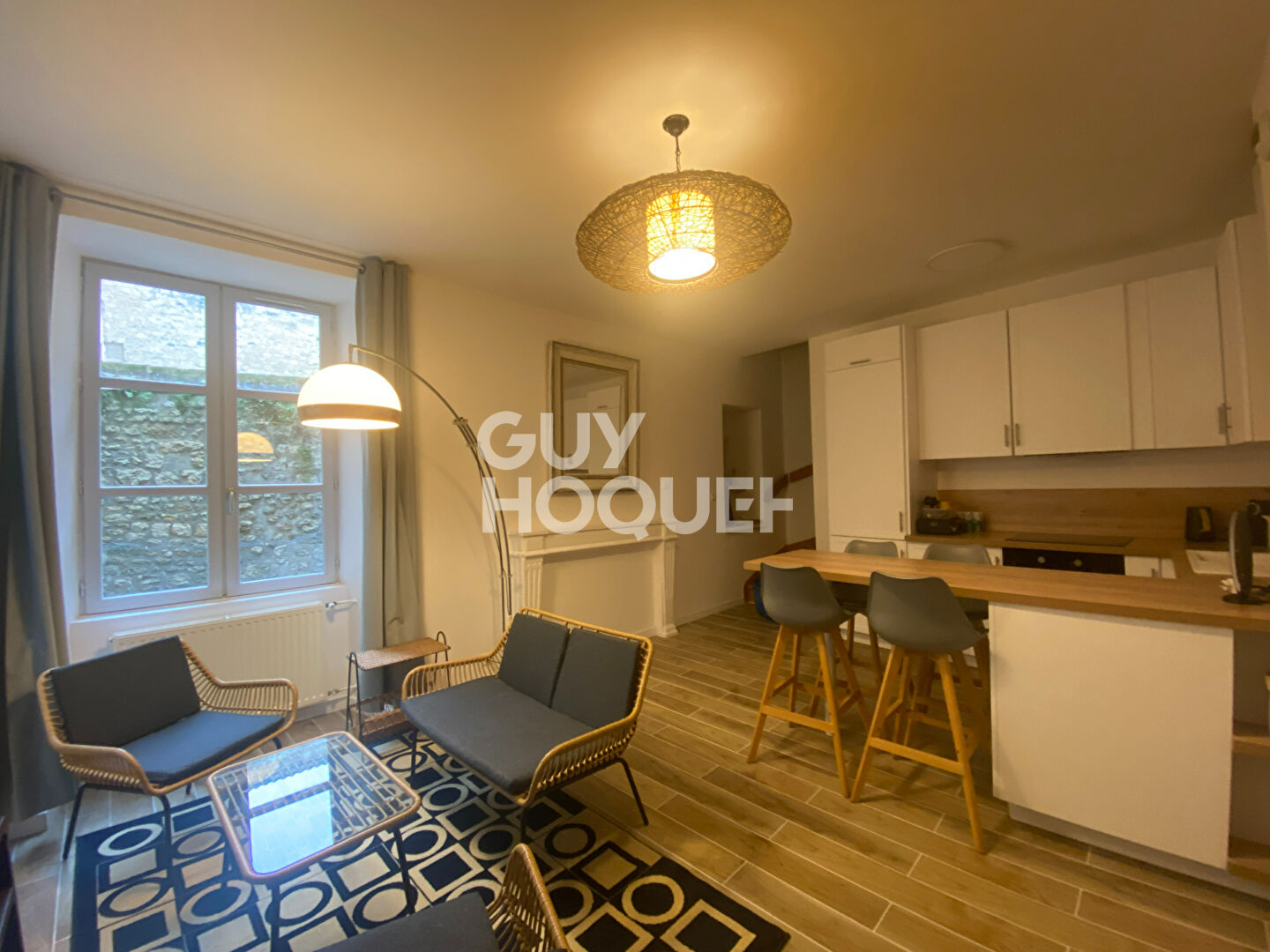 Appartement meublé dans immeuble sécurisé alliant charme de l'ancien et confort moderne, situé en plein centre du quartier historique de Fontenay le Comte, idéal pour les amateurs de patrimoine ! Il se compose d'un salon ouvert sur la cuisine aménagée avec équipement neufs (plaque à induction, hotte, four électrique et lave-linge), neufs), dégagement , 2 chambres, une salle d'eau et toilettes séparés. Vous apprécierez la proximité des parkings, commerces et services. A visiter sans tarder !