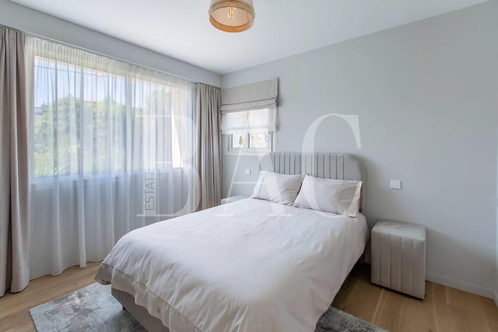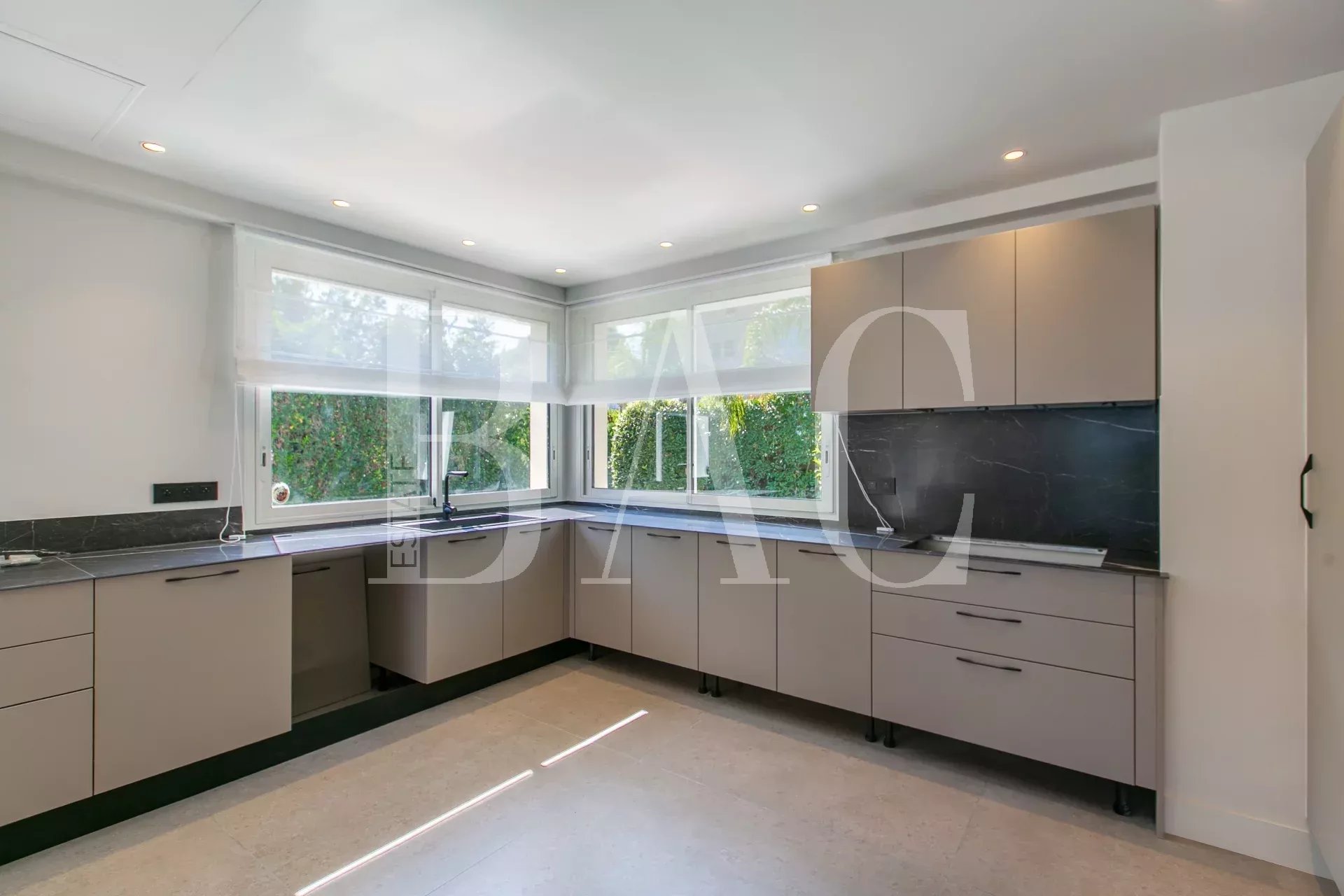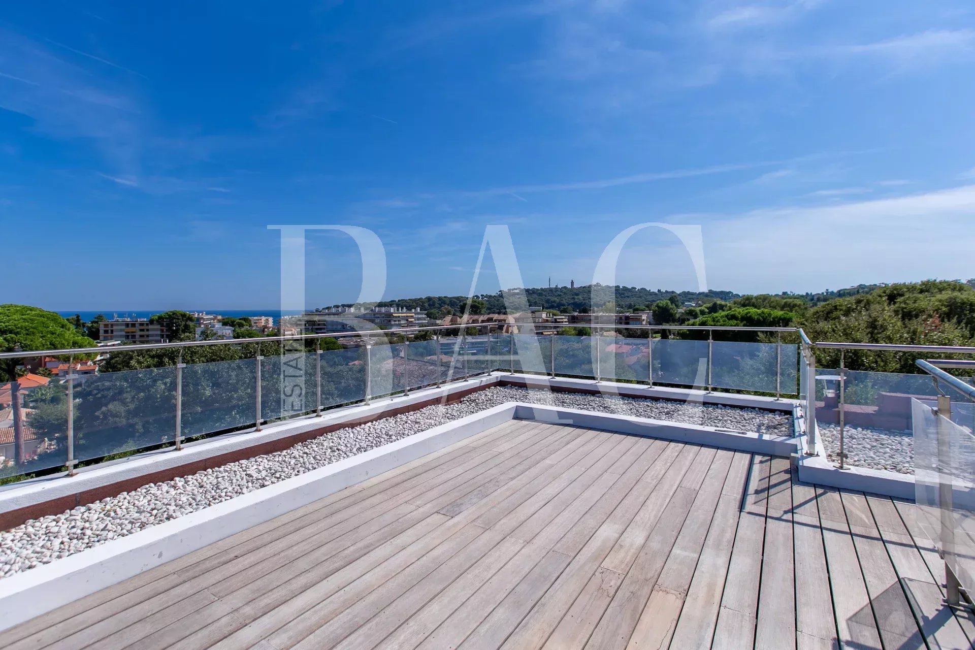 A Cap d'Antibes, una tenuta privata e una villa in stile contemporaneo con vista ininterrotta sul mare. Superficie abitabile 320 m2 su 1.200 m2 di terreno. È composta da un ingresso che si apre su un ampio soggiorno con cucina semi-aperta, 6 camere da letto con bagno, ripostiglio e un bellissimo spazio che potrebbe diventare una cucina estiva che si apre su un'ampia terrazza. All'esterno si trovano una grande piscina, una vasca idromassaggio e tre posti auto. La spiaggia e il centro città distano meno di 600 metri.